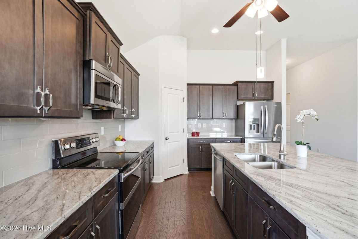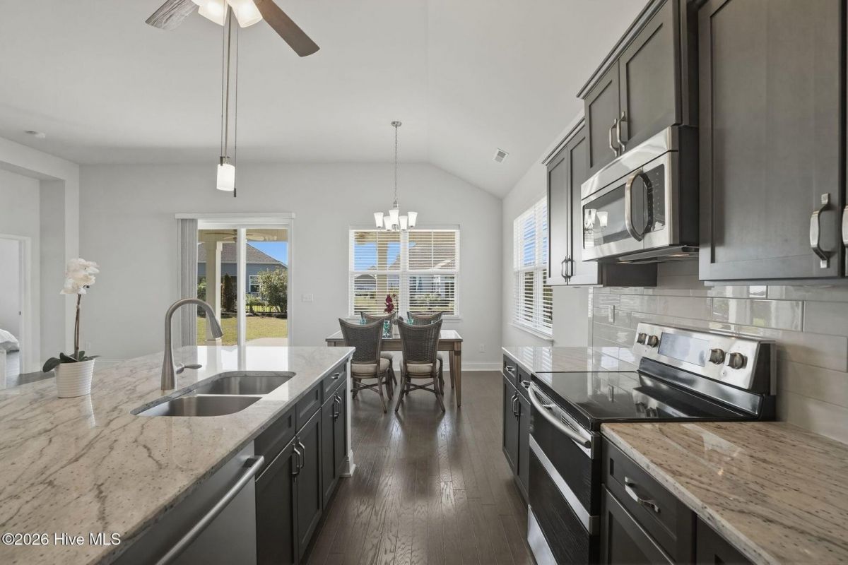 Beautifully appointed and filled with natural light, this 3-bedroom single-level home with bonus room offers an open-concept design, high ceilings, and exceptional indoor and outdoor living just minutes from the coast. The spacious kitchen is a true centerpiece, featuring beautiful cabinetry, stainless steel appliances, pantry, a double oven, large island, and an eat-in dining area--perfect for both everyday living and entertaining. The owner's suite provides a relaxing retreat with a tray ceiling, two walk-in closets, and a luxurious bath complete with double vanities and a large tiled shower. Additional highlights include a convenient drop zone, a large laundry room with utility sink, a whole-home filtration system, and a retractable garage screen--perfect for enjoying fresh air while keeping the space functional for relaxing, hobbies, or entertaining. Step outside to the spacious covered back porch, ideal for morning coffee or evening gatherings. The 2-car garage offers plenty of storage and versatility. Located in the desirable community of Calabash Lakes, residents enjoy low-maintenance living with yard maintenance included along with resort-style amenities such as a clubhouse, fitness center, zero-entry pool, and tennis/pickleball courts. A home warranty is also offered by the sellers for added peace of mind. Conveniently located just minutes from the beautiful shores of Sunset Beach and Ocean Isle Beach, as well as numerous golf courses and the dining and shopping of charming Calabash, this home offers the perfect blend of comfort, style, and coastal lifestyle. For information about our preferred lender and the incentives you may qualify for, please ask your agent to review the agent comments for additional details.
