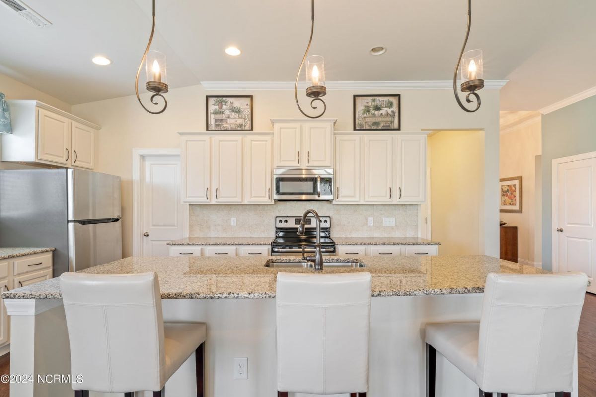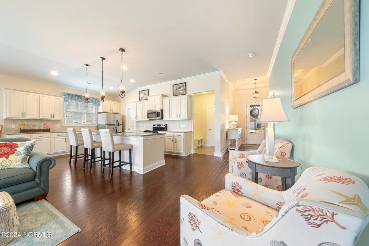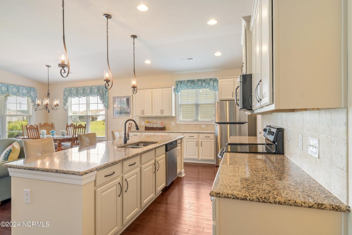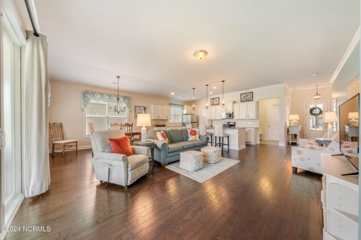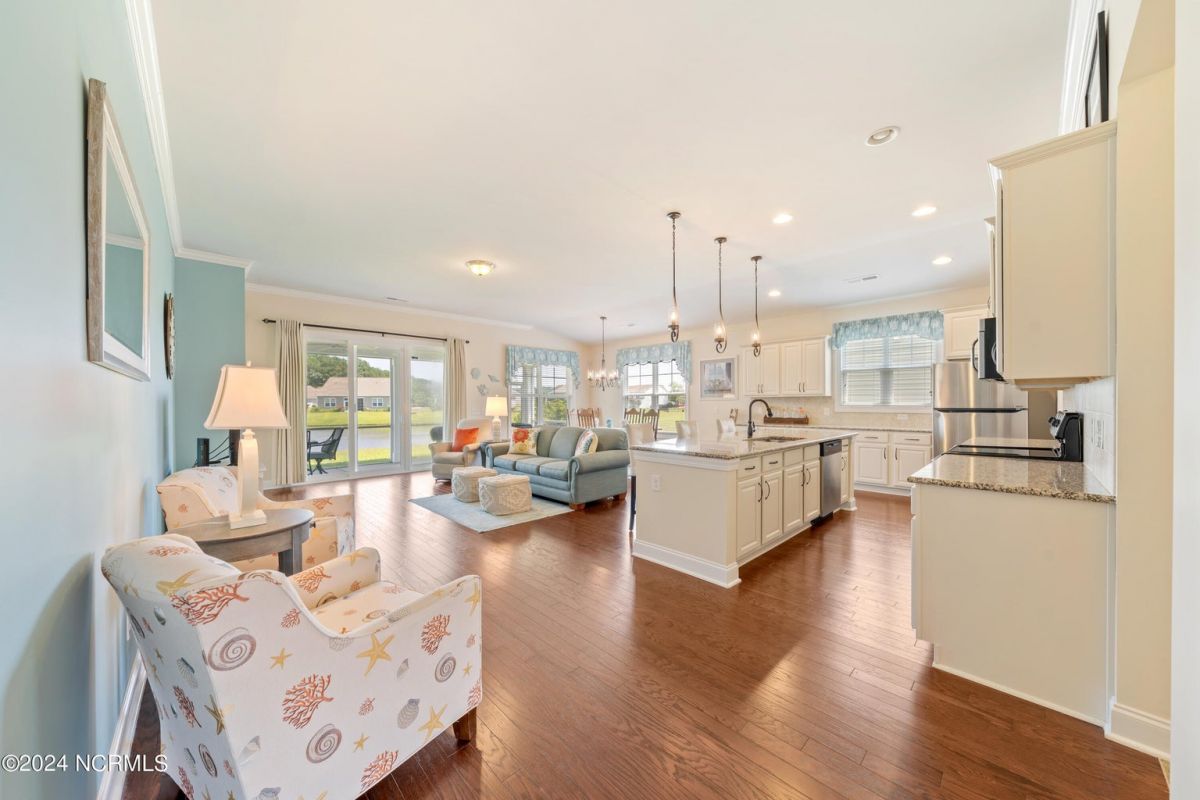 Welcome home to this immaculately maintained Eaton floorplan in Calabash Lakes! This gem is beautifully appointed and move-in ready. Enter through the grand 8-foot front door into gleaming hardwoods throughout the open, airy layout. The massive kitchen is fully equipped with tons of cabinets, endless granite countertops, and a huge walk-in pantry. The master suite is private and spacious and features a dual vanity, walk-in shower and lots of storage space. Large glass sliders lead from the living room out to an enormous screened porch overlooking one of the many serene ''lakes'' that make Calabash Lakes so desirable. Wildlife-watching is abundant in this peaceful space, with plenty of room to enjoy morning coffee or a freshly grilled dinner. The guest bedrooms and guest bathroom are thoughtfully located in the front of the home, providing wonderful privacy. Calabash Lakes offers a low-maintenance lifestyle and beautiful amenities. All of this just minutes to the soft sugar sands of Sunset Beach and the shopping and dining you'll find in the heart of Calabash - the seafood capital of the world!