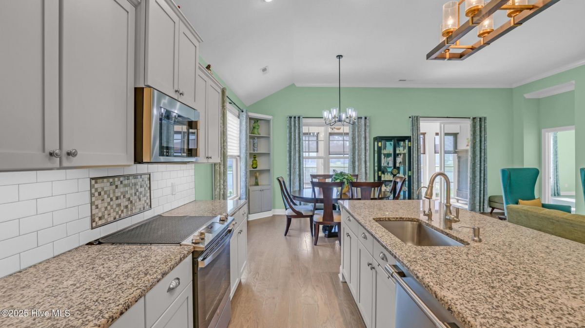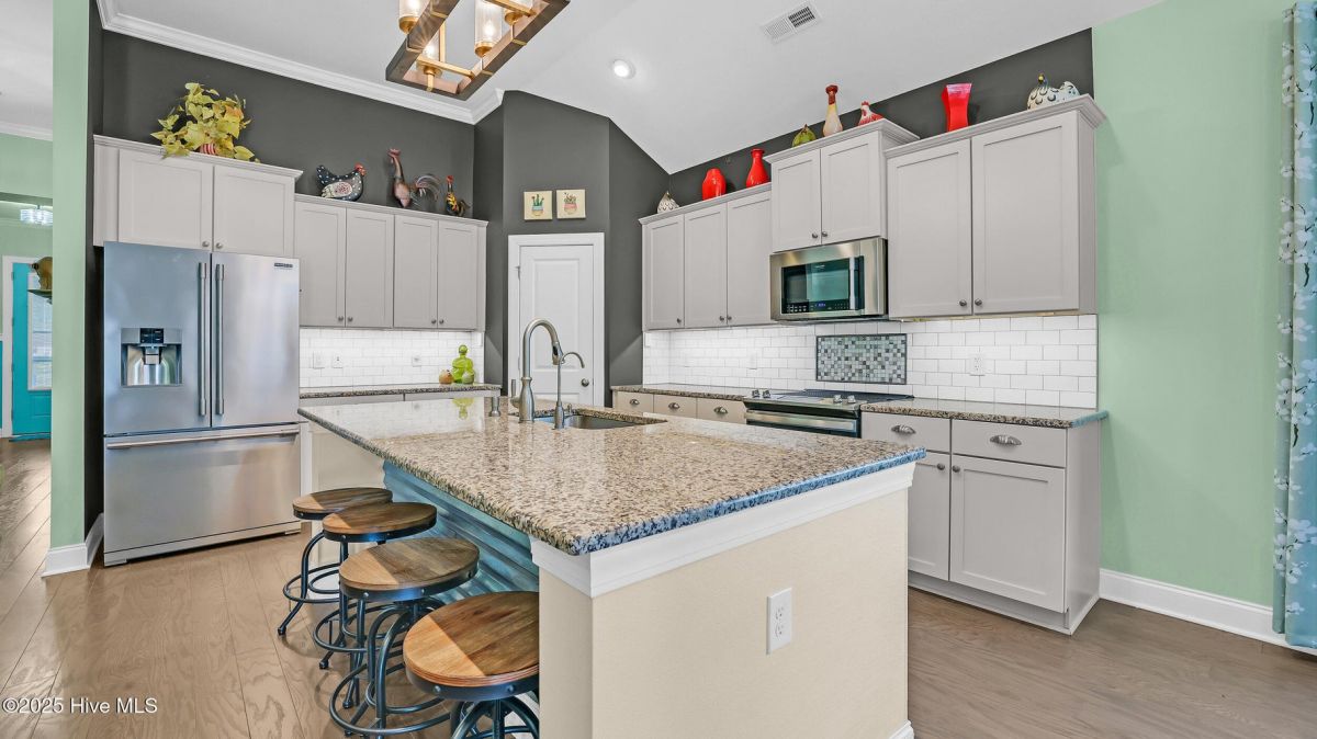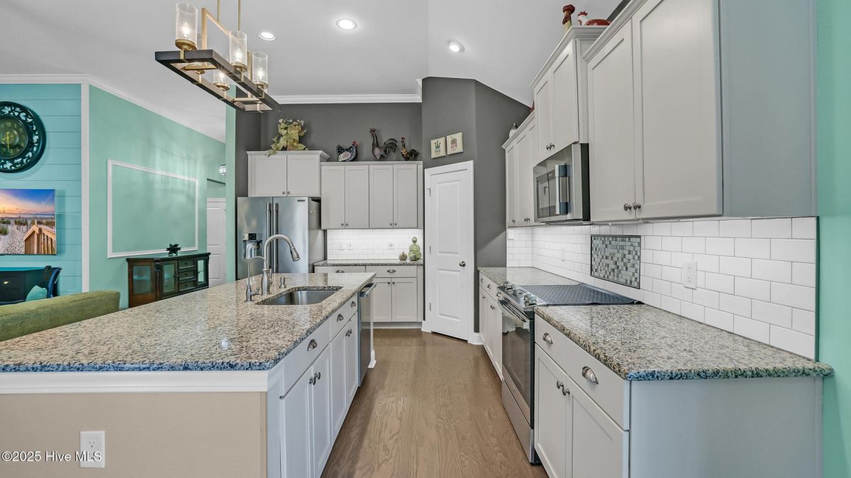 Welcome to this beautifully upgraded, coastal-themed home in the highly desirable Calabash Lakes community! This 3-bedroom, 2-bathroom home features a split-bedroom floor plan for added privacy, an open-concept layout, and custom details throughout. Enjoy stylish features like luxury vinyl plank flooring, 11' ceilings in the living area, crown molding, a gas fireplace with brick surround, and a large flex room with French doors. The kitchen is a chef's dream with granite countertops, stainless steel appliances, subway tile backsplash, LED cabinet lighting, and 36'' maple cabinets with crown molding. The spacious primary suite boasts a 10' tray ceiling with double crown molding, a custom barn door, recessed medicine cabinets, and a humidity-controlled bath fan. The secondary bedrooms, located on the opposite side of the home, share a full bath and have 9' ceilings. Outdoor living shines with a 3-season screened porch with vinyl windows, a rear patio with acacia wood floating floor, and custom landscaping. Additional upgrades include a 100-gallon propane tank, smart thermostat, radiant barrier roof sheathing, garage with overhead storage and workbench, generator hookup, and more. Enjoy resort-style living with HOA-included amenities: zero-entry saltwater pool, tennis & pickleball courts, fitness room, clubhouse—plus lawn care, pest control, trash pickup, and annual power washing. Located near beaches, golf, shopping, and dining, this is coastal Carolina living at its finest!