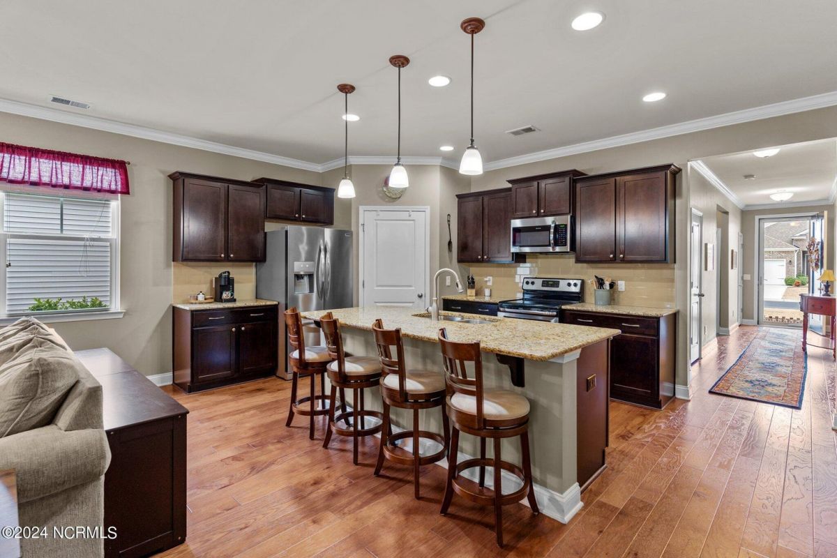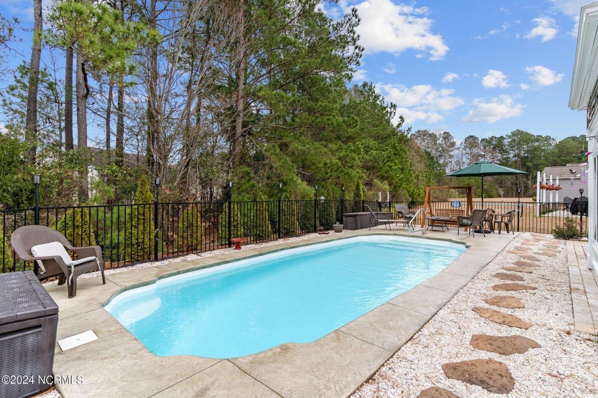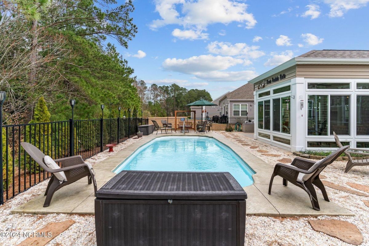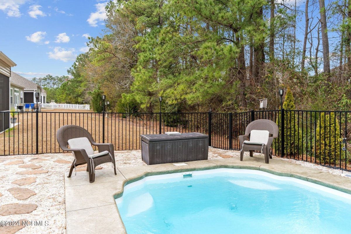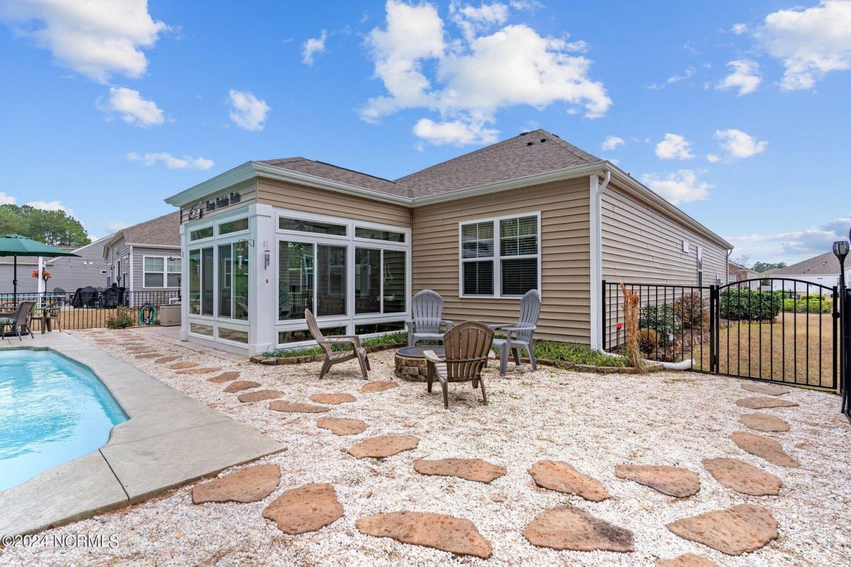 Fabulous home in Calabash Lakes that gives you the wow factor from the moment you arrive! The Claiborne floorplan is a 4 bedroom split layout with an open and airy feel. As you enter, gleaming hardwood floors will lead you into a gorgeous kitchen that boasts loads of cabinetry & granite counters, a tile backsplash, huge work island with breakfast bar, walk-in pantry & stainless steel appliances. The kitchen opens nicely to a great living room and dining area with a gas log fireplace and hardwood floors as well. The master bedroom is spacious with a walk-in closet and a roomy master bathroom. Enjoy a double sink vanity, 5' shower, water closet, linen closet and tile flooring. The three guest rooms are comfortable in size with good closet space. The enclosed Carolina room is light and bright and overlooks your private backyard oasis complete with a patio area and inground pool with a saltwater filtration system. Home has many upgrades including crown molding, abundant closet space and pulldown stairs to attic storage. Although you may never leave your private oasis and beautiful home, the active subdivision has a large clubhouse, tennis/pickleball courts and a new pool. The location of the community is also top notch and near the area's beaches, golf courses, restaurants and shopping. Landscaping, lawn irrigation and exterior pest control are also included in your HOA dues. One look and you won't want to leave!