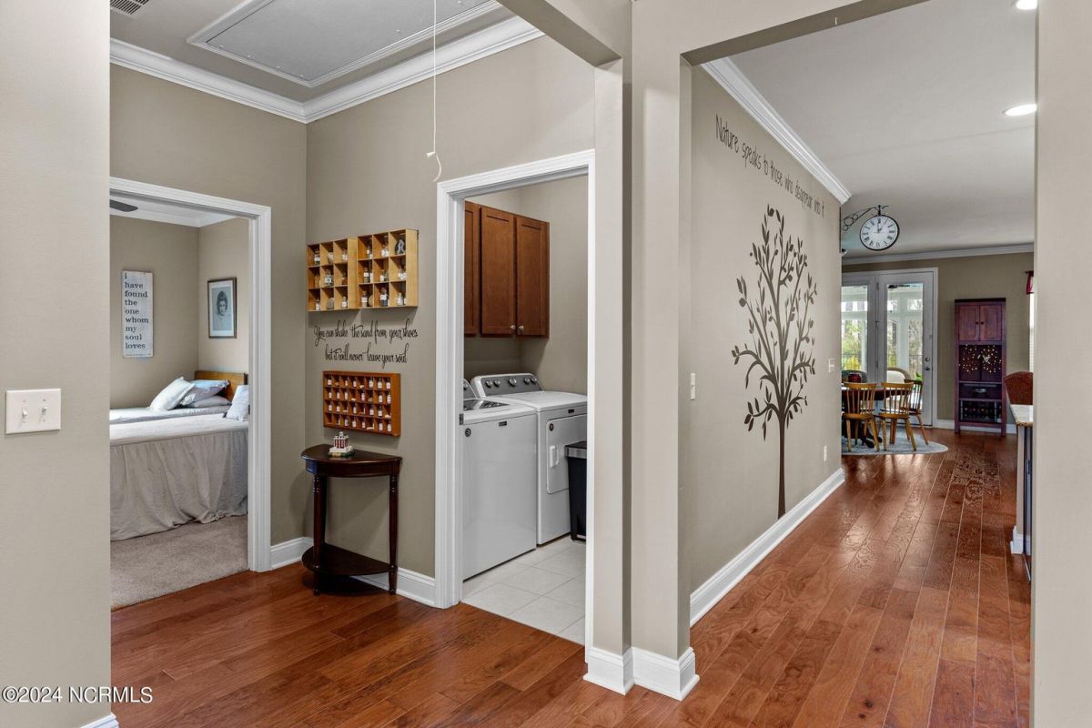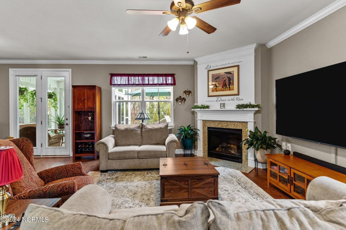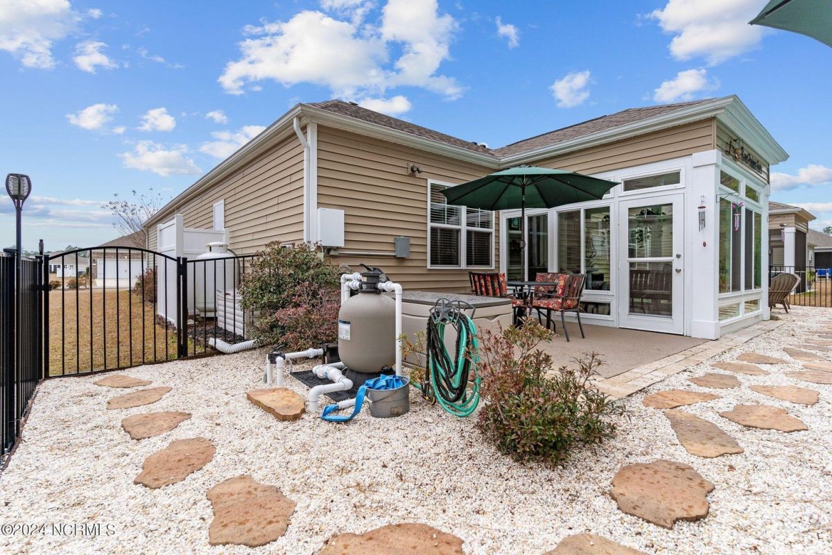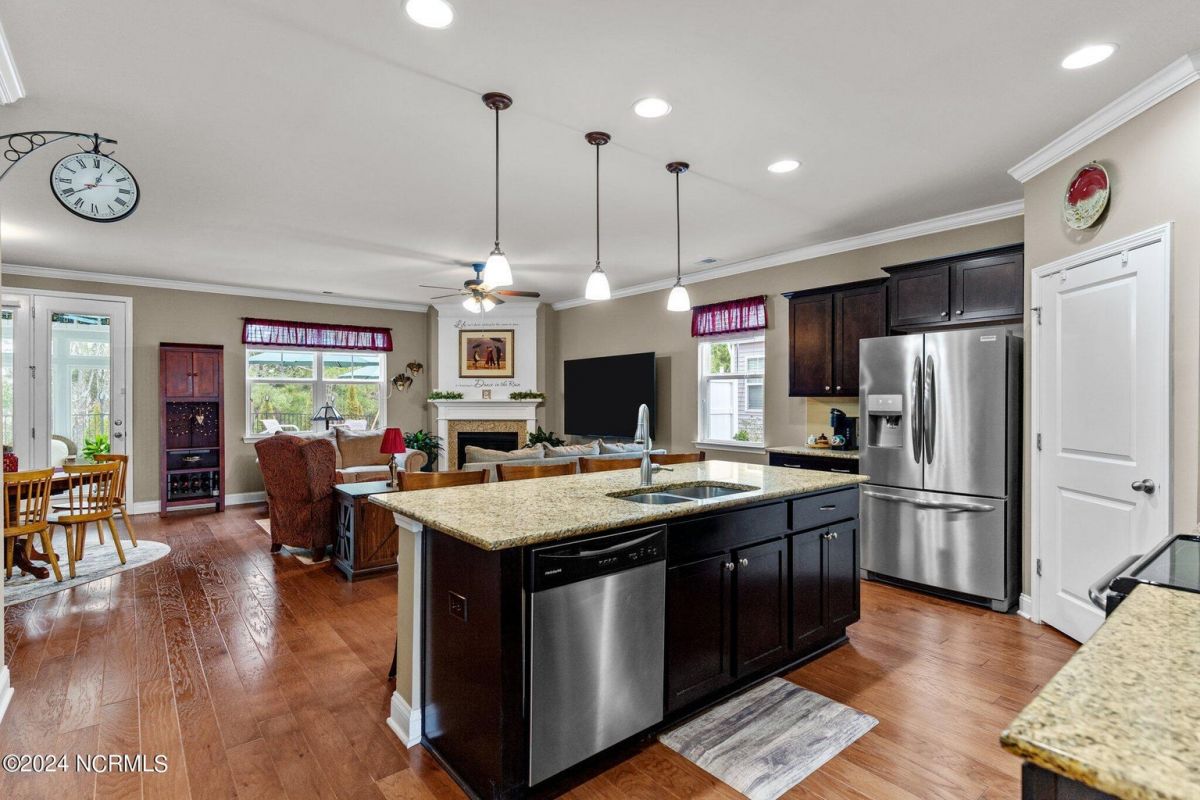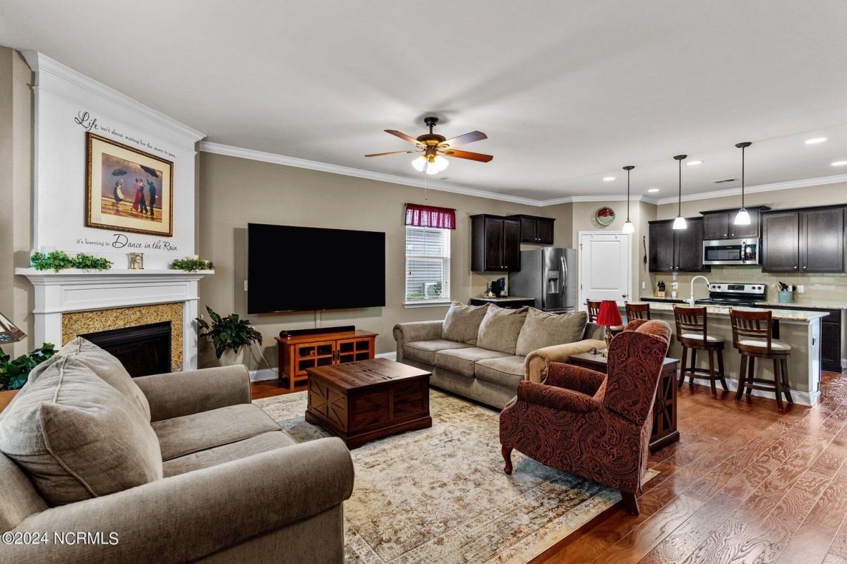 Fabulous home in Calabash Lakes that gives you the wow factor from the moment you arrive! The Claiborne floorplan is a 4 bedroom split layout with an open and airy feel. As you enter, gleaming hardwood floors will lead you into a gorgeous kitchen that boasts loads of cabinetry & granite counters, a tile backsplash, huge work island with breakfast bar, walk-in pantry & stainless steel appliances. The kitchen opens nicely to a great living room and dining area with a gas log fireplace and hardwood floors as well. The master bedroom is spacious with a walk-in closet and a roomy master bathroom. Enjoy a double sink vanity, 5' shower, water closet, linen closet and tile flooring. The three guest rooms are comfortable in size with good closet space. The enclosed Carolina room is light and bright and overlooks your private backyard oasis complete with a patio area and inground pool with a saltwater filtration system. Home has many upgrades including crown molding, abundant closet space and pulldown stairs to attic storage. Although you may never leave your private oasis and beautiful home, the active subdivision has a large clubhouse, tennis/pickleball courts and a new pool. The location of the community is also top notch and near the area's beaches, golf courses, restaurants and shopping. Landscaping, lawn irrigation and exterior pest control are also included in your HOA dues. One look and you won't want to leave!