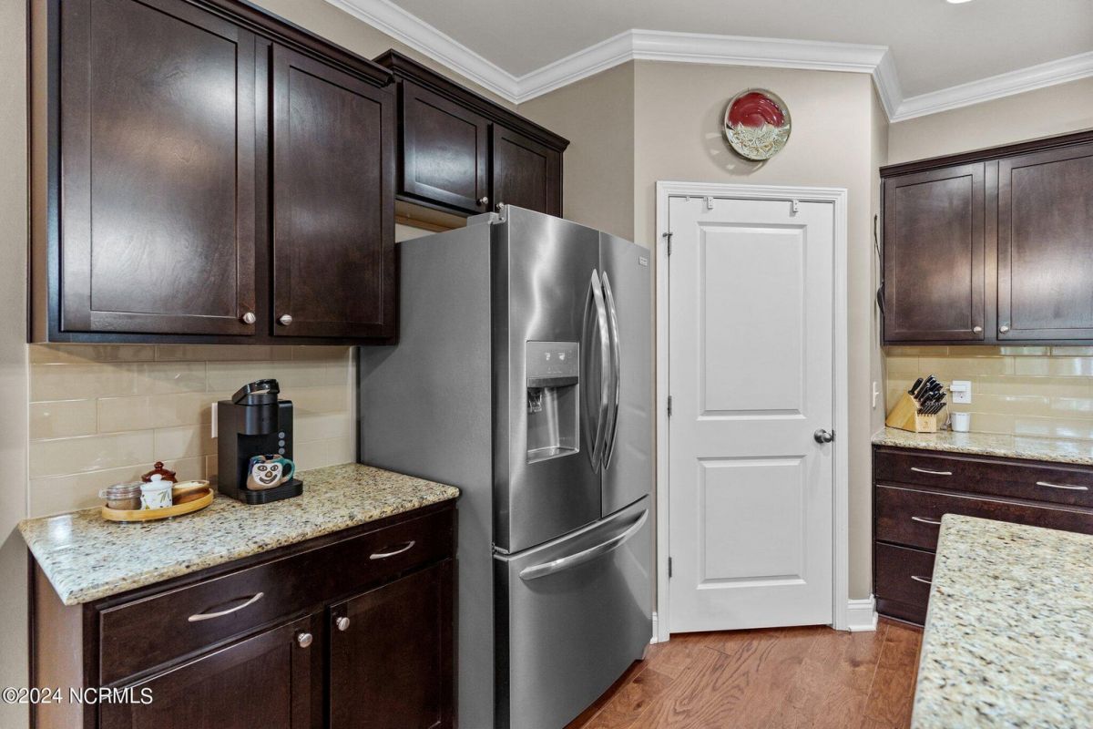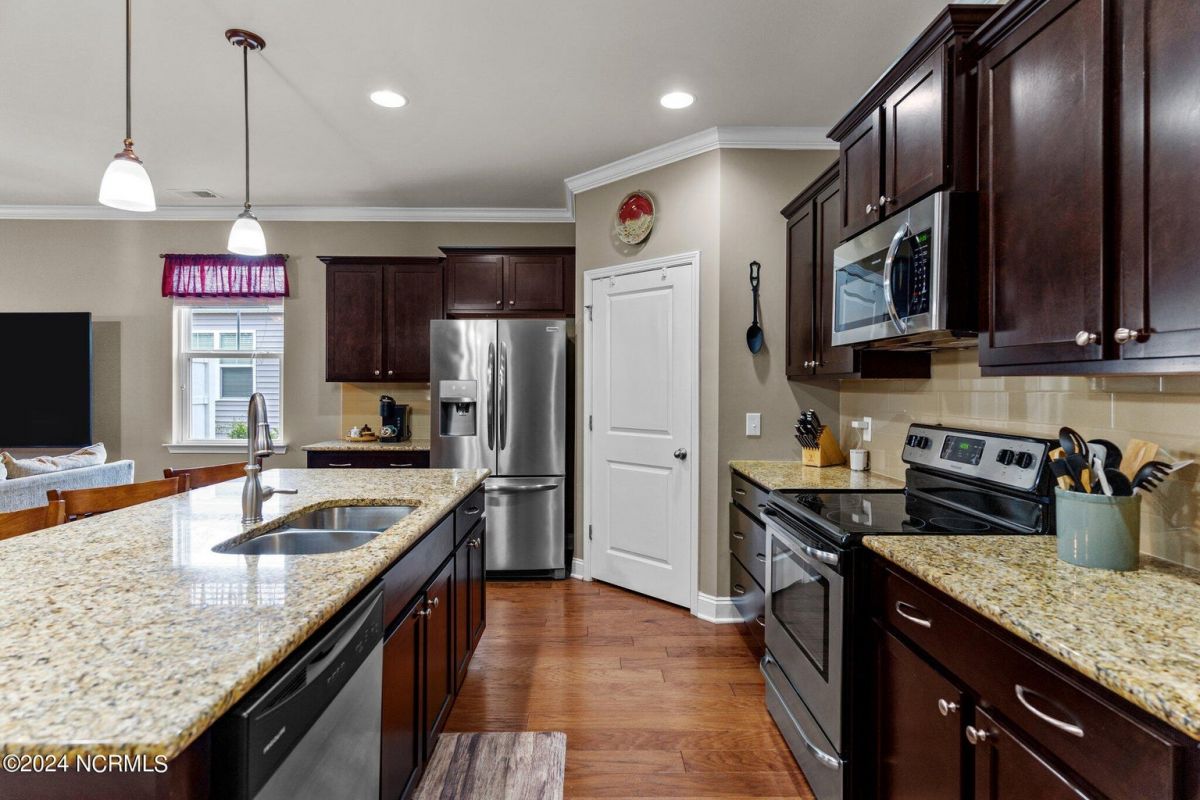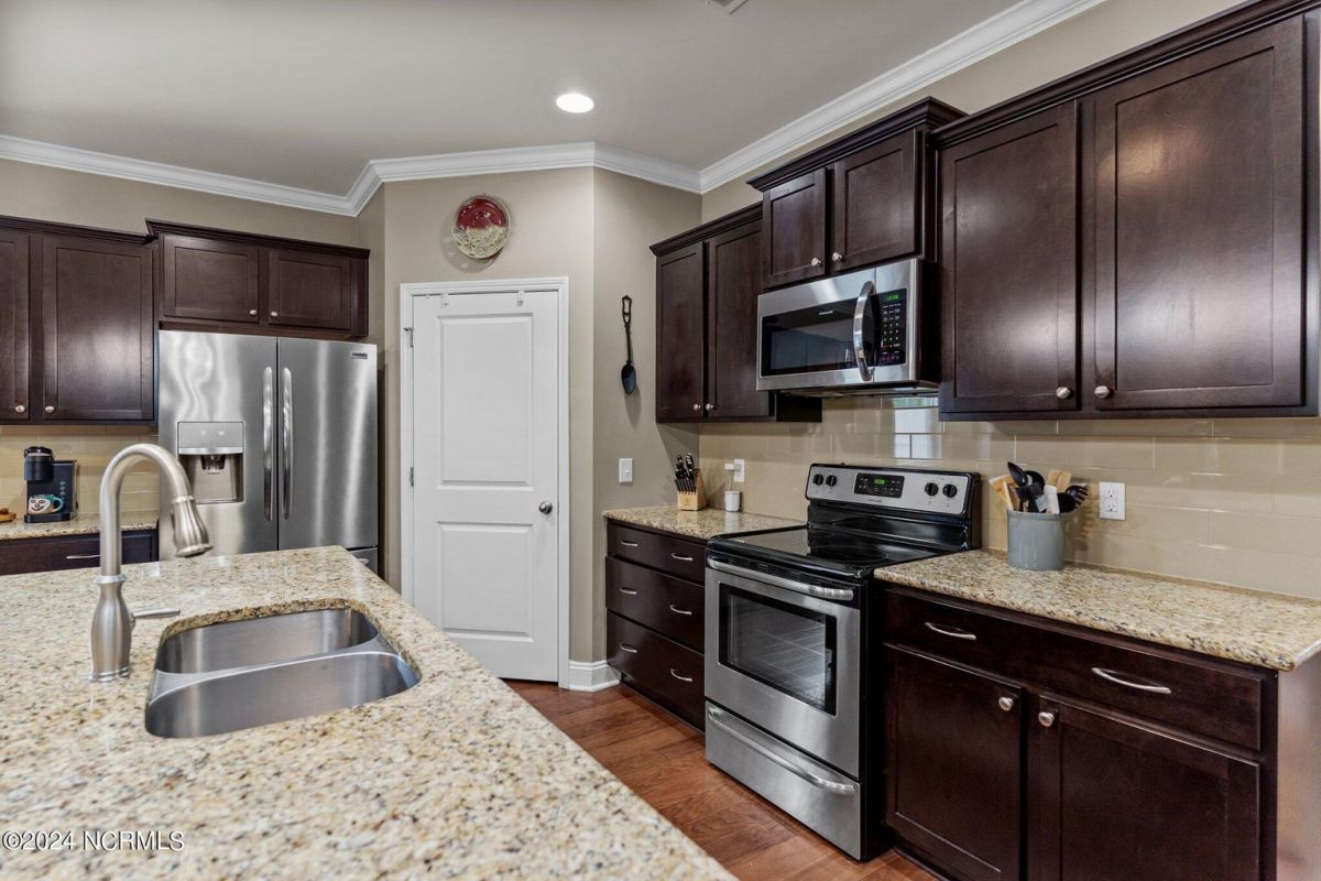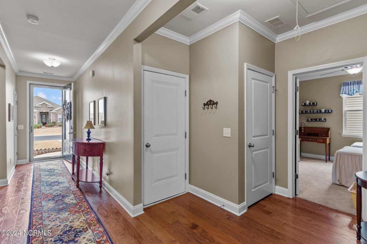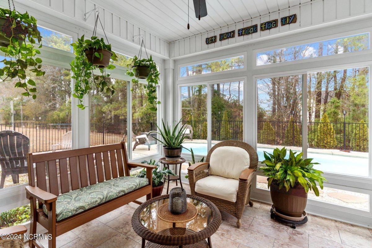 Fabulous home in Calabash Lakes that gives you the wow factor from the moment you arrive! The Claiborne floorplan is a 4 bedroom split layout with an open and airy feel. As you enter, gleaming hardwood floors will lead you into a gorgeous kitchen that boasts loads of cabinetry & granite counters, a tile backsplash, huge work island with breakfast bar, walk-in pantry & stainless steel appliances. The kitchen opens nicely to a great living room and dining area with a gas log fireplace and hardwood floors as well. The master bedroom is spacious with a walk-in closet and a roomy master bathroom. Enjoy a double sink vanity, 5' shower, water closet, linen closet and tile flooring. The three guest rooms are comfortable in size with good closet space. The enclosed Carolina room is light and bright and overlooks your private backyard oasis complete with a patio area and inground pool with a saltwater filtration system. Home has many upgrades including crown molding, abundant closet space and pulldown stairs to attic storage. Although you may never leave your private oasis and beautiful home, the active subdivision has a large clubhouse, tennis/pickleball courts and a new pool. The location of the community is also top notch and near the area's beaches, golf courses, restaurants and shopping. Landscaping, lawn irrigation and exterior pest control are also included in your HOA dues. One look and you won't want to leave!