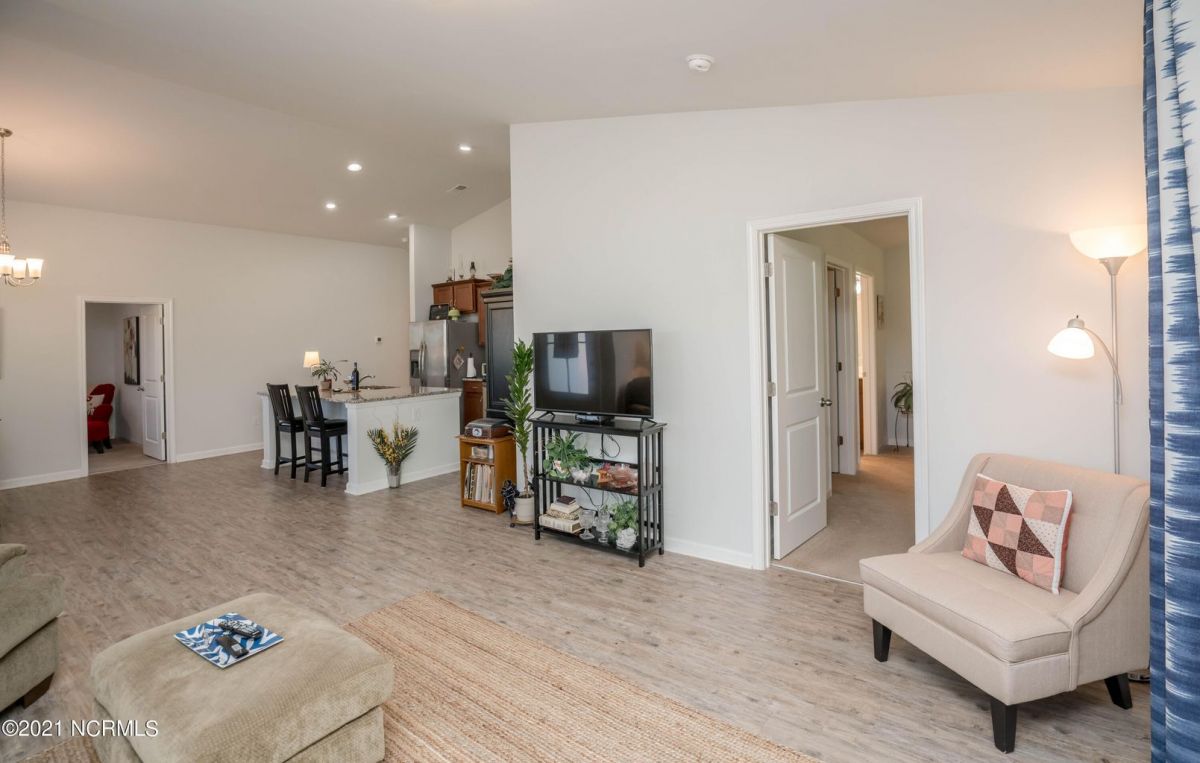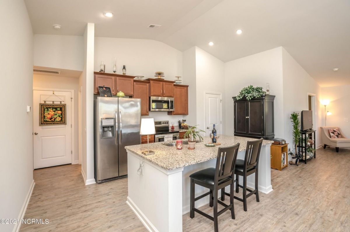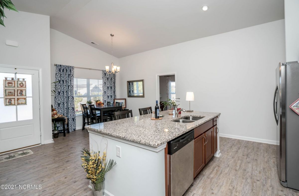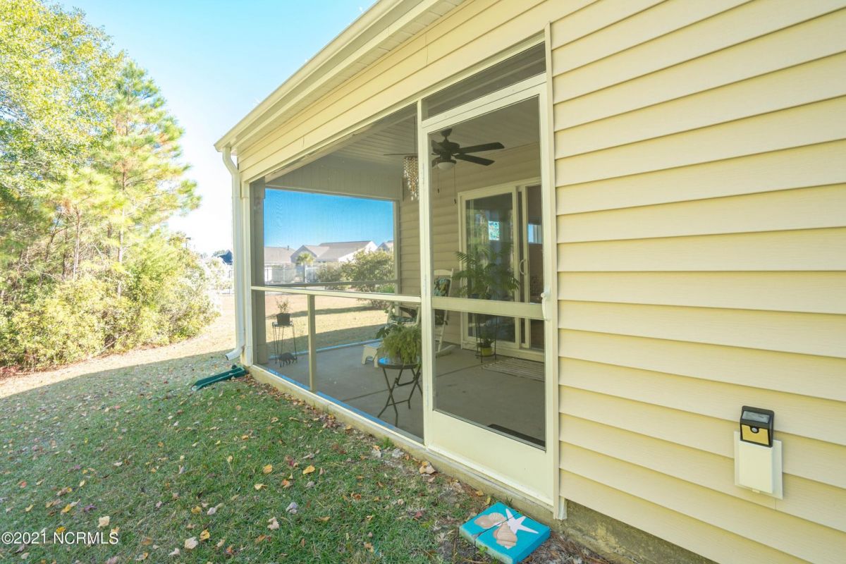 This one level, end unit duplex offers low maintenance living and lots of privacy. This was the model home originally and is built on one of the better lots in the community. There is a large green space to the right of this home and a mature tree line in the rear. When you enter the front door, you will find an open floorplan with ample natural light. The kitchen has granite counter tops and plenty of cabinet space. The appliances are stainless steel and in excellent condition. The dining area is adjacent to the kitchen. The living room is spacious and has a sliding glass door that leads to the screened in porch. The master bedroom is large enough to accommodate a king size bed and features a walk in closet as well as a nice bathroom with two sinks and a big shower. The two guest rooms are located on the other side of the home, which gives everyone privacy. The laundry room leads to the garage. In addition to the garage, there is a long driveway for extra parking. These units have been extremely popular over the years, they are large enough to make a great full time residence for those who want very little maintenance and a nice community close to the beach. Because they are so close to the beach, these also make nice second homes. You can be in Calabash in 3-4 minutes and Sunset Beach is 10-12 minutes away. The zero entry community pool is oversized and features lap lanes for the avid swimmers and plenty of patio space for soaking up the sun. The clubhouse has a fitness room and a pool table for your enjoyment. There are tennis/pickleball courts as well. Come check this one out before it is gone, you'll be glad you did.