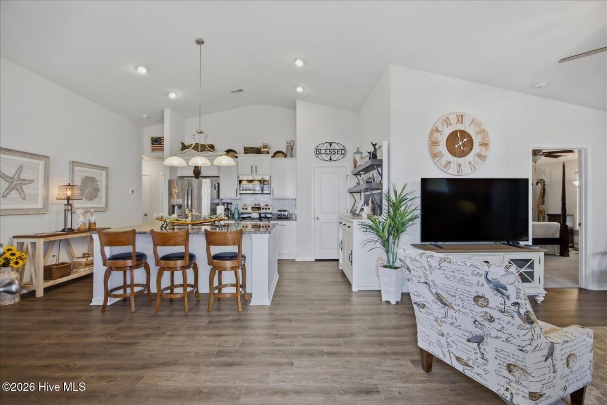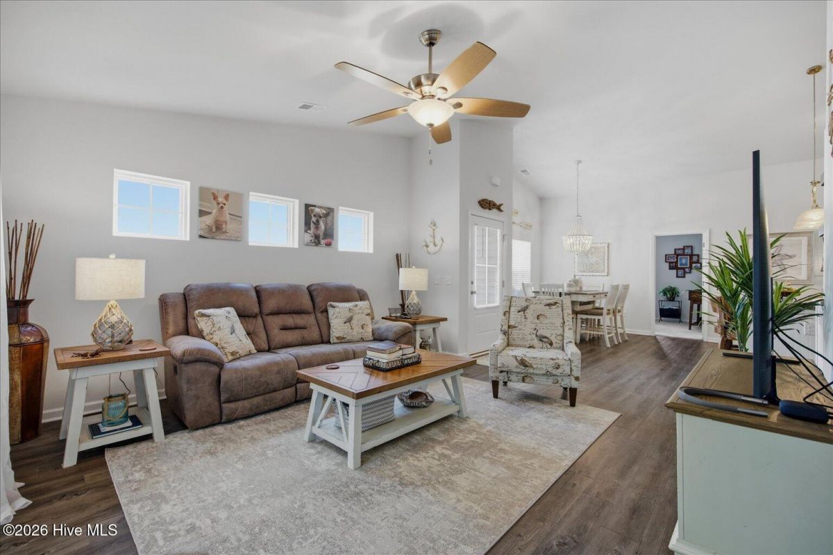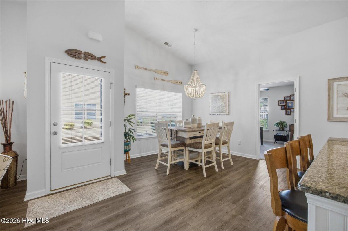 Enjoy easy coastal living in this beautifully maintained one-level attached duet townhome, ideally located just 5 minutes from Calabash and 15 minutes from Sunset Beach. This home is in excellent condition and designed for comfort and convenience. The functional layout is one of the most sought after floorplans in this area. It offers spacious living areas, three well appointed bedrooms. This home has thoughtful upgrades throughout, including updated light fixtures and ceiling fans added in all bedrooms as well as on the screened porch. The primary bedroom features a huge walk-in closet, two sinks, the vanity and an upgraded comfort height toilet. The two guest bedrooms are located on the opposite side of the house and share a full bath. The kitchen has a tile backsplash and a beautiful island for entertaining. There is also a generously sized pantry. Enjoy meals at the barstool seating or at the dining area adjacent to the kitchen, which easily fits a 6 person table. Enjoy the year round nice weather on the screened porch and you will appreciate the private grilling patio. This home backs up to a section of mature trees that should always remain. It is very private in the back. A two-car garage provides ample parking and storage space. The HOA maintains the landscaping, allowing for truly low-maintenance living, so you can spend more time enjoying the nearby beaches, golf, dining, and coastal charm. Whether you're seeking a primary residence or vacation getaway, this move-in ready home offers the perfect blend of location, condition, and ease of living. Residents in Calabash Lakes enjoy a huge community pool, nice clubhouse with fitness center and tennis/pickleball courts.