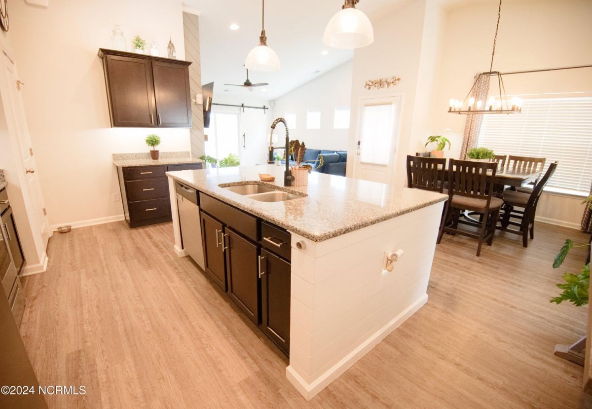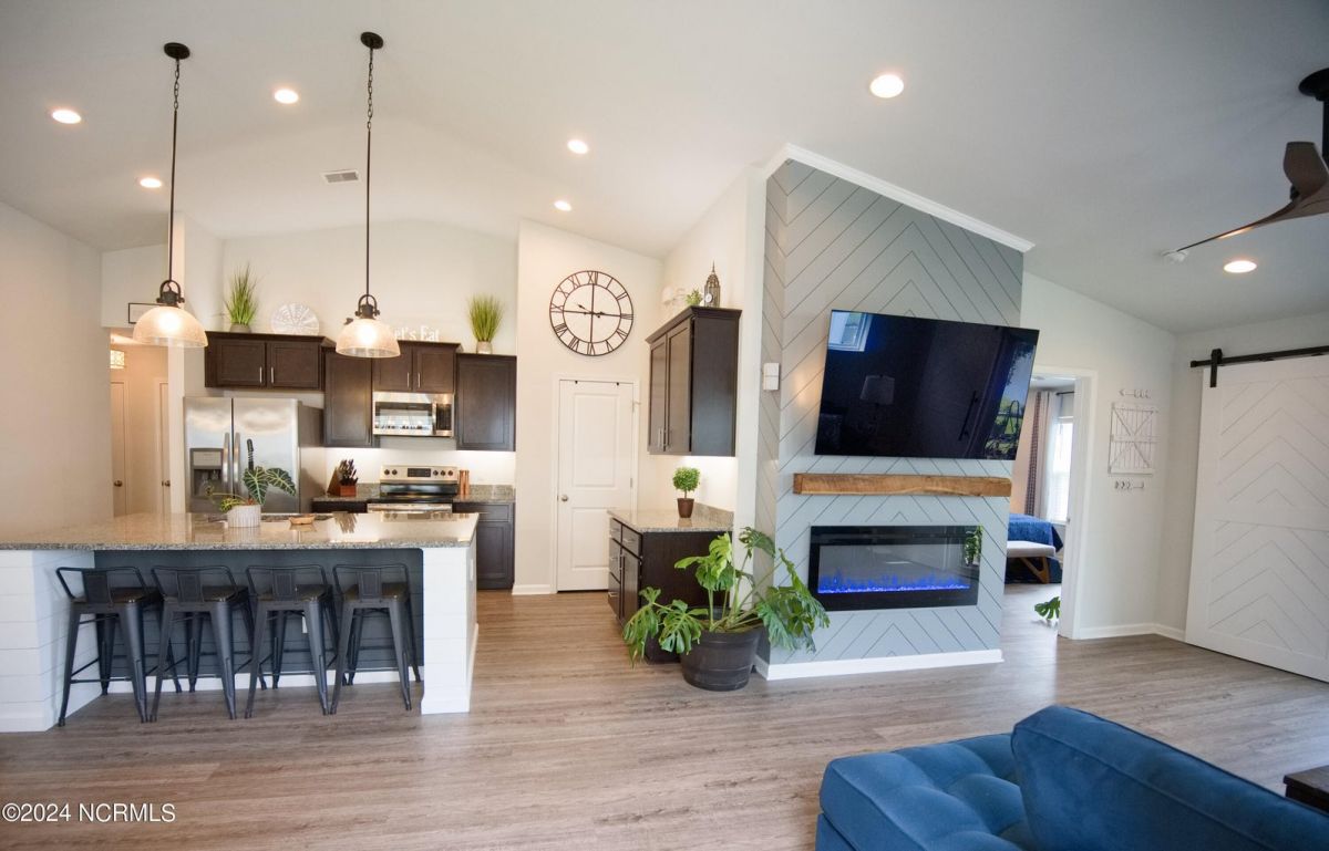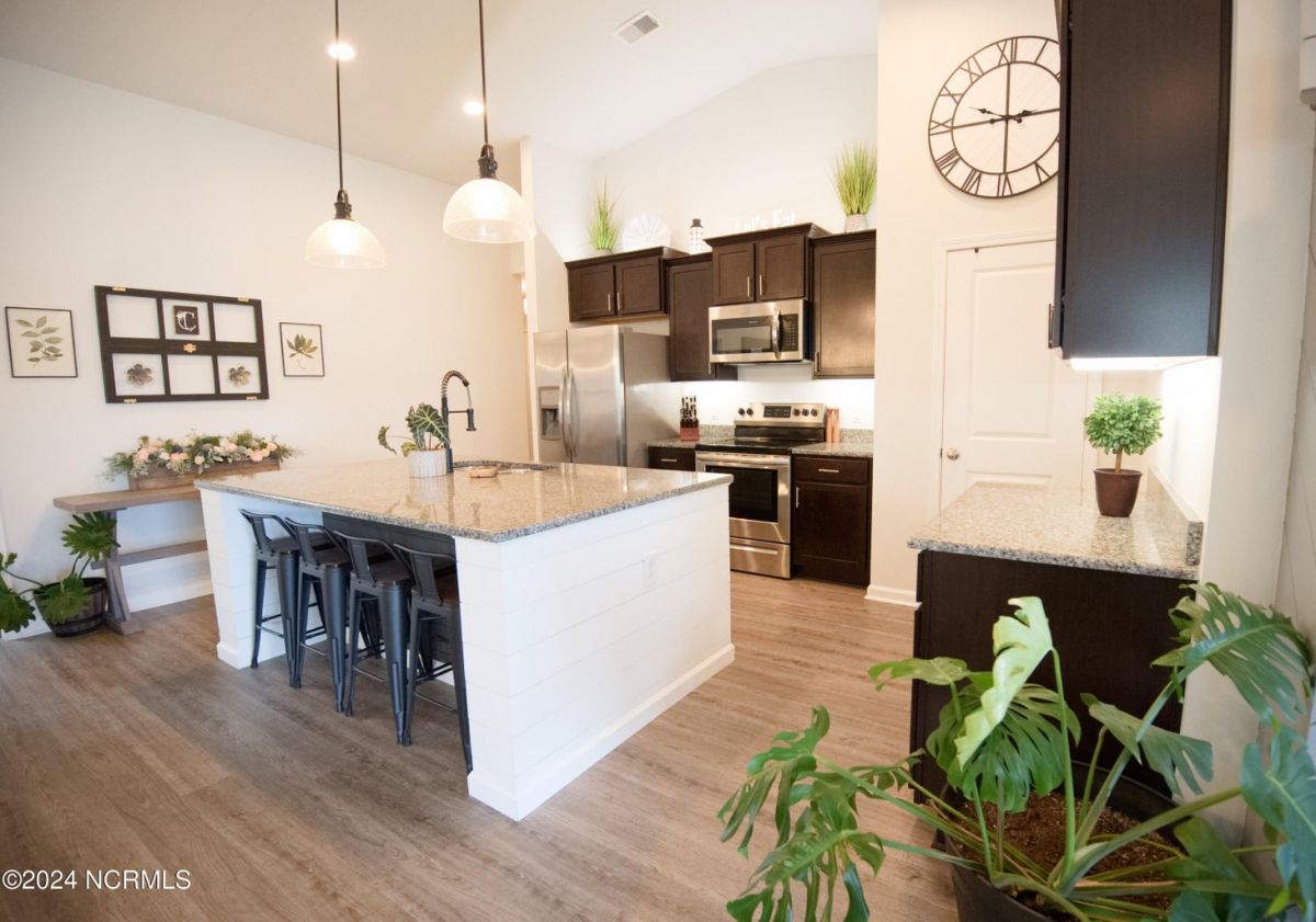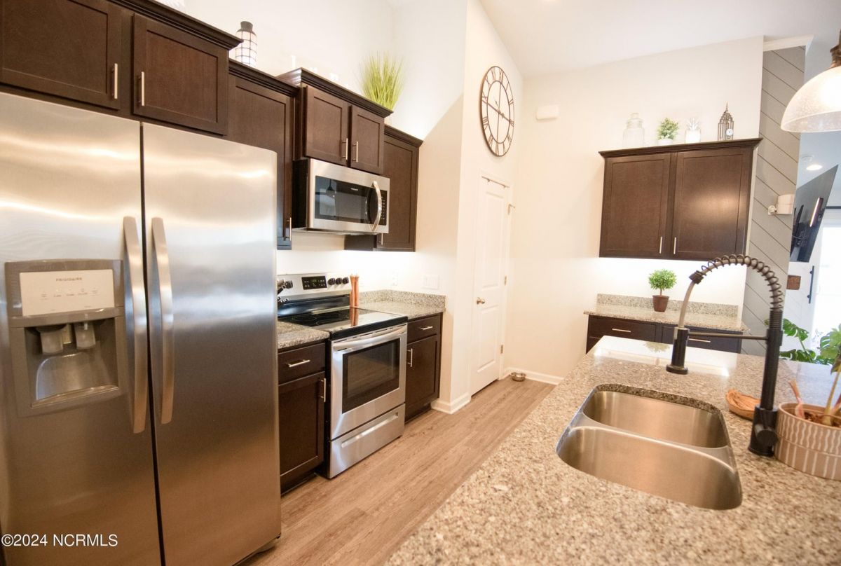 Welcome to your serene sanctuary in the picturesque community of Calabash Lakes! Nestled amidst the tranquil surroundings of Calabash, this stunning maintenance-free townhome boasts Beautiful Upgrades and a captivating Pond View! As you step inside, you'll be greeted by an atmosphere of elegance and comfort. The spacious living area features tasteful upgrades, including LVP flooring throughout the home, custom lighting fixtures, & designer touches throughout such as shiplap in many areas of the home, custom barn doors in the living room, fireplace & mantle in the living room and so much more! The kitchen is a chef's delight, with granite countertops, stainless steel appliances, undercabinet lighting, lights in pantry and extra cabinetry added for all your culinary adventures. The Master Suite is a haven of relaxation, offering peaceful pond views with lots of space as you enter and see the stunning accent wall with shiplap and intricate trimwork.The luxurious ensuite offers dual vanities, shiplap walls, custom mirrors, sconces & walk-in shower. Two additional bedrooms provide plenty of space for family or guests, or can be used as a home office with a custom built-in desk already in place. Step outside to your screened in porch & oversized patio to take in the breathtaking views of the tranquil pond, where you can unwind with a morning coffee & enjoying the turtles, birds & incredible sunsets. * 2 BRAND NEW HVAC UNITS in 2024! Your 2 car garage even has a mini-split system(Feb 24) so you can heat or cool your garage! Calabash Lakes offers wonderful amenities for residents to enjoy including large brand new Salt Water Pool, Clubhouse with Fitness Center, Clubs, Social Activities & Pickleball Courts. Lawncare and outdoor maintenance is all taken care of for you by the HOA. Right down the road is the charming town of Calabash known for its amazing restaurants. Within minutes you have quaint shops, boutiques, golf courses & award winning beaches!This one is a must see!