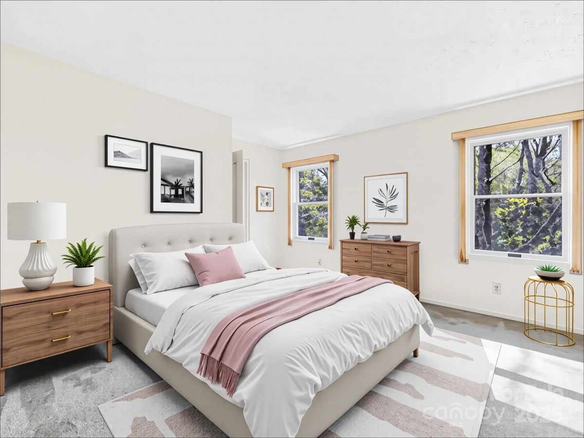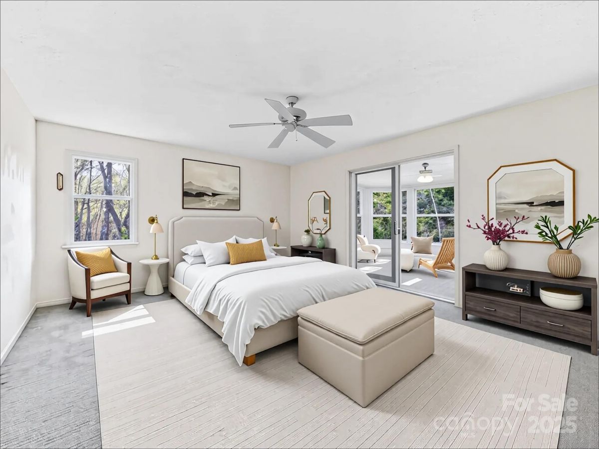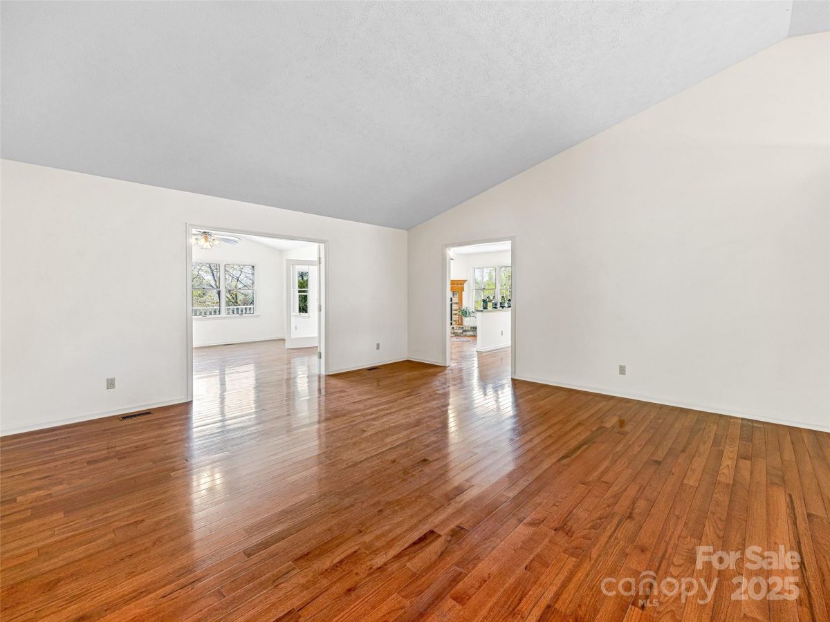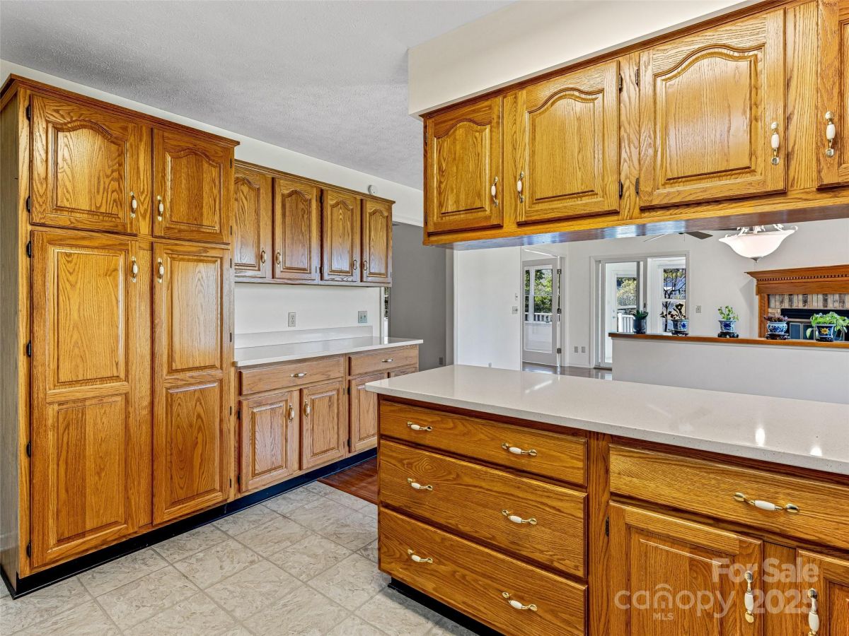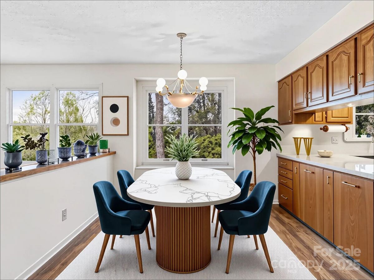 This beautifully maintained tree-top home is nestled in the desirable gated community of Carriage Park and offers the convenience of one-level living. Enjoy open, light-filled spaces, including formal living and dining rooms, a spacious family room, and a kitchen with quartz countertops, a breakfast nook, and a cozy hearth area with a fireplace. Vaulted ceilings and hardwood floors add charm throughout. Two sunrooms (not included in heated square footage) provide peaceful retreats, while the generous laundry room features a sink and ample cabinetry. Step onto the open deck to enjoy winter views and stunning sunsets from this quiet cul-de-sac location. The home also includes a brand-new roof (2024) and a crawlspace with a workshop and great storage. Residents enjoy top-tier amenities: clubhouse, indoor pool, tennis courts, and scenic walking trails. All just minutes to downtown Hendersonville, medical facilities, shopping, and restaurants—comfort and community in one perfect package!