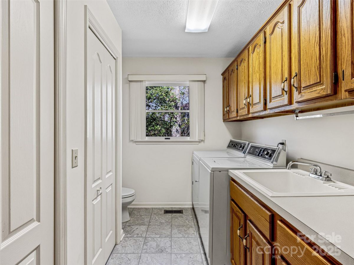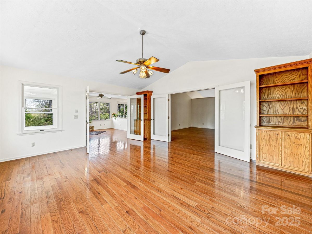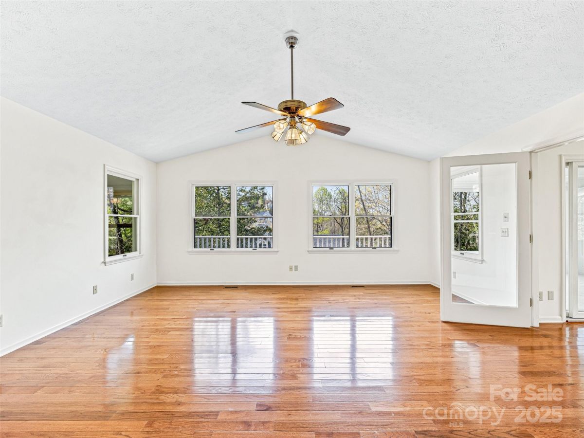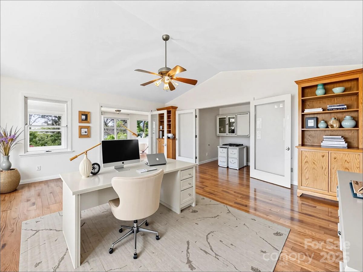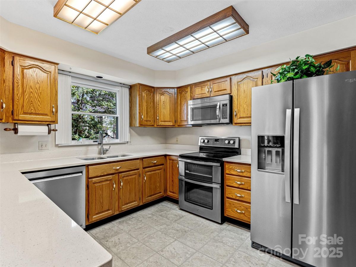 This beautifully maintained tree-top home is nestled in the desirable gated community of Carriage Park and offers the convenience of one-level living. Enjoy open, light-filled spaces, including formal living and dining rooms, a spacious family room, and a kitchen with quartz countertops, a breakfast nook, and a cozy hearth area with a fireplace. Vaulted ceilings and hardwood floors add charm throughout. Two sunrooms (not included in heated square footage) provide peaceful retreats, while the generous laundry room features a sink and ample cabinetry. Step onto the open deck to enjoy winter views and stunning sunsets from this quiet cul-de-sac location. The home also includes a brand-new roof (2024) and a crawlspace with a workshop and great storage. Residents enjoy top-tier amenities: clubhouse, indoor pool, tennis courts, and scenic walking trails. All just minutes to downtown Hendersonville, medical facilities, shopping, and restaurants—comfort and community in one perfect package!