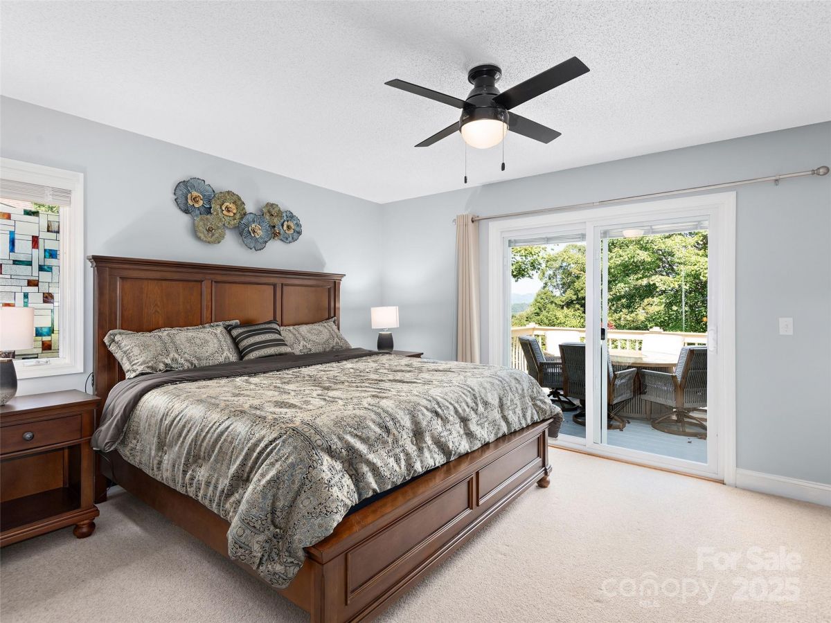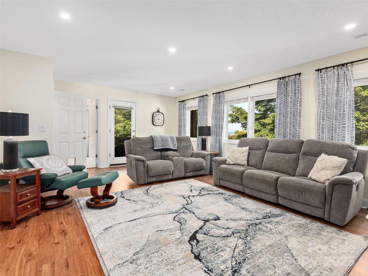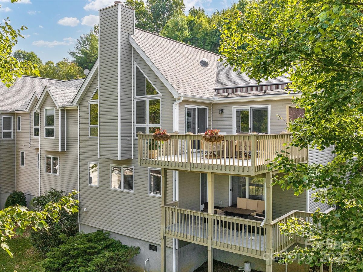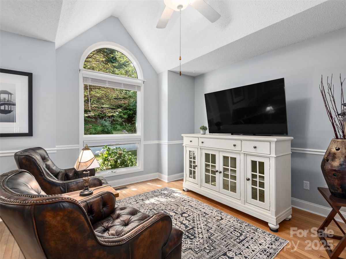 Stunning Views! Experience refined living in this exquisite 4BR/3BA home in one of Hendersonville's most desirable communities. The living room features a beamed cathedral ceiling, solar tubes, large tinted windows with sunshades, and a cozy gas fireplace with stone surround. Hardwood floors and updated lighting add sophistication. The split-bedroom layout places the primary suite on the main level with a sliding glass door, built-in blinds, and a spa-like bath with oversized glass shower. The kitchen shines with a new GE range and custom built-in banquette. Lower level includes 2BRs, full bath, and family room. Enjoy indoor-outdoor living with a front porch and back deck with electric awning. The 2-car garage has epoxy-treated floors for style and durability. This well-maintained, updated home offers comfort and elegance.