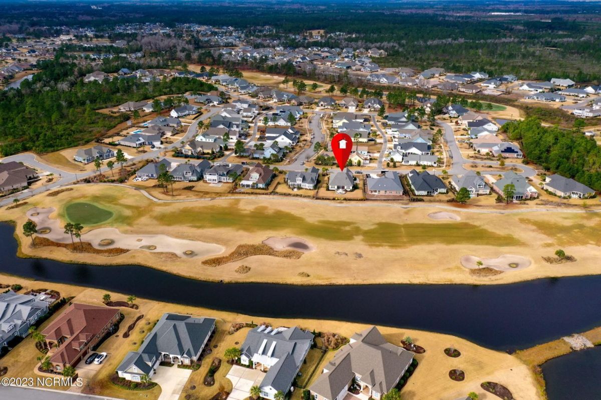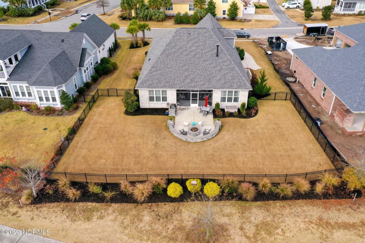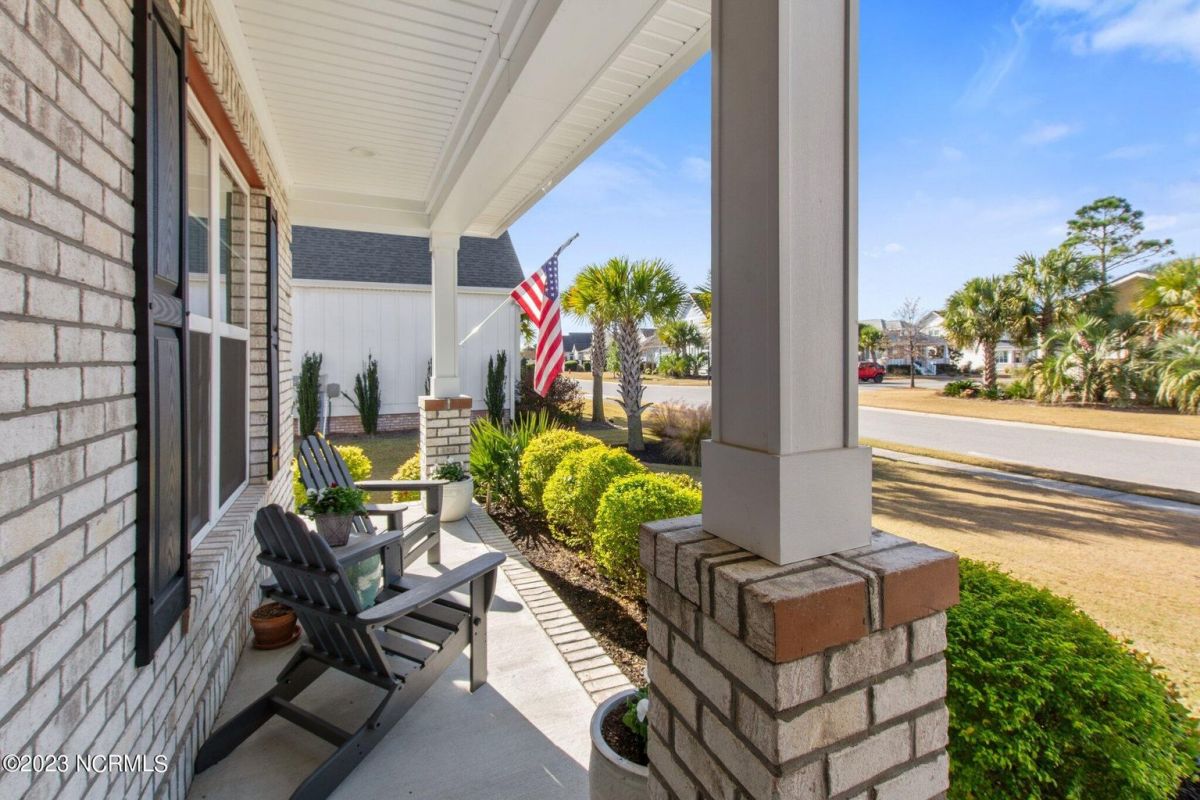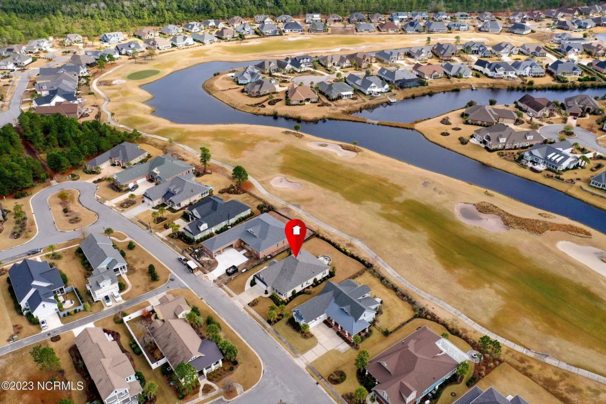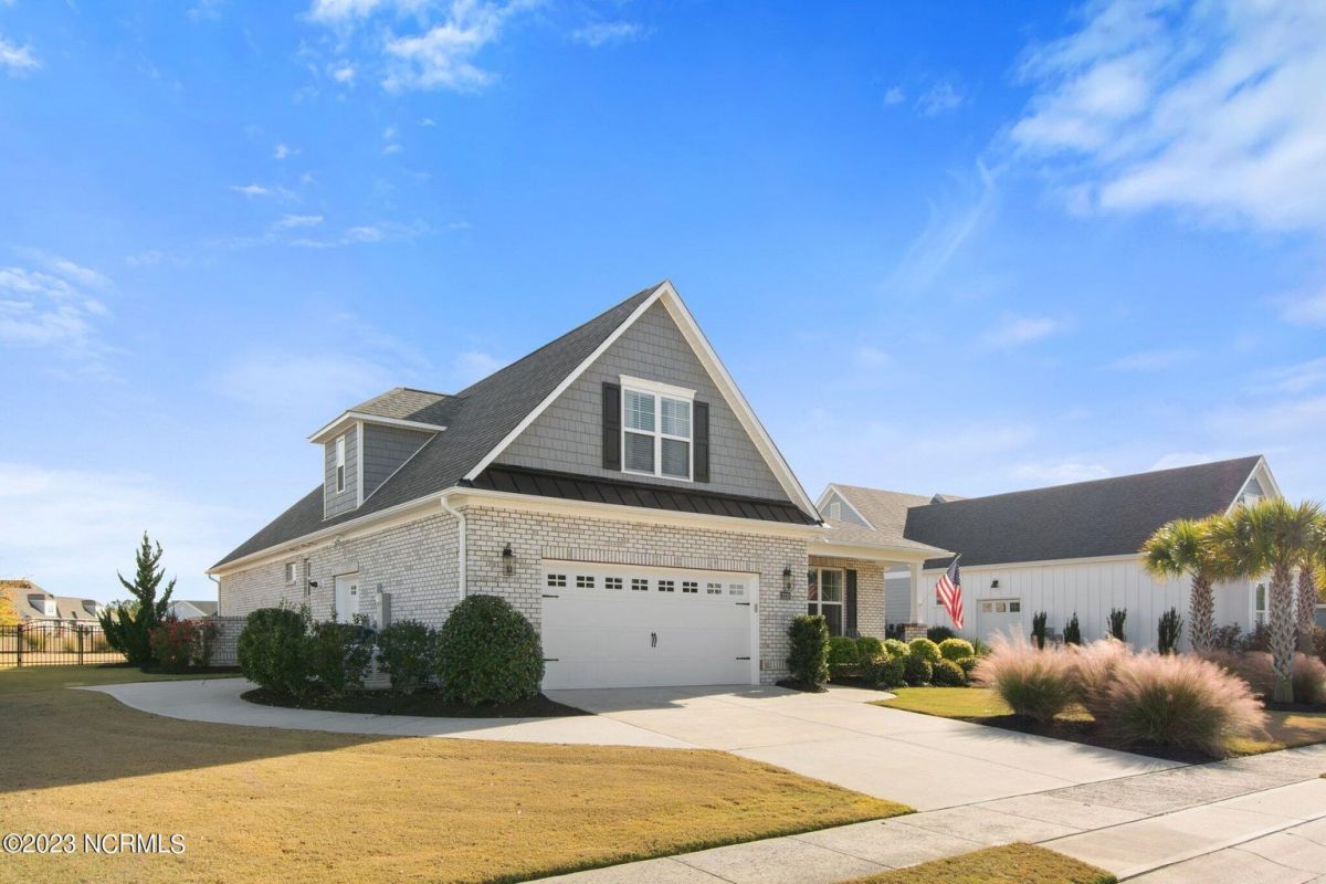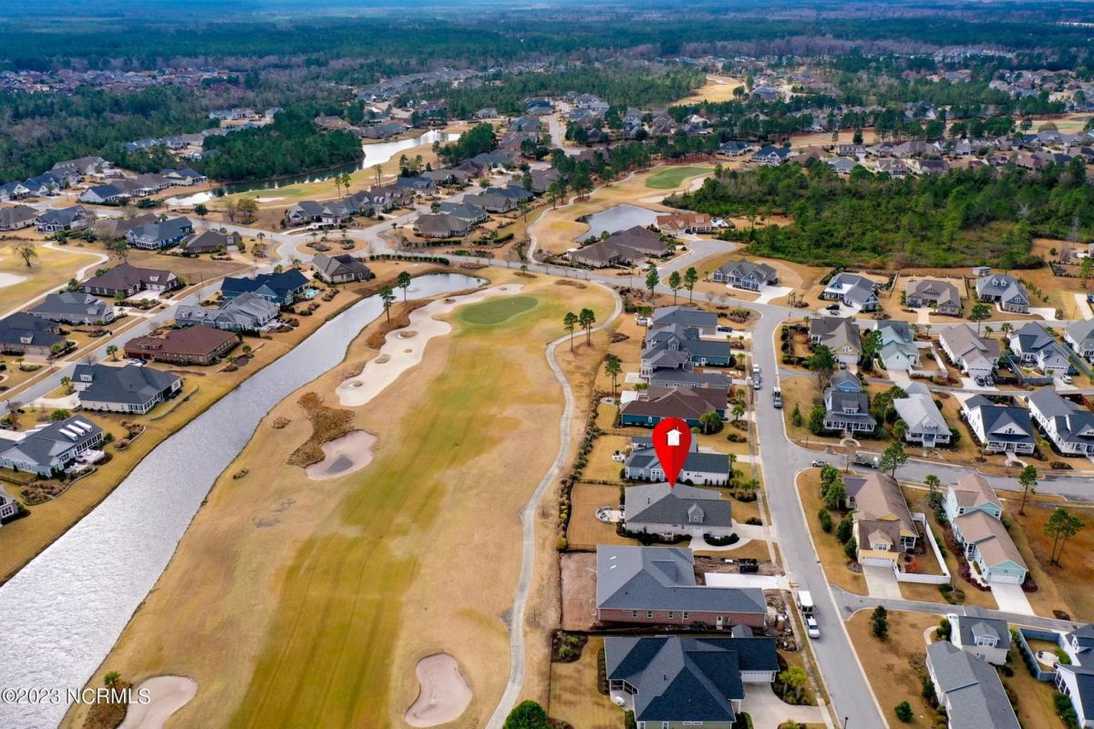 Welcome home to one of Coastal Carolina's most sought-after communities, Compass Pointe, which is rich with amenities, resort-style living, gorgeous coastal landscaping, and less than 15 minutes to Wilmington's downtown riverfront and restaurants. This luxurious Horizon home features an open concept, an abundance of natural light, large windows, and overlooks the 7th fairway of the pristine Compass Pointe Golf Course. There are so many upgrades in this home - it's a must see to appreciate the attention to details. The upgraded gourmet kitchen with a large, leathered granite countertop, custom designed lower pull out soft-close drawers, 5 burner gas top stove and oven are a culinary enthusiast's and entertainer's dream. The expansive primary suite is conveniently located on the main floor along with 2 more bedrooms. Designed for privacy, there is a spacious bonus room located over the garage that can also serve as a guest suite with separate bath, walk-in closet, or for versatility as your very own movie room. The stunning primary bathroom features a zero-entry walk in shower, dual shower heads, and double sinks. The large laundry room is located adjacent to the primary bathroom and will be an organizer's dream with built-ins, cubbies, hooks, and storage. Other notable features in the home include a pull-down murphy bed which allows for additional versatility in living space, gas fireplace, built-ins and impeccable hardwoods. Perfect for entertaining, relaxing, and enjoying the view of the golf course, you and your guests will enjoy the large screened-in porch, extended patio, backyard oasis with custom stone-built wall, fire pit, and Weber barbeque grill. The outdoor area is beautifully landscaped with a fenced-in yard as well as an invisible fence. Other features that must be mentioned with this home includes an entire house Generac generator, tankless hot water heater and golf cart garage.
