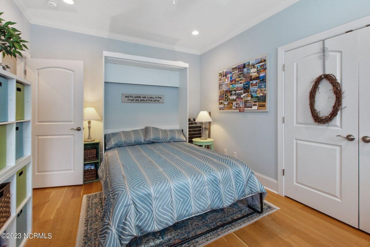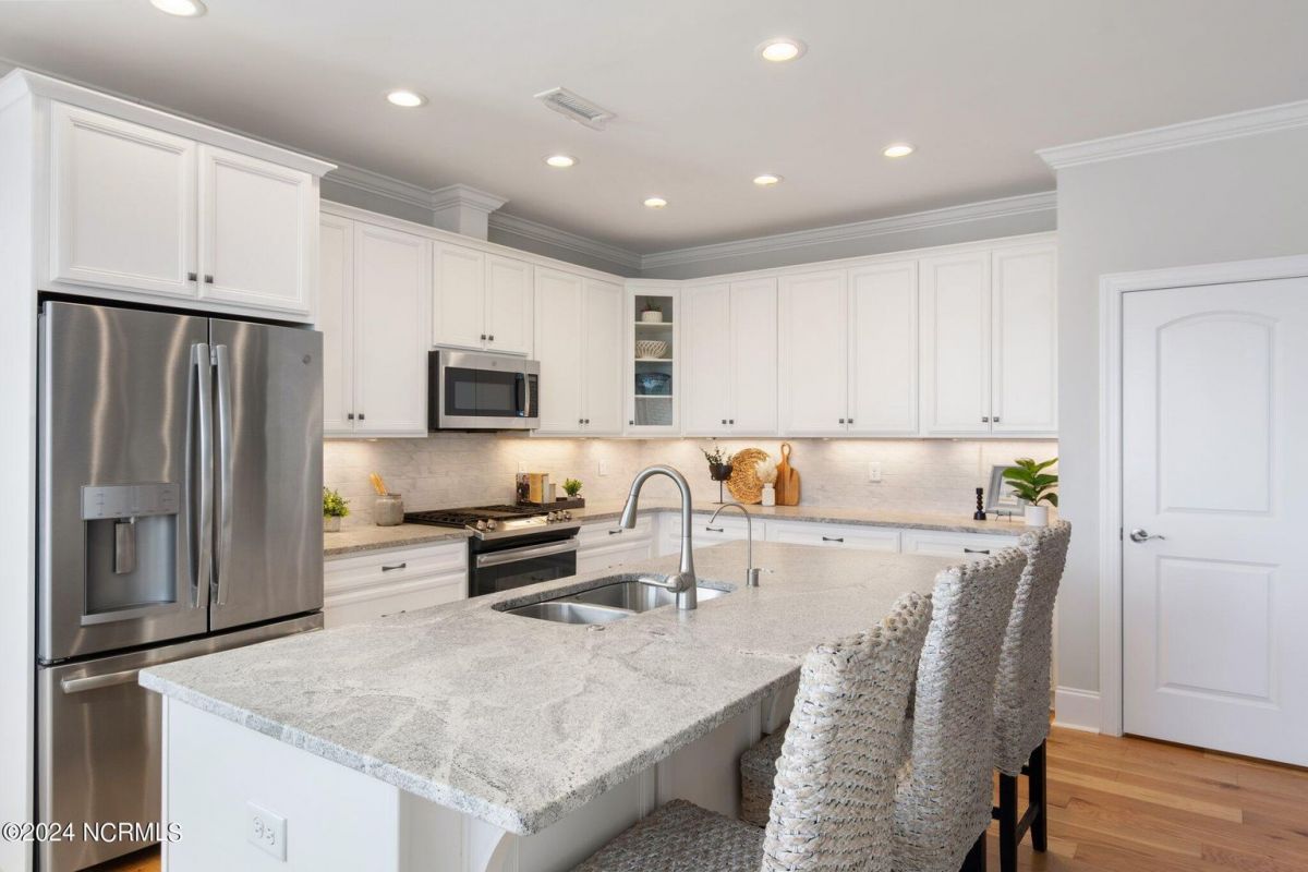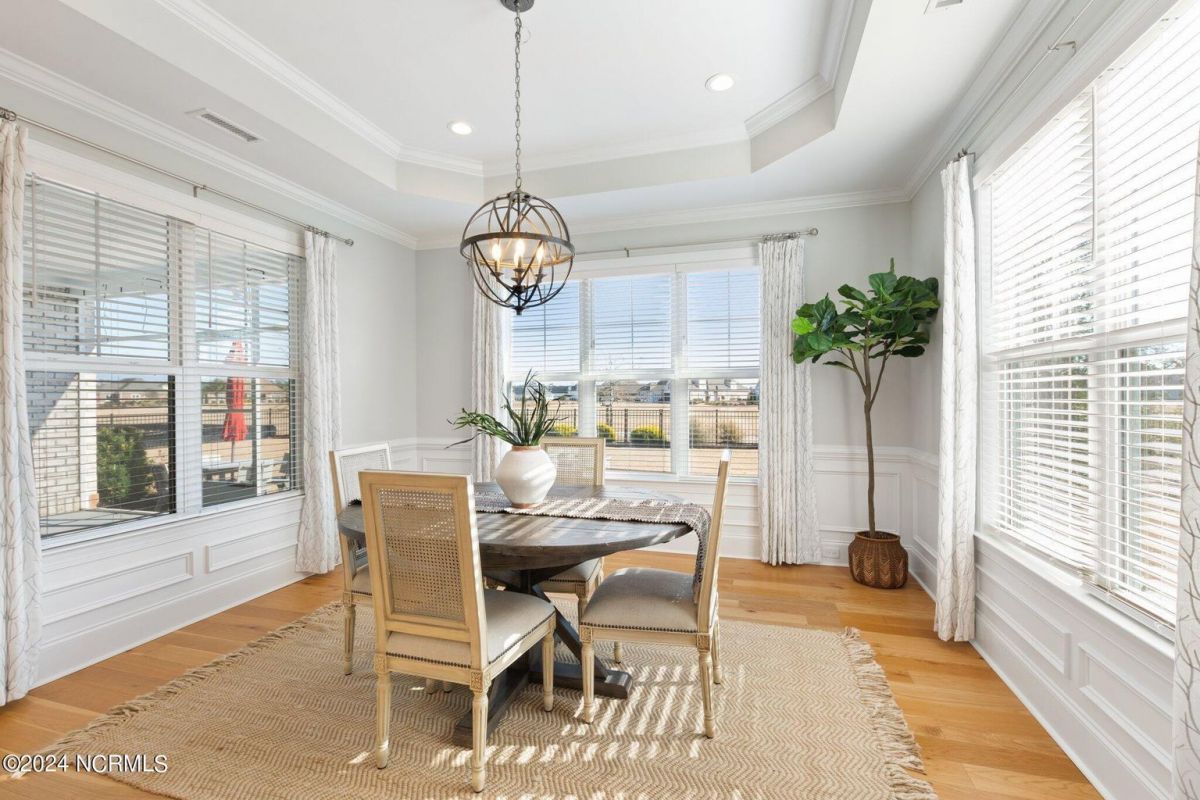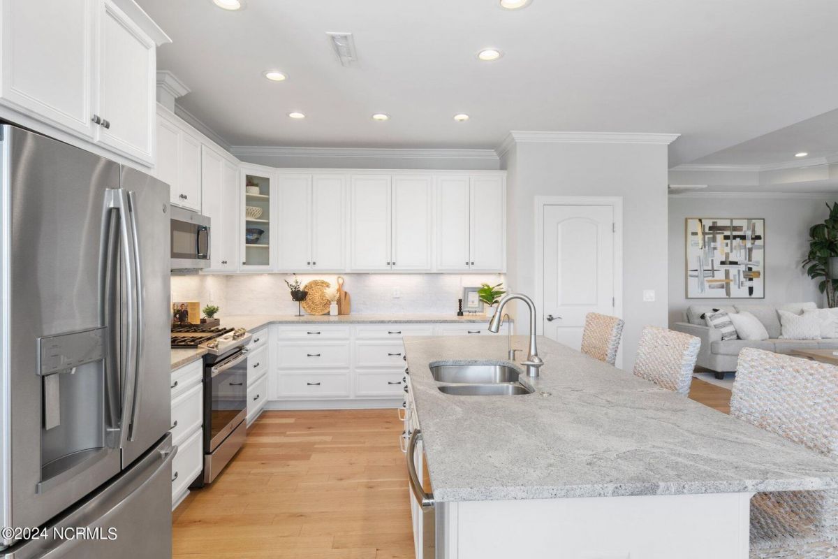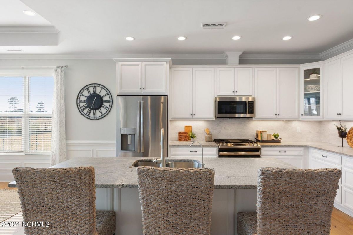 Welcome home to one of Coastal Carolina's most sought-after communities, Compass Pointe, which is rich with amenities, resort-style living, gorgeous coastal landscaping, and less than 15 minutes to Wilmington's downtown riverfront and restaurants. This luxurious Horizon home features an open concept, an abundance of natural light, large windows, and overlooks the 7th fairway of the pristine Compass Pointe Golf Course. There are so many upgrades in this home - it's a must see to appreciate the attention to details. The upgraded gourmet kitchen with a large, leathered granite countertop, custom designed lower pull out soft-close drawers, 5 burner gas top stove and oven are a culinary enthusiast's and entertainer's dream. The expansive primary suite is conveniently located on the main floor along with 2 more bedrooms. Designed for privacy, there is a spacious bonus room located over the garage that can also serve as a guest suite with separate bath, walk-in closet, or for versatility as your very own movie room. The stunning primary bathroom features a zero-entry walk in shower, dual shower heads, and double sinks. The large laundry room is located adjacent to the primary bathroom and will be an organizer's dream with built-ins, cubbies, hooks, and storage. Other notable features in the home include a pull-down murphy bed which allows for additional versatility in living space, gas fireplace, built-ins and impeccable hardwoods. Perfect for entertaining, relaxing, and enjoying the view of the golf course, you and your guests will enjoy the large screened-in porch, extended patio, backyard oasis with custom stone-built wall, fire pit, and Weber barbeque grill. The outdoor area is beautifully landscaped with a fenced-in yard as well as an invisible fence. Other features that must be mentioned with this home includes an entire house Generac generator, tankless hot water heater and golf cart garage.