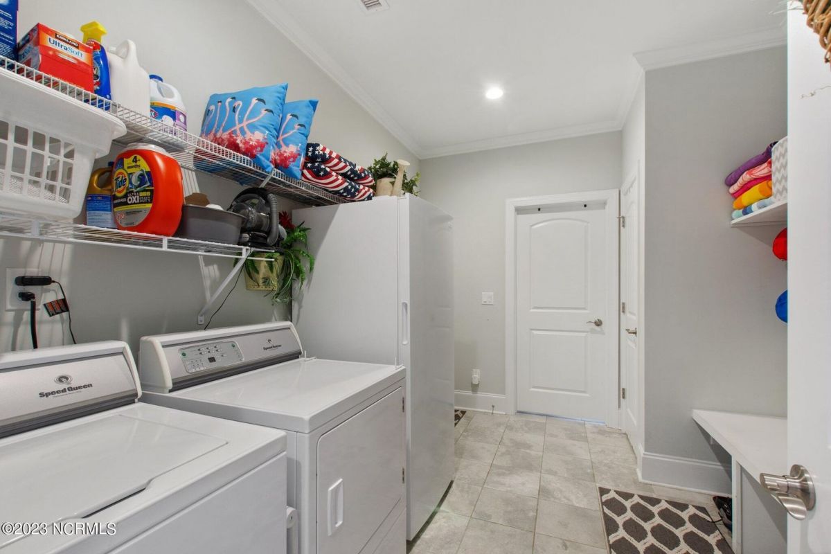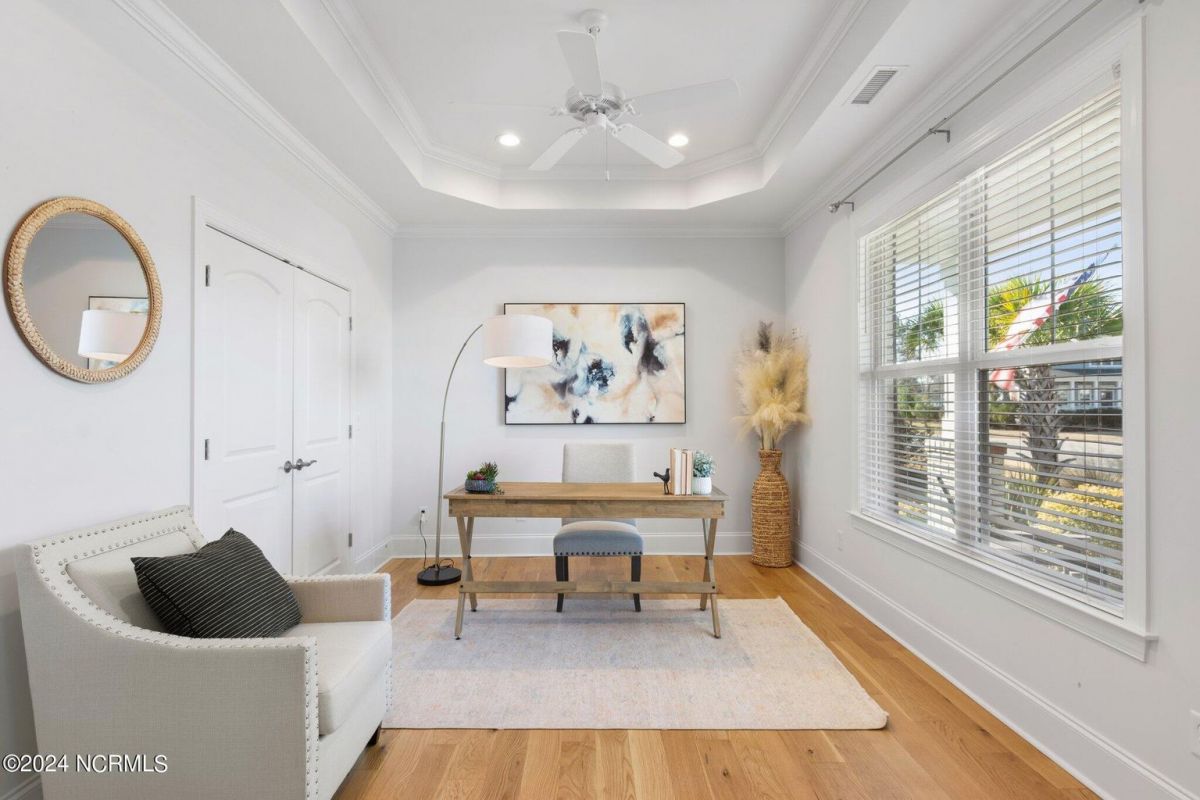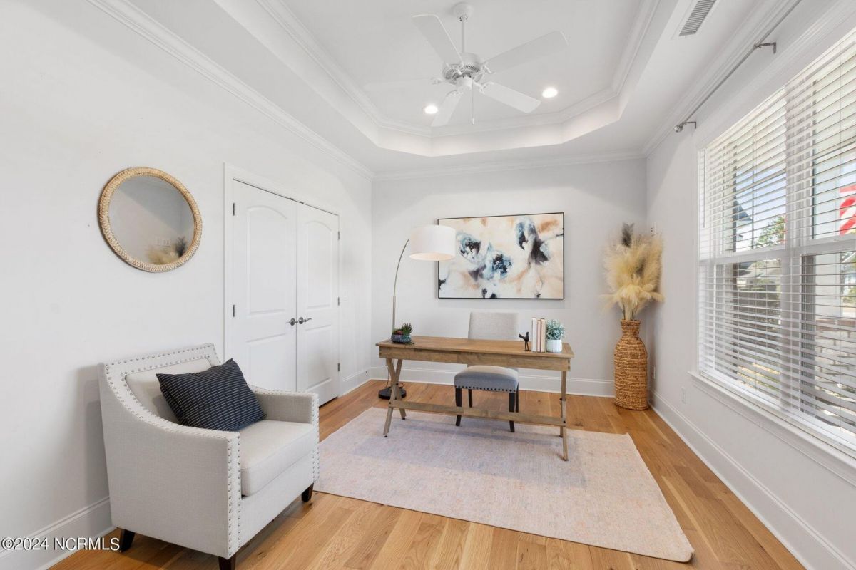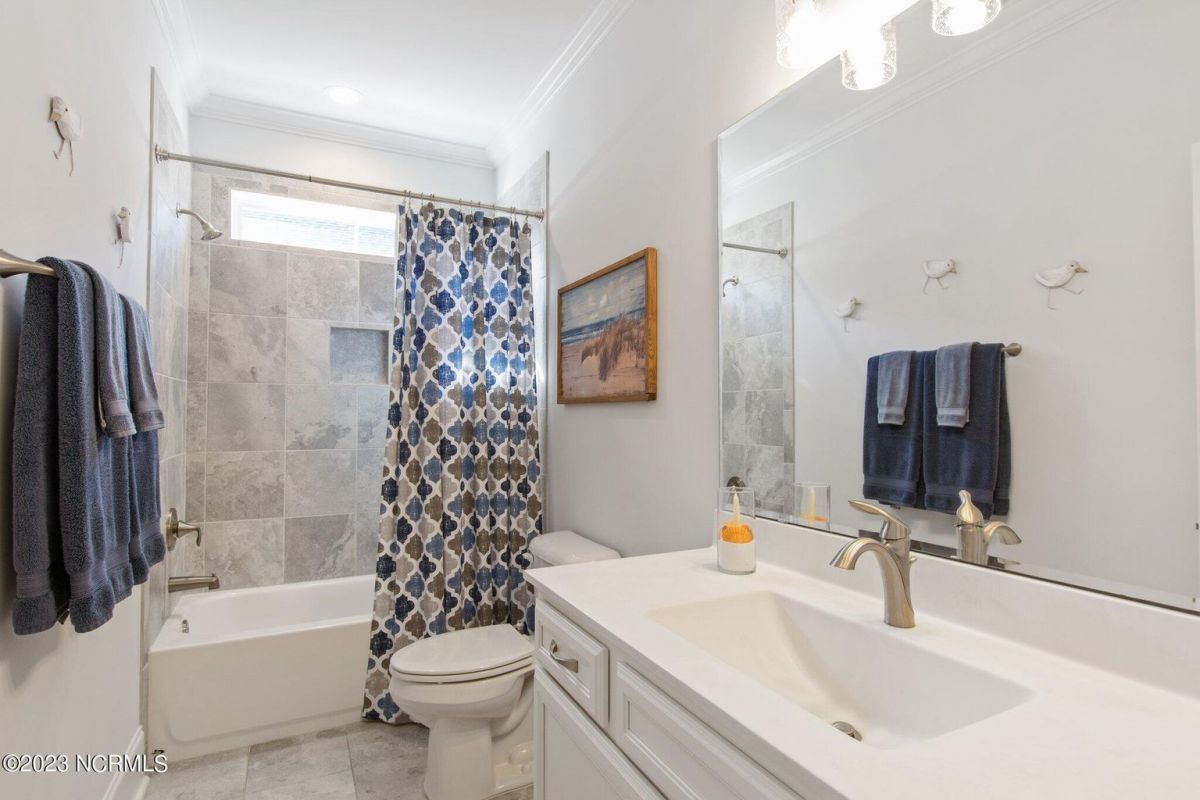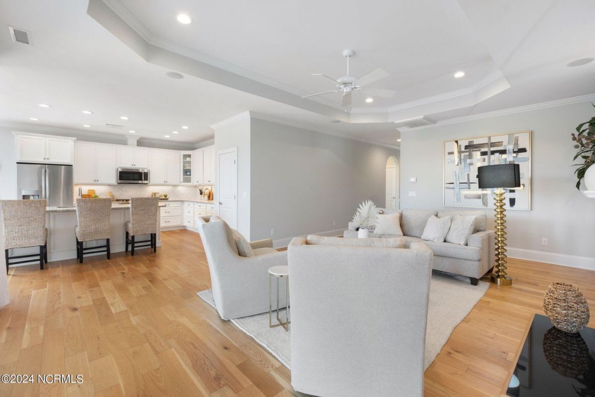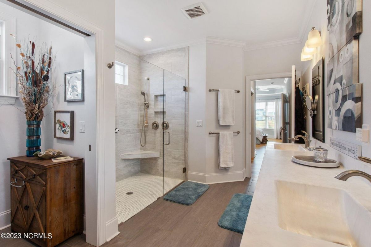 Welcome home to one of Coastal Carolina's most sought-after communities, Compass Pointe, which is rich with amenities, resort-style living, gorgeous coastal landscaping, and less than 15 minutes to Wilmington's downtown riverfront and restaurants. This luxurious Horizon home features an open concept, an abundance of natural light, large windows, and overlooks the 7th fairway of the pristine Compass Pointe Golf Course. There are so many upgrades in this home - it's a must see to appreciate the attention to details. The upgraded gourmet kitchen with a large, leathered granite countertop, custom designed lower pull out soft-close drawers, 5 burner gas top stove and oven are a culinary enthusiast's and entertainer's dream. The expansive primary suite is conveniently located on the main floor along with 2 more bedrooms. Designed for privacy, there is a spacious bonus room located over the garage that can also serve as a guest suite with separate bath, walk-in closet, or for versatility as your very own movie room. The stunning primary bathroom features a zero-entry walk in shower, dual shower heads, and double sinks. The large laundry room is located adjacent to the primary bathroom and will be an organizer's dream with built-ins, cubbies, hooks, and storage. Other notable features in the home include a pull-down murphy bed which allows for additional versatility in living space, gas fireplace, built-ins and impeccable hardwoods. Perfect for entertaining, relaxing, and enjoying the view of the golf course, you and your guests will enjoy the large screened-in porch, extended patio, backyard oasis with custom stone-built wall, fire pit, and Weber barbeque grill. The outdoor area is beautifully landscaped with a fenced-in yard as well as an invisible fence. Other features that must be mentioned with this home includes an entire house Generac generator, tankless hot water heater and golf cart garage.
