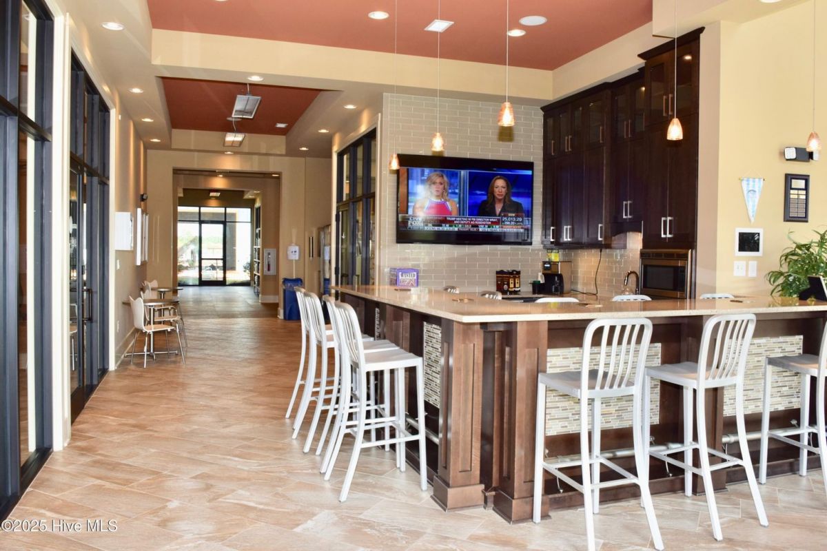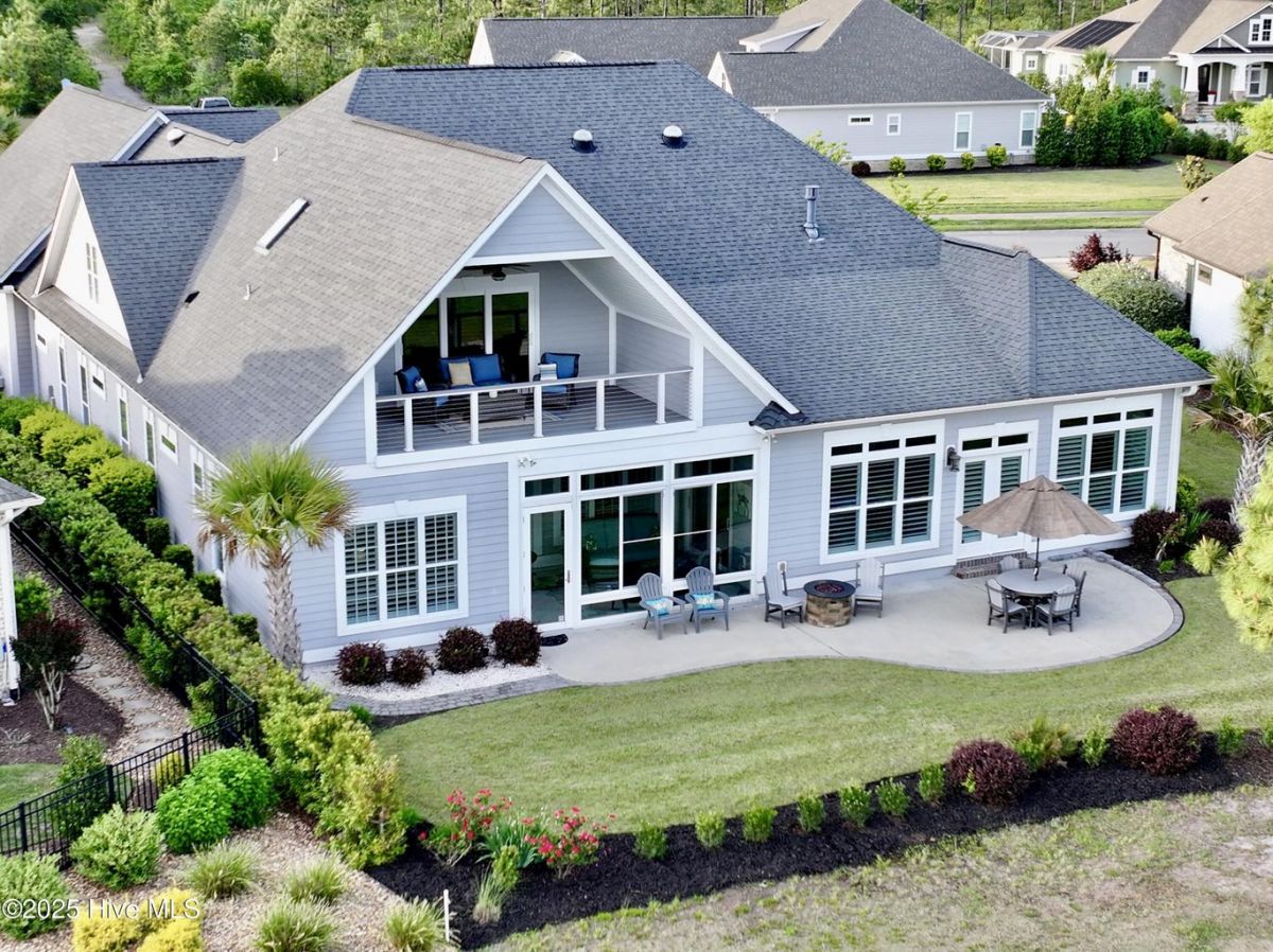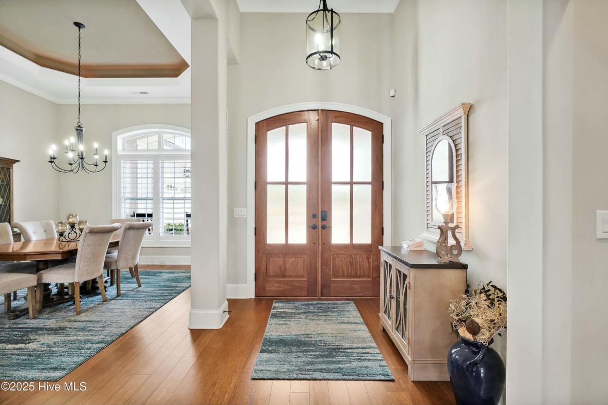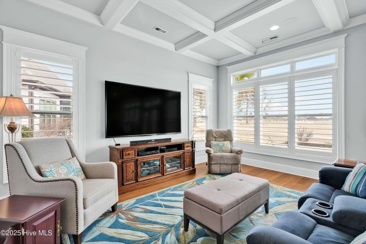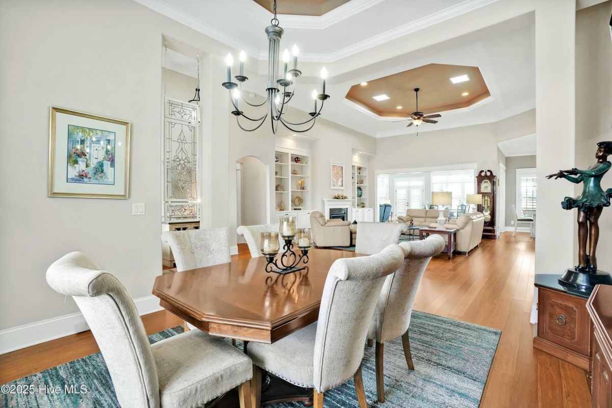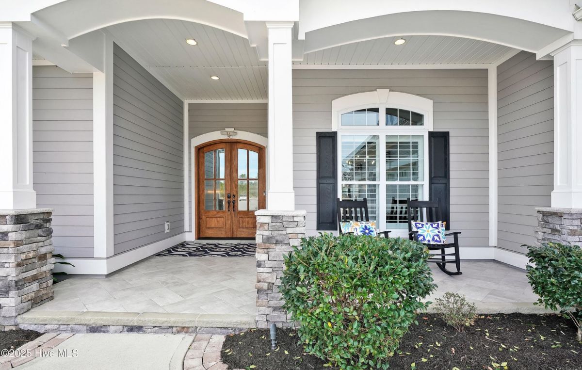 Live the Carolina dream in this custom home nestled on the Rick Robbins designed 6th green. This elegant residence, sprawled across nearly 5000 sq. ft., has unparalleled upgrades creating an ideal environment for entertaining & everyday living. From the covered front porch, enter the foyer & you'll find plenty of natural light, character, & quality throughout this open plan. A 14' tray ceiling in the great room boasts a gas log fireplace flanked by built-in cabinetry & shelving with beautiful bamboo flooring. The kitchen is equipped with top-of-the-line appliances, custom cabinetry, an oversized island, quartz countertops, & exquisite tile backsplash. Dining options include an elegant dining room with lighted tray ceiling, oversized breakfast nook & additional dining in the enclosed lanai. Work is a pleasure in the executive office with coffered ceiling & endless views. Watch the golfers from the family room with coffered ceiling, cozy sunroom, or outside from the extended patio, a true escape for morning views of the course. Retire to the master suite, a sanctuary of peace & relaxation featuring a lighted tray ceiling. Two walk-in closets lead to an opulent bathroom with dual vanities, zero-entry tiled shower & luxury jetted tub. Two additional bedrooms downstairs each with a full bathroom, ensure privacy & convenience for all. A three-car garage + storage room adds to this special design. For additional enjoyment the upper level bonus/media room offers panoramic views of the #6 green & water from your covered balcony. Down the hall is the 4th full bath + 4th bedroom offering flexible space for a guest suite, additional office, or recreation room. Pet-free home! Enjoy access to Compass Pointe's unparalleled amenities: Gated entry, Grand Lanai, indoor + outdoor pools, wellness center, tennis + pickleball courts, trails, kayaking, a lazy river, dog park and tailored social experiences. Private golf club memberships available. Your dream lifestyle awaits!