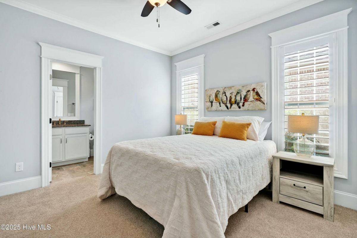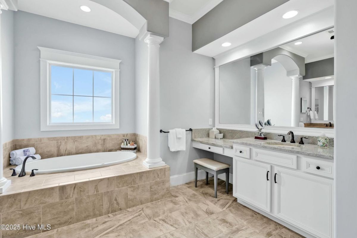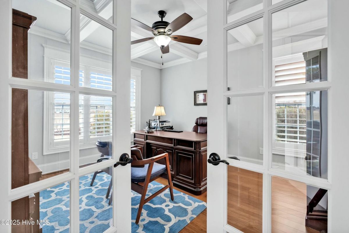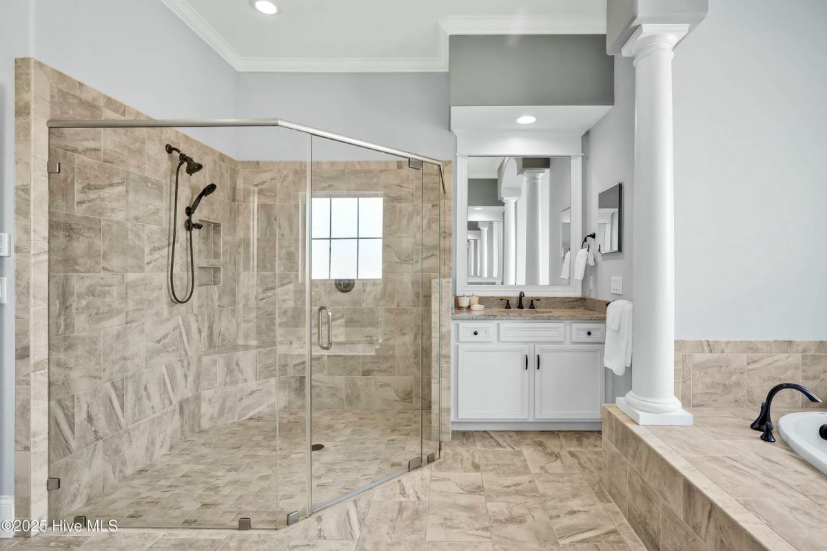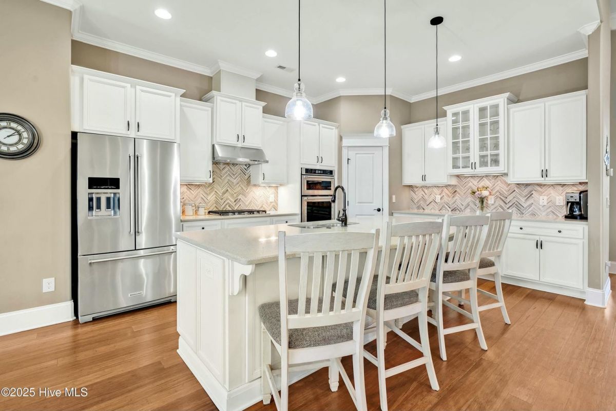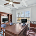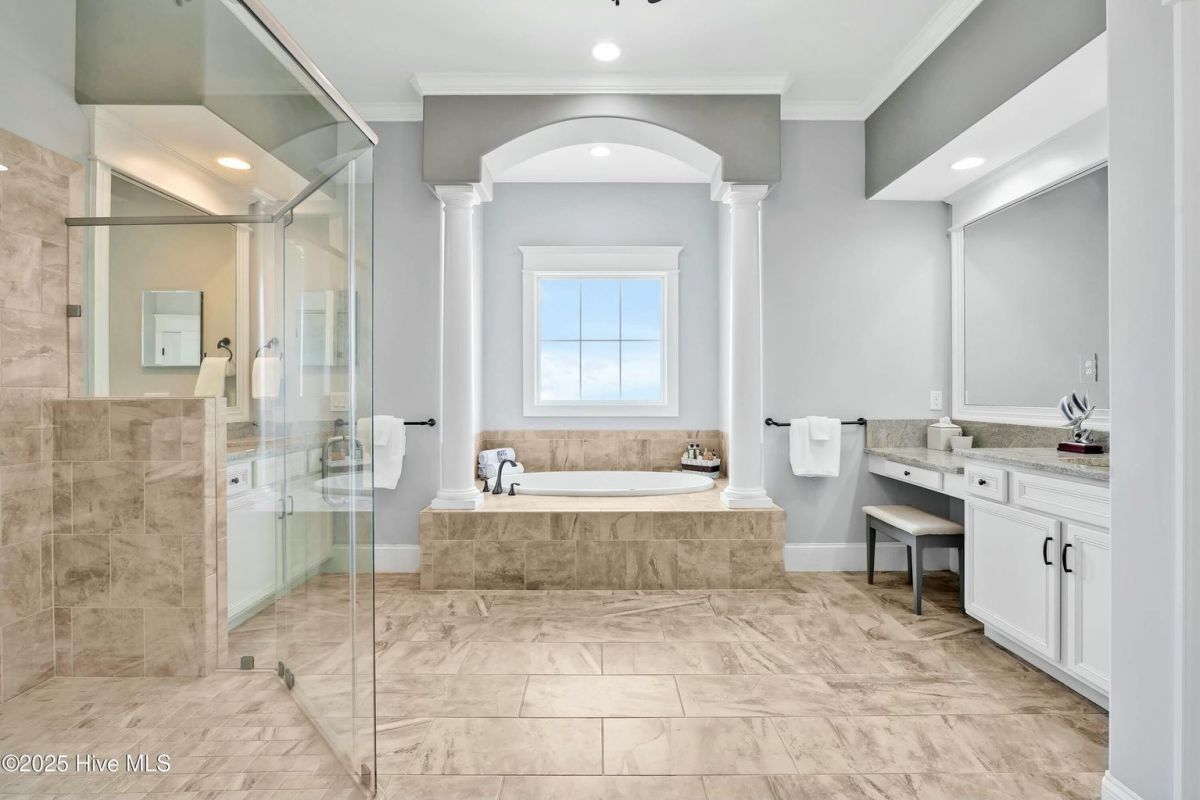 Live the Carolina dream in this custom home nestled on the Rick Robbins designed 6th green. This elegant residence, sprawled across nearly 5000 sq. ft., has unparalleled upgrades creating an ideal environment for entertaining & everyday living. From the covered front porch, enter the foyer & you'll find plenty of natural light, character, & quality throughout this open plan. A 14' tray ceiling in the great room boasts a gas log fireplace flanked by built-in cabinetry & shelving with beautiful bamboo flooring. The kitchen is equipped with top-of-the-line appliances, custom cabinetry, an oversized island, quartz countertops, & exquisite tile backsplash. Dining options include an elegant dining room with lighted tray ceiling, oversized breakfast nook & additional dining in the enclosed lanai. Work is a pleasure in the executive office with coffered ceiling & endless views. Watch the golfers from the family room with coffered ceiling, cozy sunroom, or outside from the extended patio, a true escape for morning views of the course. Retire to the master suite, a sanctuary of peace & relaxation featuring a lighted tray ceiling. Two walk-in closets lead to an opulent bathroom with dual vanities, zero-entry tiled shower & luxury jetted tub. Two additional bedrooms downstairs each with a full bathroom, ensure privacy & convenience for all. A three-car garage + storage room adds to this special design. For additional enjoyment the upper level bonus/media room offers panoramic views of the #6 green & water from your covered balcony. Down the hall is the 4th full bath + 4th bedroom offering flexible space for a guest suite, additional office, or recreation room. Pet-free home! Enjoy access to Compass Pointe's unparalleled amenities: Gated entry, Grand Lanai, indoor + outdoor pools, wellness center, tennis + pickleball courts, trails, kayaking, a lazy river, dog park and tailored social experiences. Private golf club memberships available. Your dream lifestyle awaits!