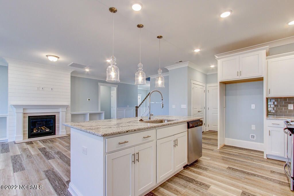 The Pinehurst III by Windsor Homes is in the Pointe Village section of Compass Pointe. Three bedrooms, 3 full baths. 2011 sq. ft. open floor plan with bedroom, full bath and floored attic space on 2nd floor. Spacious master bedroom and additional bedroom on 1st floor. Built-ins on each side of gas fireplace, and shiplap/wainscot accents in dining and great room. Screened porch and patio for relaxing/entertaining. Photos are representative, and are not of this home.