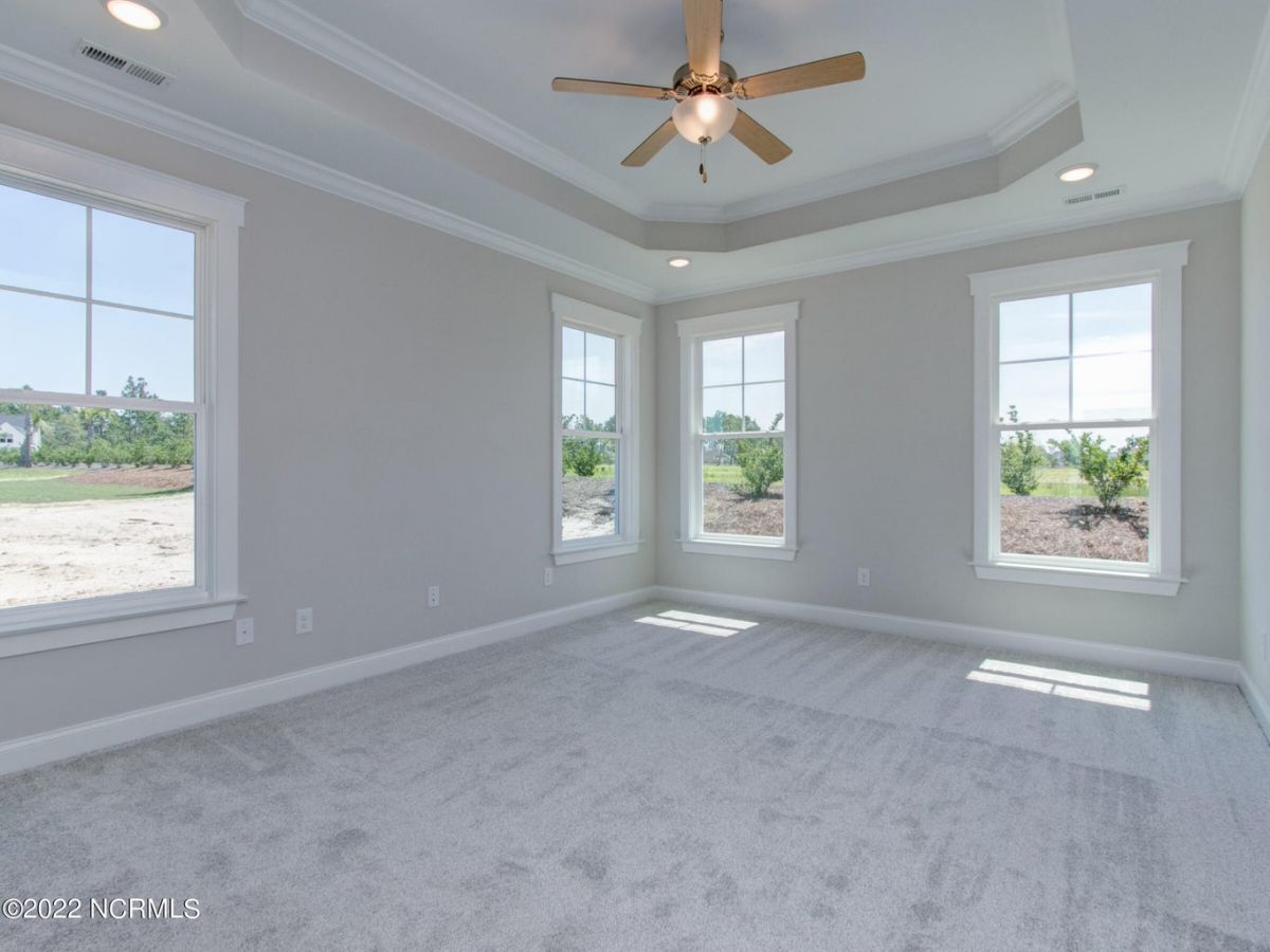 PRICE IMPROVEMENT! This Windsor Homes Pembroke 3 Model is very bright and spacious with 1st floor master bedroom, and additional bedroom on the 1st floor. Two full baths downstairs and a huge bedroom and full bath on the second floor. Elegant dining room with double barn doors can function as a study. Features include trey and coffered ceilings, laundry room, tile shower, dual vanities, and separate toilet closet in master bath, foyer, wainscoting, high quality LVP flooring and screened porch. This home is located in the Pointe Village neighborhood of Compass Pointe, a gated golf cart friendly neighborhood with resort-style amenities. Home is under construction. Photos are of a similar home.