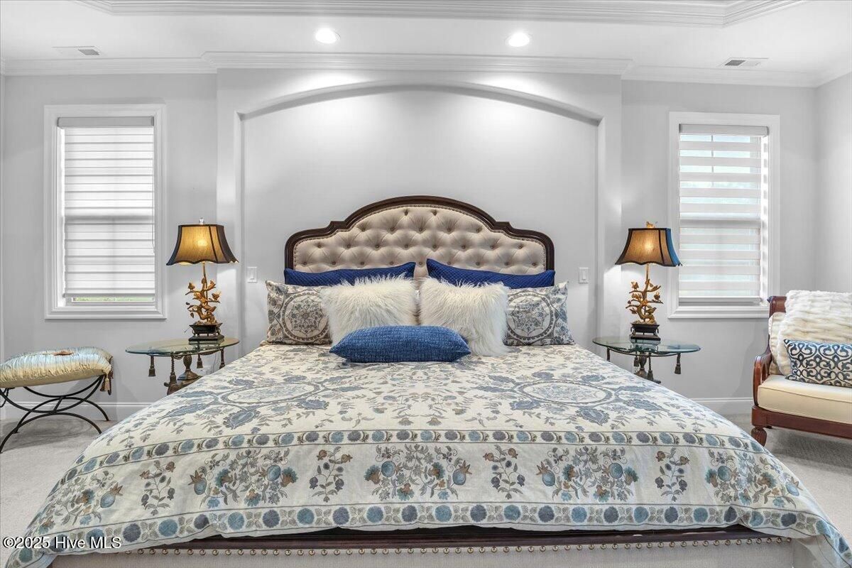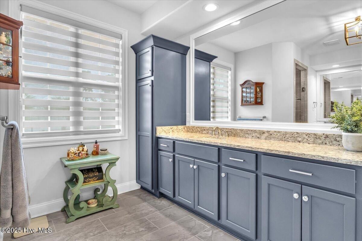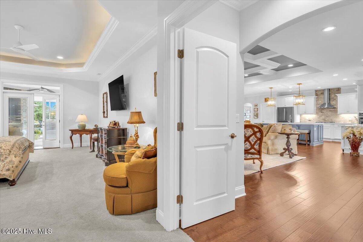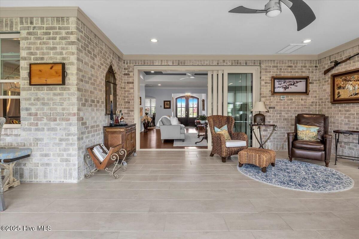 Presented for sale is this stunning executive home built by Coastal Luxury Homes, crafted for the discerning buyer. Thoughtfully designed and perfectly positioned along the par-3 8th fairway of the Rick Robbins Championship golf course, this home offers breathtaking tee-to-green and pond views every day. Located on a beautifully landscaped 1/3-acre lot in the prestigious Compass Pointe community, this light-filled, custom-built home exudes luxury. From the meticulously maintained split floor plan to the exquisite finishes, every detail has been carefully considered. Exterior curb appeal is unmatched, with professionally designed landscaping, lush greenery, and a no-outlet street that offers peace and privacy. Inside, you'll be immediately impressed as the open foyer reveals a direct view through the living room's stacked stone fireplace and out the telescoping glass doors to the expansive 736 sq/ft heated and cooled lanai. The chef's kitchen is a showstopper, featuring a massive quartz island, custom cabinetry, Kitchenaid appliances, gas range, wall ovens, Bosch refrigerator, Zephyr hood, tiled backsplash, under-cabinet lighting, and soft-close drawers with cabinet rollouts. The living, dining, office, and breakfast nook areas showcase custom built-ins, detailed moldings, and coffered ceilings, all framed by panoramic golf course views. Retreat to your private 312 sq/ft master suite, where you can relax in bed while enjoying views of the SECOND stacked stone fireplace and direct access to your spacious lanai through the French doors. The luxurious master bath includes dual granite vanities, two walk-in closets, and a zero-entry tiled shower. The 4-season room is a true highlight, with telescoping doors, tiled floors, a stacked stone fireplace, and a wall of windows that seamlessly connect the indoors to the beautifully landscaped exterior. For those who enjoy outdoor living on those cool Carolina days, the large patio with pergola and gas/electric hookups offers the perfect space for entertaining or quiet relaxation. Feeling active, take a scenic stroll across the pedestrian bridge that spans Cardinal Lake to the Grand Lanai Amenity Center. Compass Pointe's amenities include a gated/guarded entry, fitness center, clubhouse, lanai, pools, lazy river, golf club, tennis/pickleball, basketball, walking trails, dog park, RV/boat storage, restaurant, and daily/weekly social activities. To discover more details, please request a full list of features from the listing agent. This home is what dreams are made of.