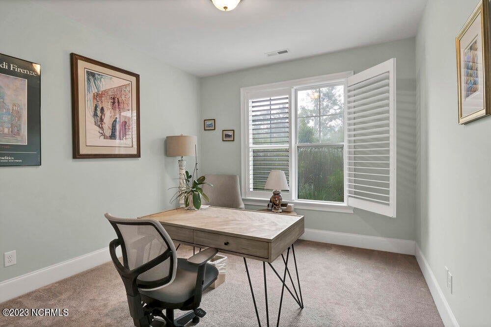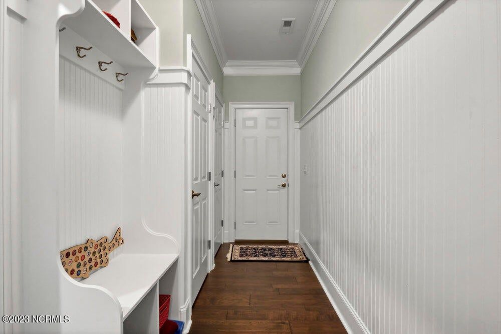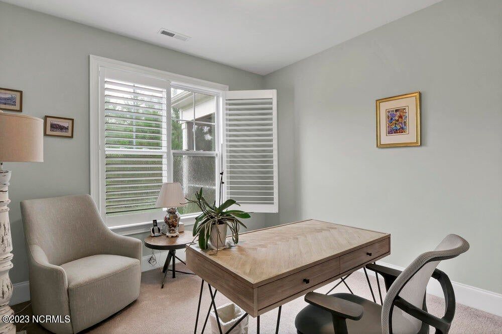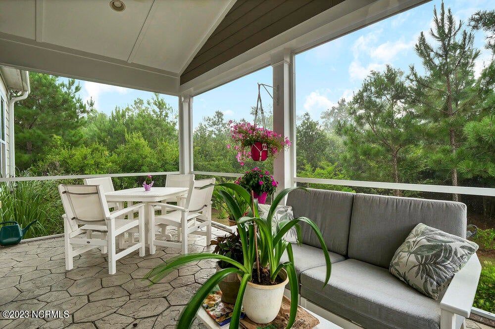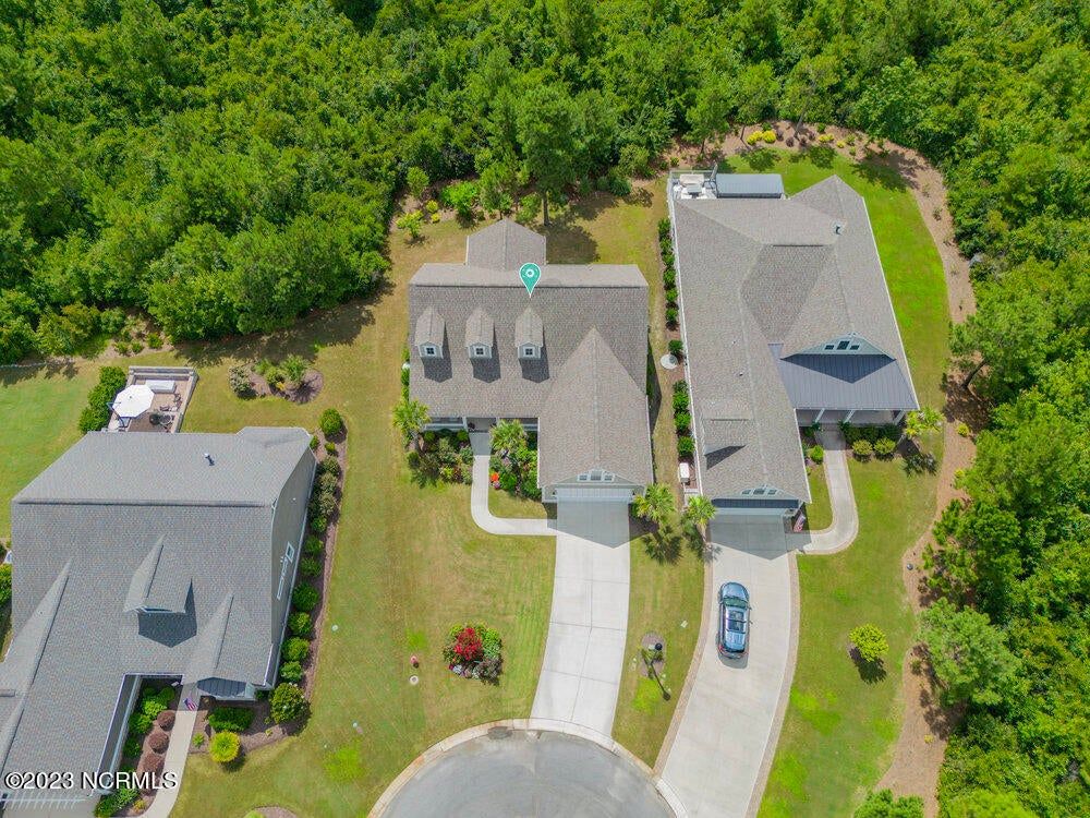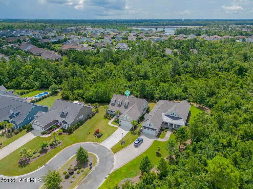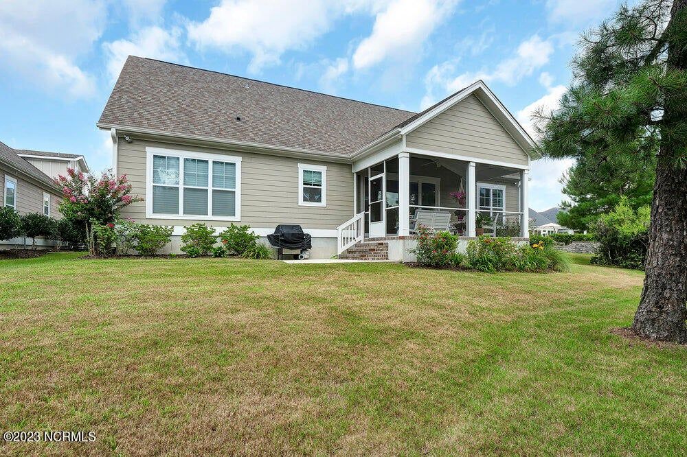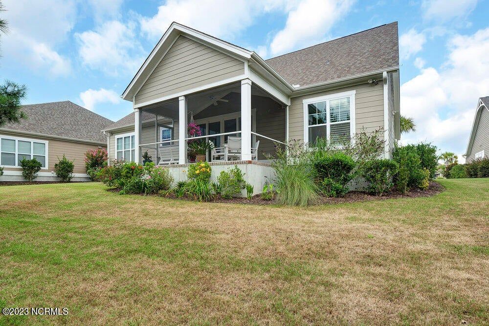 Located in the gated community of Compass Pointe, this 3 bedroom, 3 full bath home was originally built by Bill Clark Homes. It features an open floor plan with wood flooring in the main living areas. Plantation shutters and built-in shelving are some of the quality details you will find in this home. Just past the charming front porch is a home office and formal dining room with a coffered ceiling. At the center of the home is the living room and kitchen, which has a large center island, granite countertops, and a tile backsplash. Adjacent to it is a mudroom with a large drop zone and an attached laundry room. A screened porch sits off the living room. It provides access to a patio and the rear yard, which backs up to a wooded area (the property line runs through the woods). The home also has a huge walk-in attic space for storage and a dual-zone HVAC. Compass Pointe has resort-style amenities, including an 18-hole golf course, clubhouse, fitness center, indoor and outdoor pools, a lazy river, kayak/canoe launch, multiple sports courts (tennis, basketball, and pickleball), and biking and walking trails.