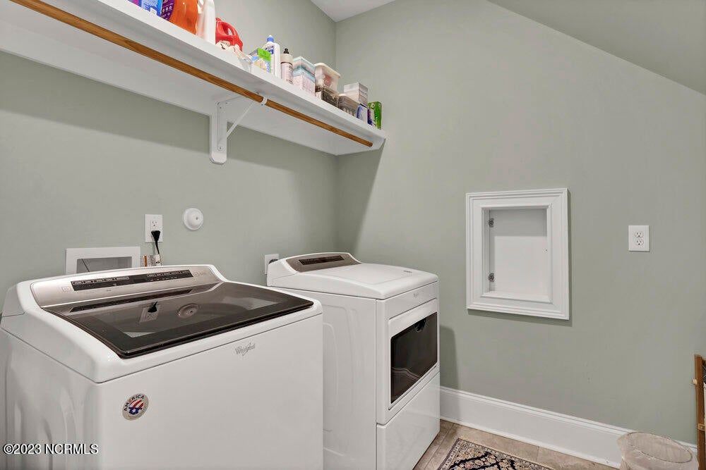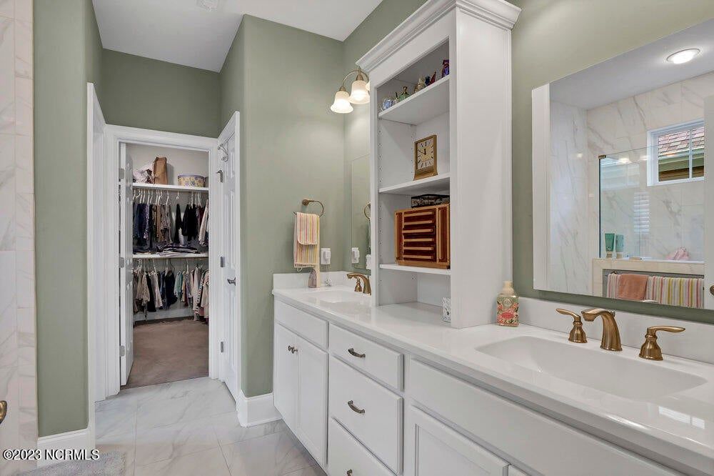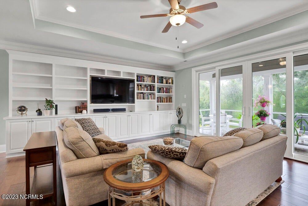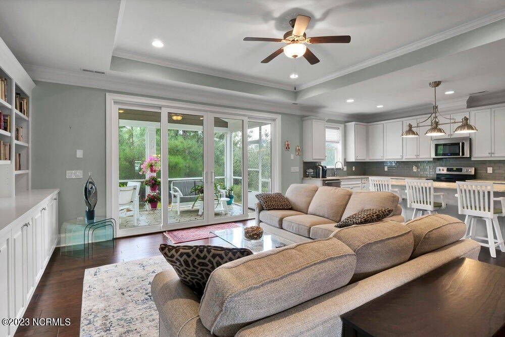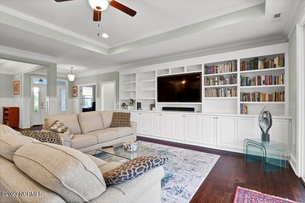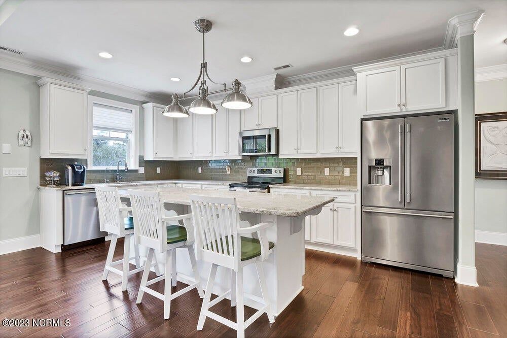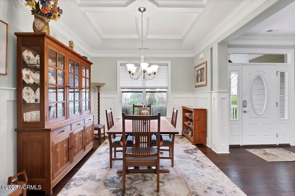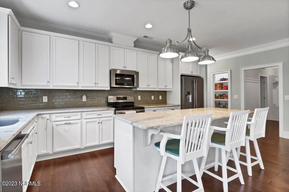 Located in the gated community of Compass Pointe, this 3 bedroom, 3 full bath home was originally built by Bill Clark Homes. It features an open floor plan with wood flooring in the main living areas. Plantation shutters and built-in shelving are some of the quality details you will find in this home. Just past the charming front porch is a home office and formal dining room with a coffered ceiling. At the center of the home is the living room and kitchen, which has a large center island, granite countertops, and a tile backsplash. Adjacent to it is a mudroom with a large drop zone and an attached laundry room. A screened porch sits off the living room. It provides access to a patio and the rear yard, which backs up to a wooded area (the property line runs through the woods). The home also has a huge walk-in attic space for storage and a dual-zone HVAC. Compass Pointe has resort-style amenities, including an 18-hole golf course, clubhouse, fitness center, indoor and outdoor pools, a lazy river, kayak/canoe launch, multiple sports courts (tennis, basketball, and pickleball), and biking and walking trails.