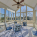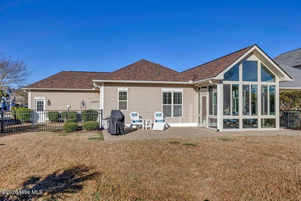 This 3 bedroom, 2 bath home in Compass Pointe offers over 1,600 sq.ft. of heated living space, a 2-car garage, and a glassed-in sunroom with a vaulted ceiling. The sunroom is not heated or cooled, but it provides a bright space to relax while overlooking the back yard. Important updates include a new roof installed in 2020 and a new water heater in 2025. The home is also equipped with a whole-house generator for added convenience during power outages. Inside, wood flooring flows from the foyer into the main living areas, complementing the open floor plan. The horseshoe kitchen features an efficient layout, a hop-up counter ideal for snack time, and an attached breakfast nook for casual dining. The living room includes a built-in bookshelf/ entertainment center that conveys with the sale. Just off the living area is a formal dining room that can also serve as an office or hobby room, depending on your needs. The primary suite features a tray ceiling, double-sink vanity, walk-in shower, garden tub, and linen closet. Two guest bedrooms and a guest bathroom are located at the front of the home, creating privacy for the primary suite. Outside, an oversized patio overlooks a landscaped back yard. Irrigation is installed in both the front and back yards. Compass Pointe offers resort-style amenities (located less than half a mile from this home), including a clubhouse, fitness center, indoor and outdoor pools, lazy river, tennis, pickleball, basketball courts, walking and biking trails, and a kayak and canoe launch. An 18-hole golf course is available with optional membership. Lawn maintenance and irrigation are included in the HOA dues.