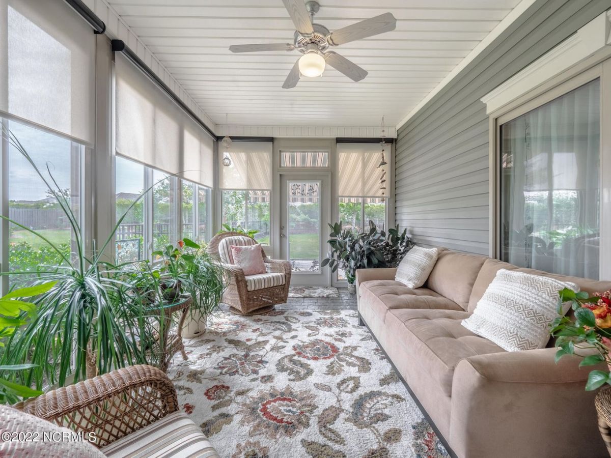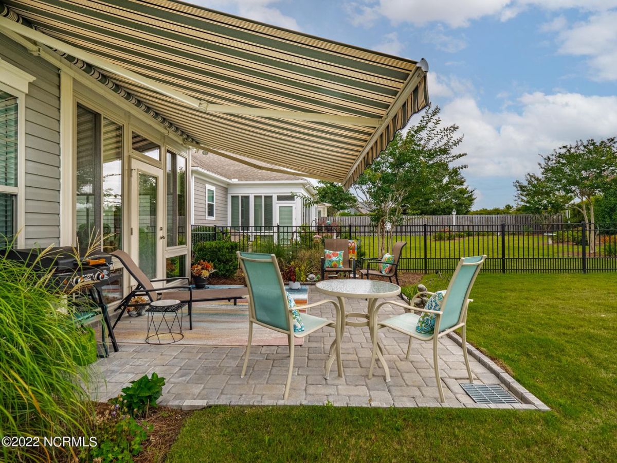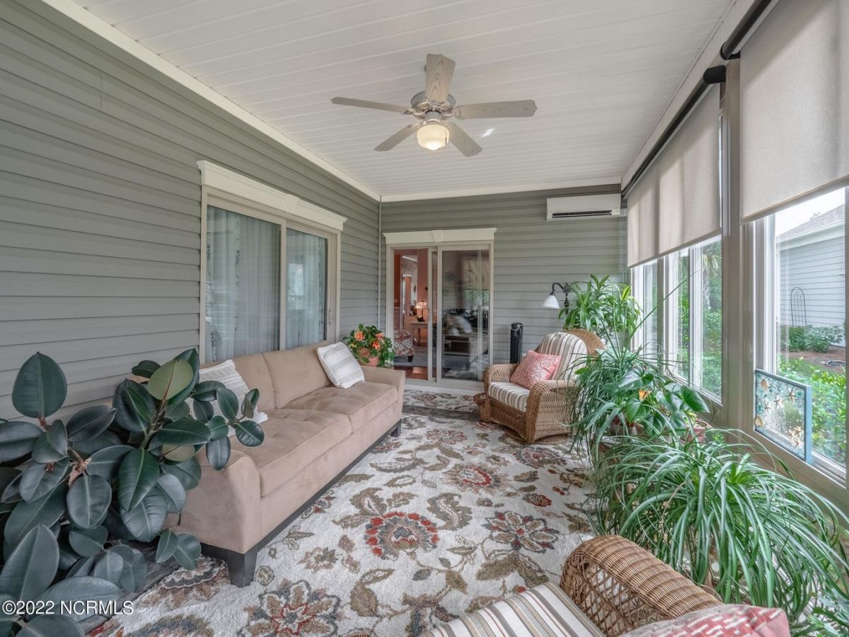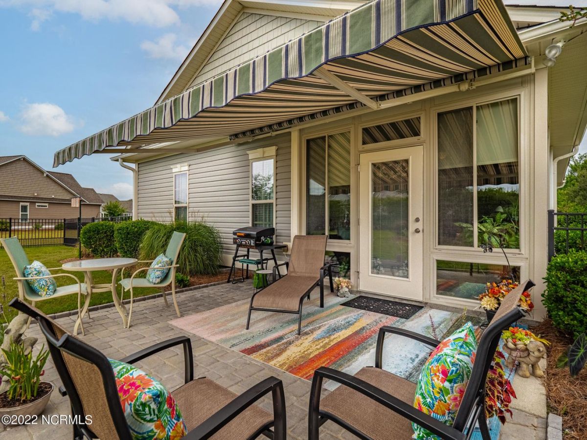 This Logan built Canterwood model has 3 bedrooms, two full baths and a heated and cooled 4 seasons Lanai off of the living area. It sits on a nice sized lot that has mature landscaping and a wooded view from the front that will never be built on. The fenced in yard is perfect for Fido and the nice sized patio with awning is perfect for relaxing. The lanai has a tile floor with custom shades to keep it cool in the summer and warm in the winter and can be accessed through the sliders from the living room or primary bed room. The primary area has two large closets, tray ceilings and a bathroom with double vanities, a garden tub and a tiled shower. There are two guest bedrooms at the front of the home with 2'' wood blinds and a guest bath with transom window. The laundry room is in the hall closet and includes the washer and dryer. The kitchen, living and dining area is open and spacious with bar seating, stain-glass pendants, granite counter tops, a solar tube, custom back splash, gas stove top and includes the Samsung refrigerator. The two gar garage has shelves that will remain. Generator will also convey. This home is in the Cottages neighborhood by the first entrance and is walking distance to the Grand Lanai, indoor and outdoor pools, tennis and pickle ball courts and the wellness center.