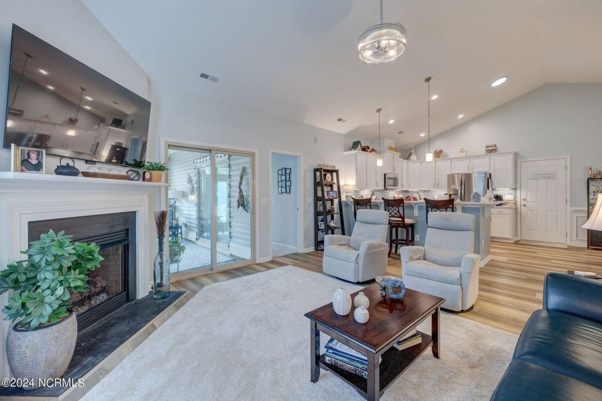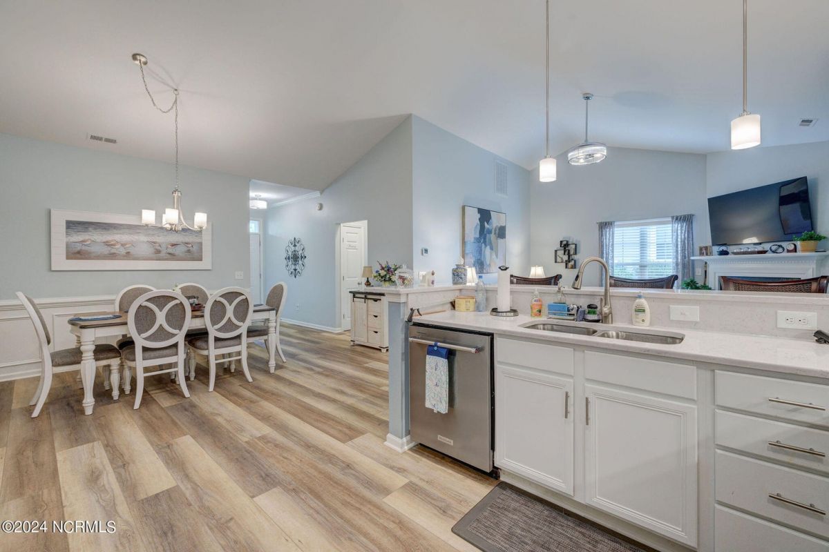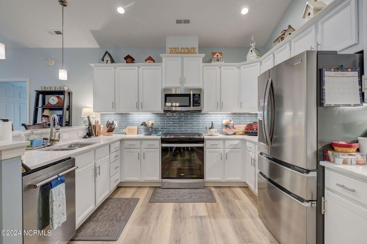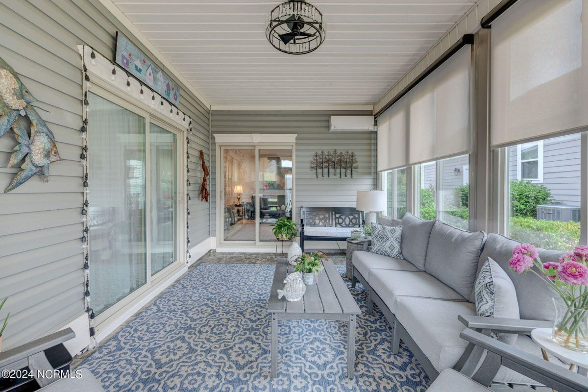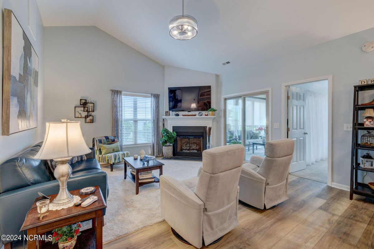 This Logan built Canterwood model has 3 bedrooms, two full baths and a heated and cooled 4 seasons Lanai. It boasts new paint, flooring, dishwasher, refrigerator, and quartz countertops that are less than two years old. It sits on a nice sized lot with mature landscaping and a fenced in yard ithat is large enough for a garden, pool, or storage shed and your pup. The patio with awning is perfect for relaxing and entertaining guest. The lanai has a tile floor with custom shades to keep it cool in the summer and warm in the winter and can be accessed through the sliders from the living room or primary bed room. The primary suite has two large closets, tray ceilings and a bathroom with double vanities, a garden tub and a tiled shower. There are two guest bedrooms at the front of the home with a guest bath with transom window. The laundry room is in the hall closet and includes the washer and dryer. The kitchen, living and dining area is open and spacious with bar seating, quartz counter tops with custom back splash, gas stove top and includes the refrigerator. The two car garage has shelves that will remain. This home is in the Cottages neighborhood by the first entrance and is in walking distance to the Grand Lanai, indoor and outdoor pools, tennis and pickle ball courts and the wellness center. Come see this gem and the resort style lifestyle that Compass Pointe has to offer.