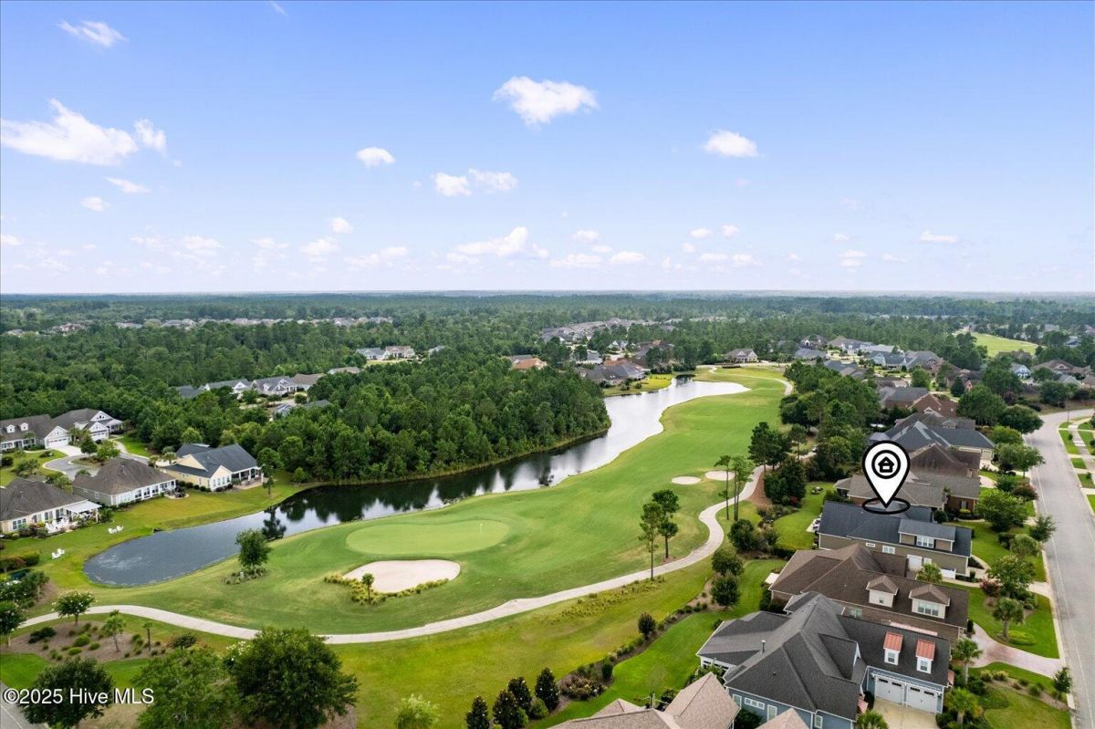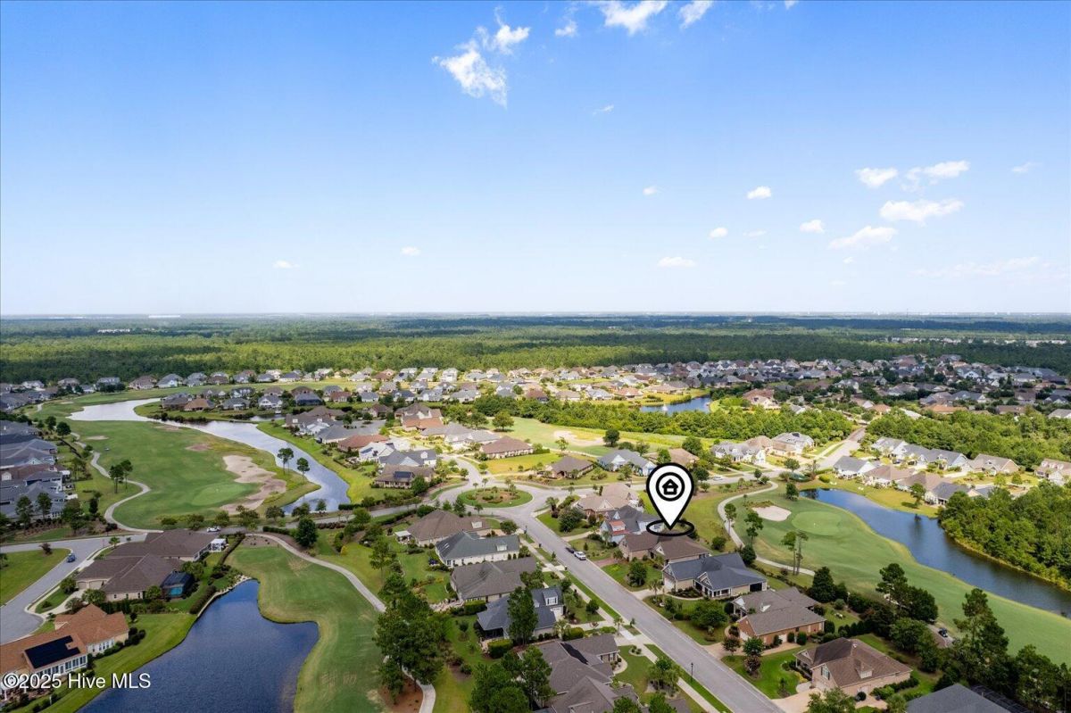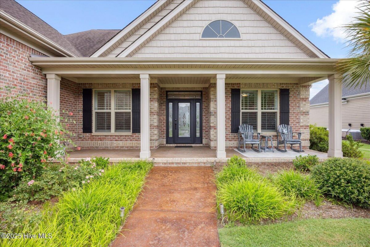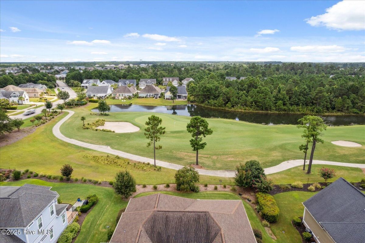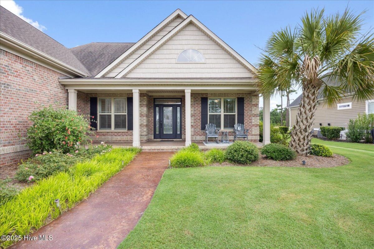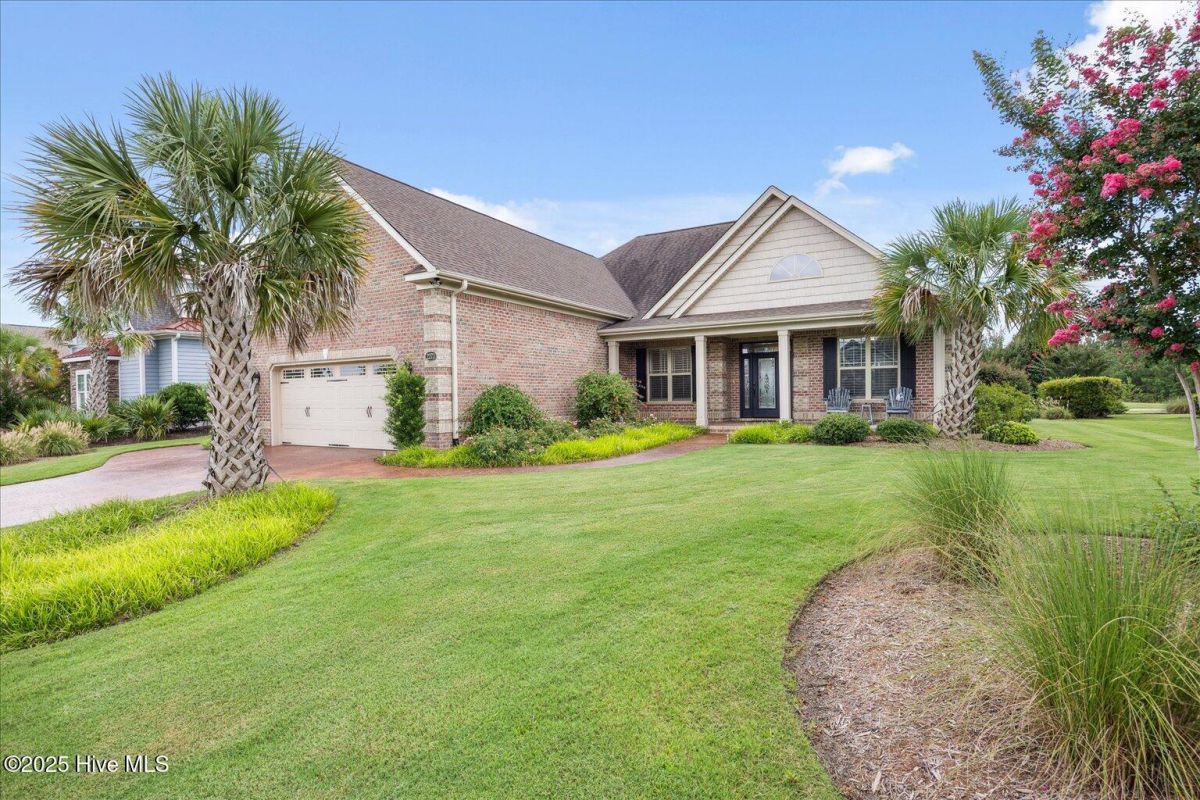 This stunning home located on the golf course in Compass Pointe is a must see! You will appreciate the level of detail in this home, starting with the curb appeal. The driveway is custom stained and the landscaping is enhanced. The front porch has a stamped concrete pattern and as you step through the front door, you will immediately notice all of the natural light and upgrades that this home offers. The living room has a vaulted coffered ceiling and is anchored by a grand fireplace and symmetrical bookcases. The open floorplan leads you the kitchen, which has ample cabinet space, gorgeous countertops, a tile backsplash, two ovens and a large double door pantry. If you enjoy entertaining, this house is perfect for that with barstool seating at the kitchen island, a spacious dining area and perhaps the best room in the house, the huge sunroom offering panoramic views of the golf course. There is no carpet on the first floor, the primary bedroom is oversized and can accommodate all of your furniture. The primary suite features two walk in closets, two vanities and a gorgeous custom tile shower. Also on the first floor, there are two more guest rooms, one is very private and the other is utilized currently as a really nice office. While no one enjoys laundry, the laundry room in this house will make it more enjoyable, there is ample storage, a sink and a large folding table. Upstairs is the huge 4th bedroom/bonus room, complete with a full bath and if you need storage, be sure to check out the walk in attic. For those of you who have hobbies, you will love the oversized garage, there is plenty of room for a work bench, storage and there is even a separate golf cart door. This house truly checks all of the boxes, come explore for yourself, and become a resident in one of the nicest communities in coastal NC. Compass Pointe residents enjoy resort style amenities including multiple pools and a lazy river, a fitness center and there is a golf course you can join.