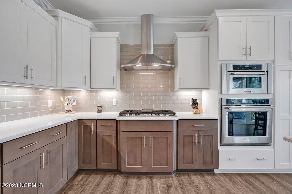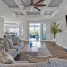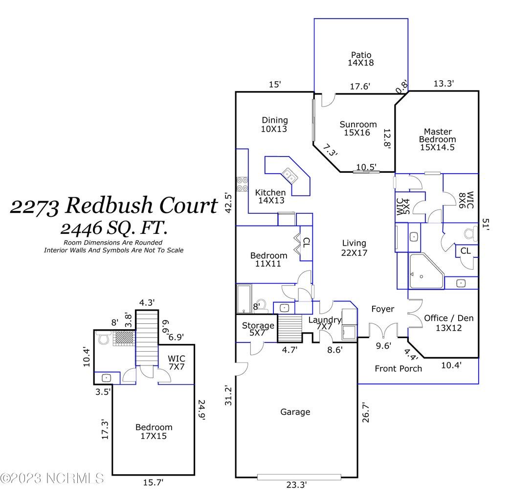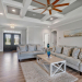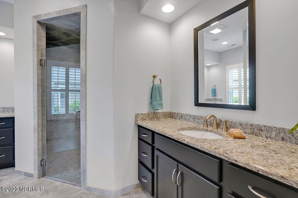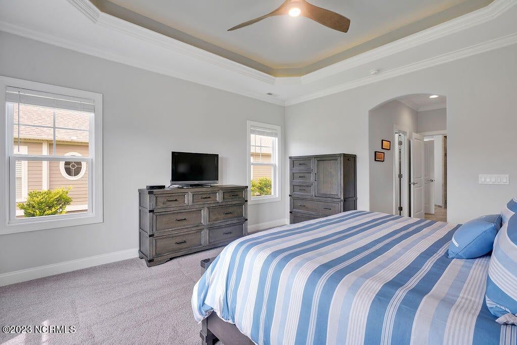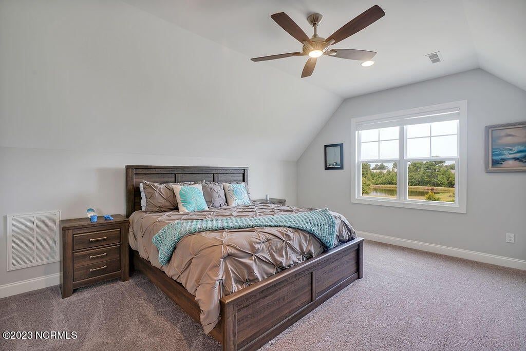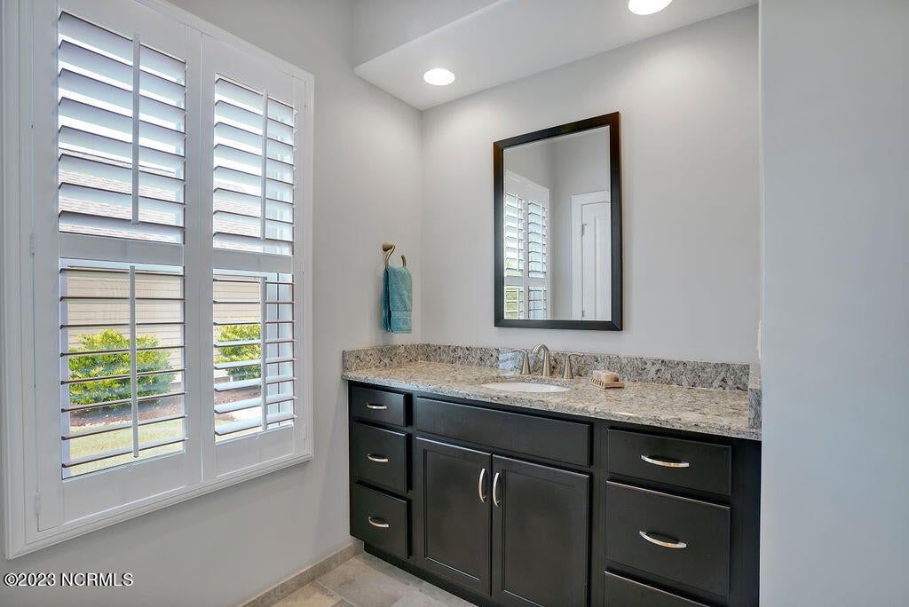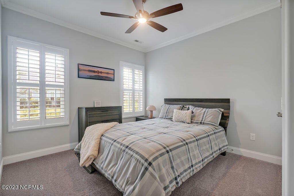 Beautiful 3 bedroom / 3 bath Trusst built home in Hammocks Cove in Compass Pointe. Enjoy pond views and stunning sunsets from the front covered porch, then enter the front of the house into the foyer through an ornate front door finding Luxury Vinyl floors in the foyer and an open format main living room. To the right of the foyer are French glass doors that enter a spacious office/den area. Re-enter the living room area and enjoy the view of the coffered ceiling, built in bookcases, gas log fireplace all while enjoying music on the overhead sound system. Proceed further through the open space living room area then on the left view a culinary kitchen with island with bar seating for 6, with a separate open dining area nearby with trayed ceiling, chandelier, and plantation shutters. Then observe sliders that connect both the dining area and open living room area to an enclosed sunroom. The sunroom faces and opens into the manicured backyard with patio where you experience glorious sunrises. The primary suite, located on the main level, is enhanced with an illuminated trey ceiling, two walk-in closets, and a zero entry fully tiled frameless shower. Also found on the main level is a second bedroom with a double door closet, and a guest bathroom with granite vanity. Upstairs you will find the third bedroom with a full bath and access to abundant attic storage space. Back on the main level follow a hallway from the living area to the laundry room that leads into an oversized 2 car garage with epoxy painted floor and a separate storage area. Enjoy all this in the gated community of Compass Pointe with all its amenities and golf course. Easy drive to Leland/Wilmington shopping and restaurants and local area beaches via nearby 74/76.