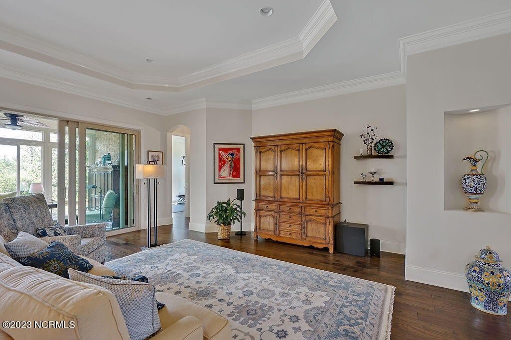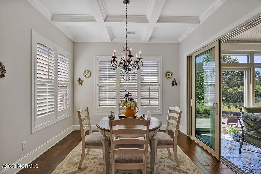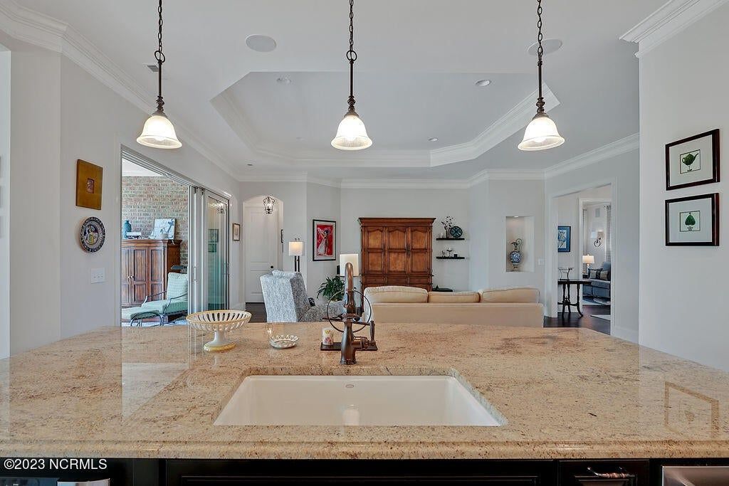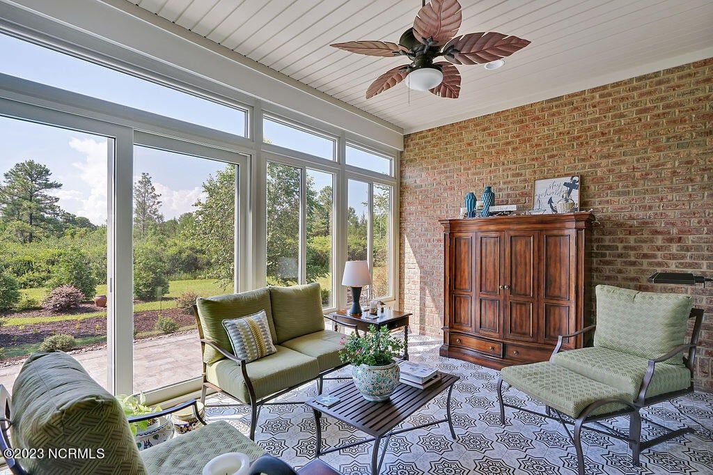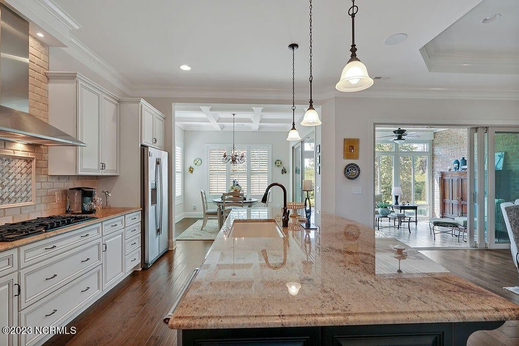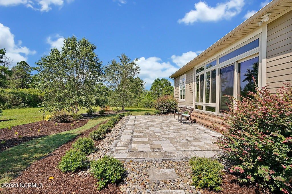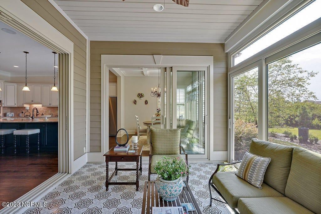 This beautiful home is designed to relax, unwind, and entertain. Every architectural detail blends elegance and functionality. Enjoy serene privacy with open space on three sides and views of nature and a pond. An elongated garage allows for two cars and tandem parking of a golf cart! Natural light moves through the home throughout the day starting with sunrise views from the lanai and ending with magnificent unobstructed sunset views in the evening. This one-of-a-kind one-level floorplan has an Inviting foyer, open gourmet kitchen and great room, formal dining room and breakfast nook, three bedrooms, two baths, WIC, media room/office, glassed-in four season lanai (not incl in total sq ft), laundry and a garage that Is extended 12' 5'' giving space for a workshop, golf cart and tons of storage. Showcased is a dream kitchen with 5 burner Bosch gas cooktop, 72'' counter depth Jenn Air refrigerator, double oven, drawer-style microwave, 9 ft Island with porcelain sink and the convenience of a second utility sink. There is storage galore with a pantry, 42'' overlay upper cabinets, extra lower cabinet drawers, and extra space for appliances, over-sized plates and utensils. The hood area has downlighting that is modern and timeless. In every room you will sense the beauty of fine quality materials used in flooring, molding, cabinetry, granite, designer tile, 8 ft solid core doors, mahogany entry door and ceiling details (coffered/trey). The gas fireplace in the media room creates a focal point perfect for holiday entertaining. Music fills the air through a centralized sound system and ceiling speakers, watch movies with 5.1 surround sound in the media room, feel the ambience of custom lighting throughout including lighted niches and soft sconce lighting. Multislide doors from the lanai to the great room and nook expand this smooth floor plan. Step outside the lanai to an upscale paver patio surrounded by sophisticated landscaping combined with a private nature view.