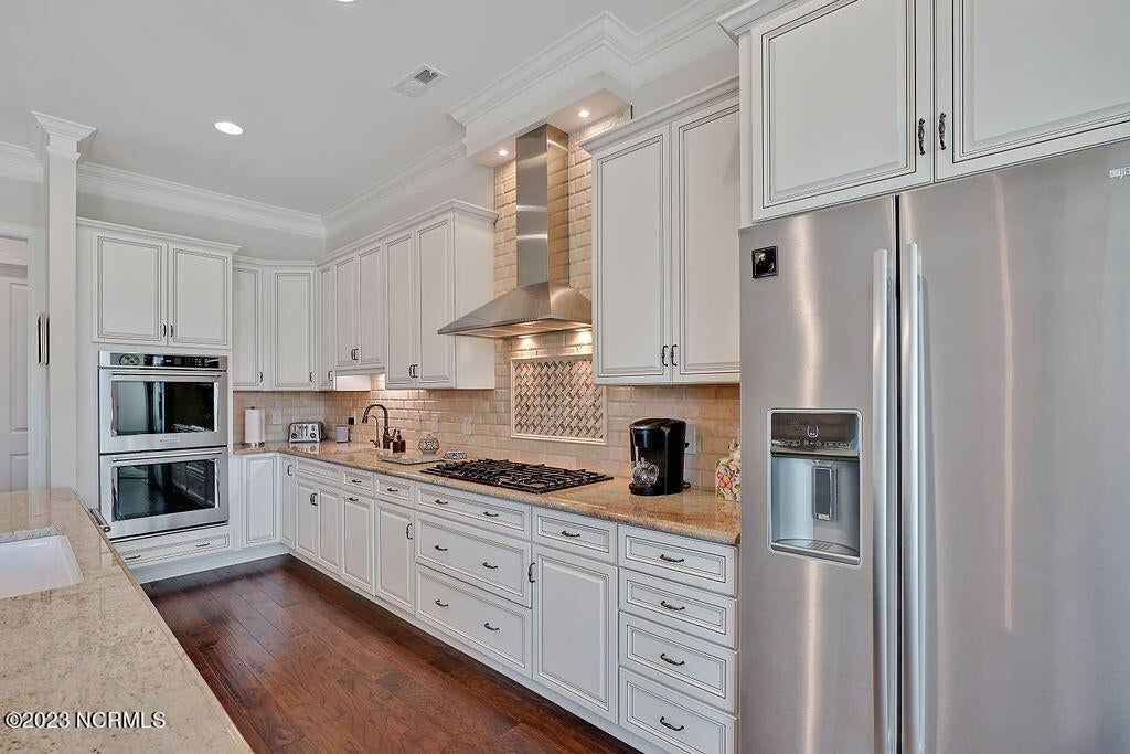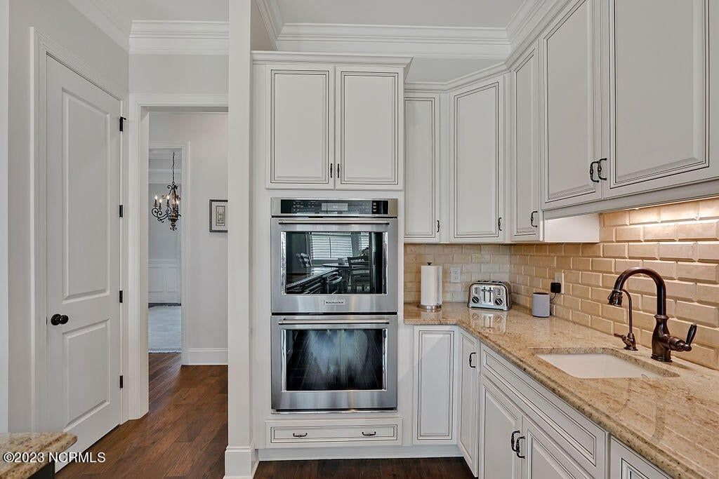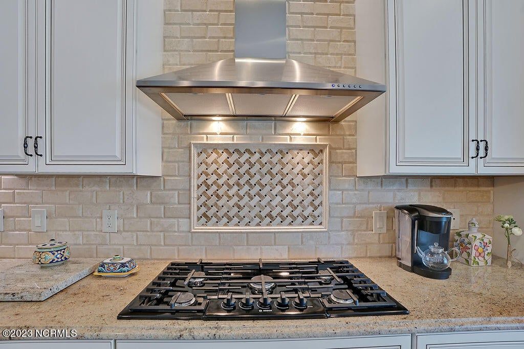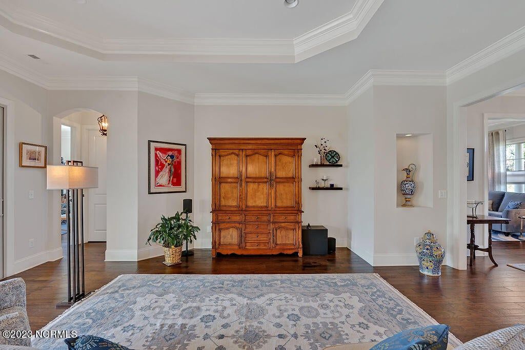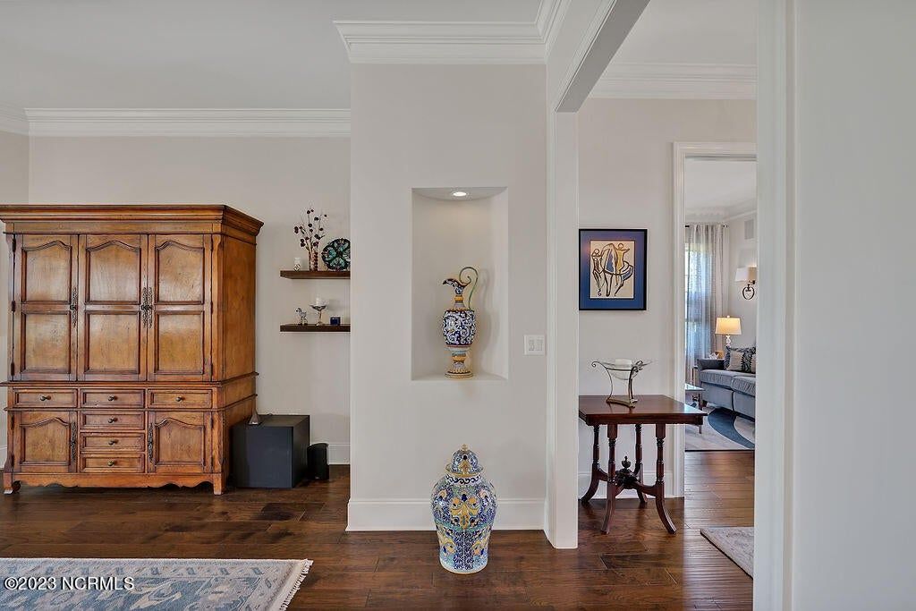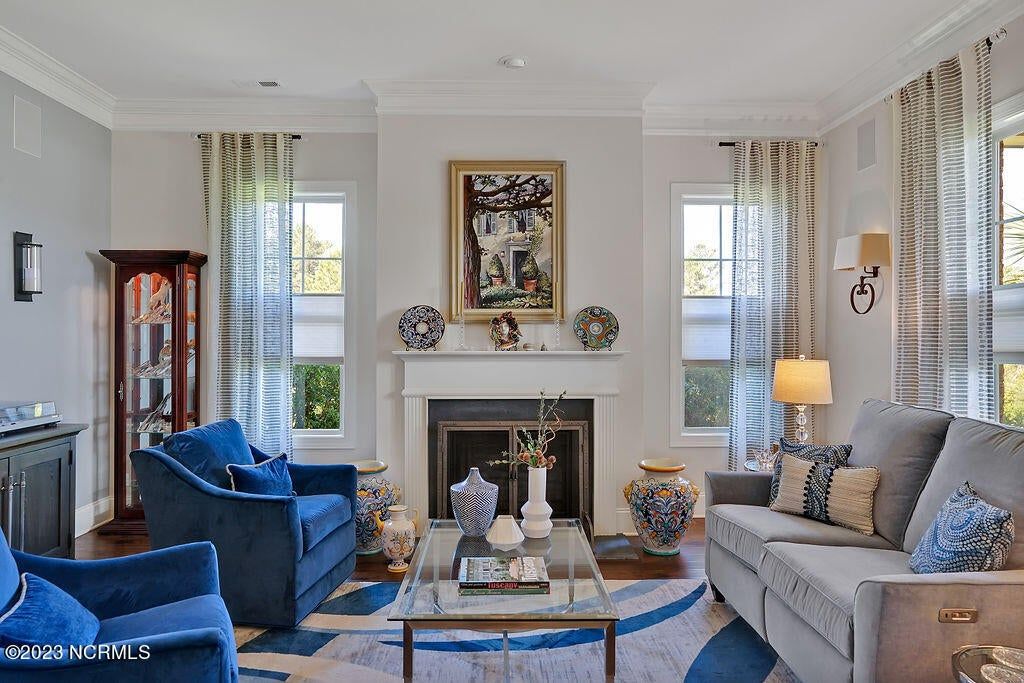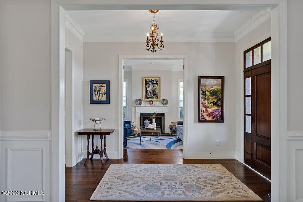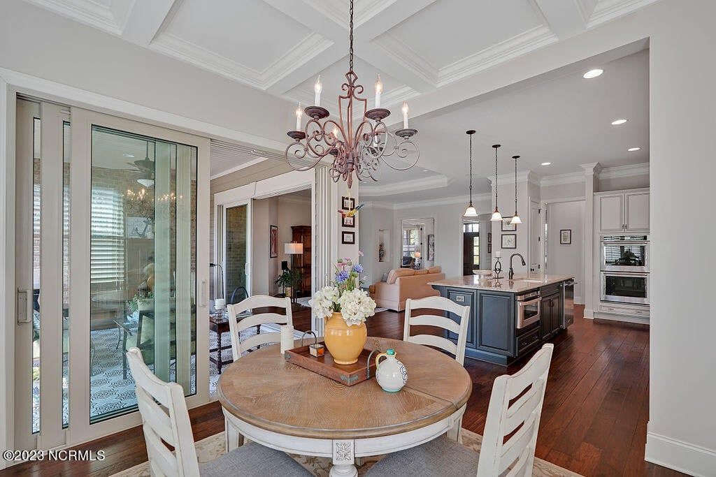 This beautiful home is designed to relax, unwind, and entertain. Every architectural detail blends elegance and functionality. Enjoy serene privacy with open space on three sides and views of nature and a pond. An elongated garage allows for two cars and tandem parking of a golf cart! Natural light moves through the home throughout the day starting with sunrise views from the lanai and ending with magnificent unobstructed sunset views in the evening. This one-of-a-kind one-level floorplan has an Inviting foyer, open gourmet kitchen and great room, formal dining room and breakfast nook, three bedrooms, two baths, WIC, media room/office, glassed-in four season lanai (not incl in total sq ft), laundry and a garage that Is extended 12' 5'' giving space for a workshop, golf cart and tons of storage. Showcased is a dream kitchen with 5 burner Bosch gas cooktop, 72'' counter depth Jenn Air refrigerator, double oven, drawer-style microwave, 9 ft Island with porcelain sink and the convenience of a second utility sink. There is storage galore with a pantry, 42'' overlay upper cabinets, extra lower cabinet drawers, and extra space for appliances, over-sized plates and utensils. The hood area has downlighting that is modern and timeless. In every room you will sense the beauty of fine quality materials used in flooring, molding, cabinetry, granite, designer tile, 8 ft solid core doors, mahogany entry door and ceiling details (coffered/trey). The gas fireplace in the media room creates a focal point perfect for holiday entertaining. Music fills the air through a centralized sound system and ceiling speakers, watch movies with 5.1 surround sound in the media room, feel the ambience of custom lighting throughout including lighted niches and soft sconce lighting. Multislide doors from the lanai to the great room and nook expand this smooth floor plan. Step outside the lanai to an upscale paver patio surrounded by sophisticated landscaping combined with a private nature view.