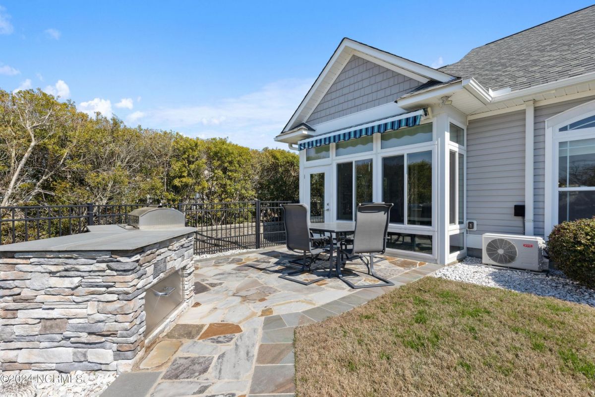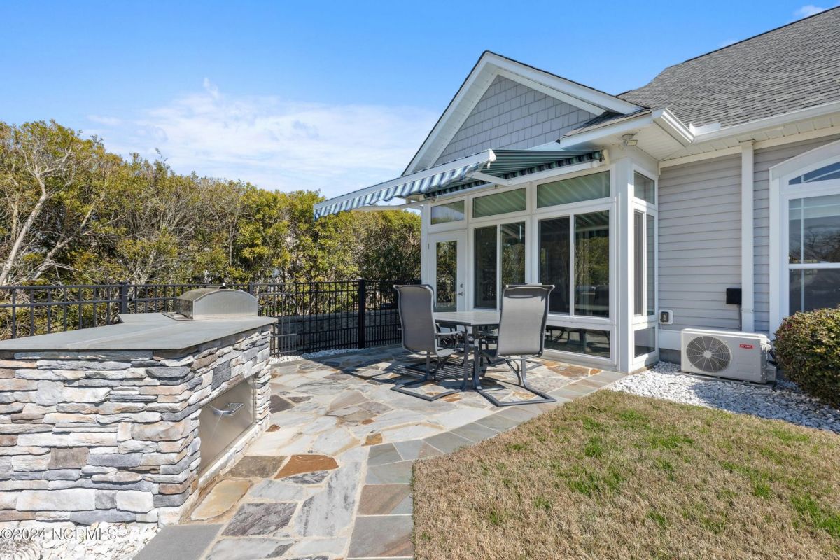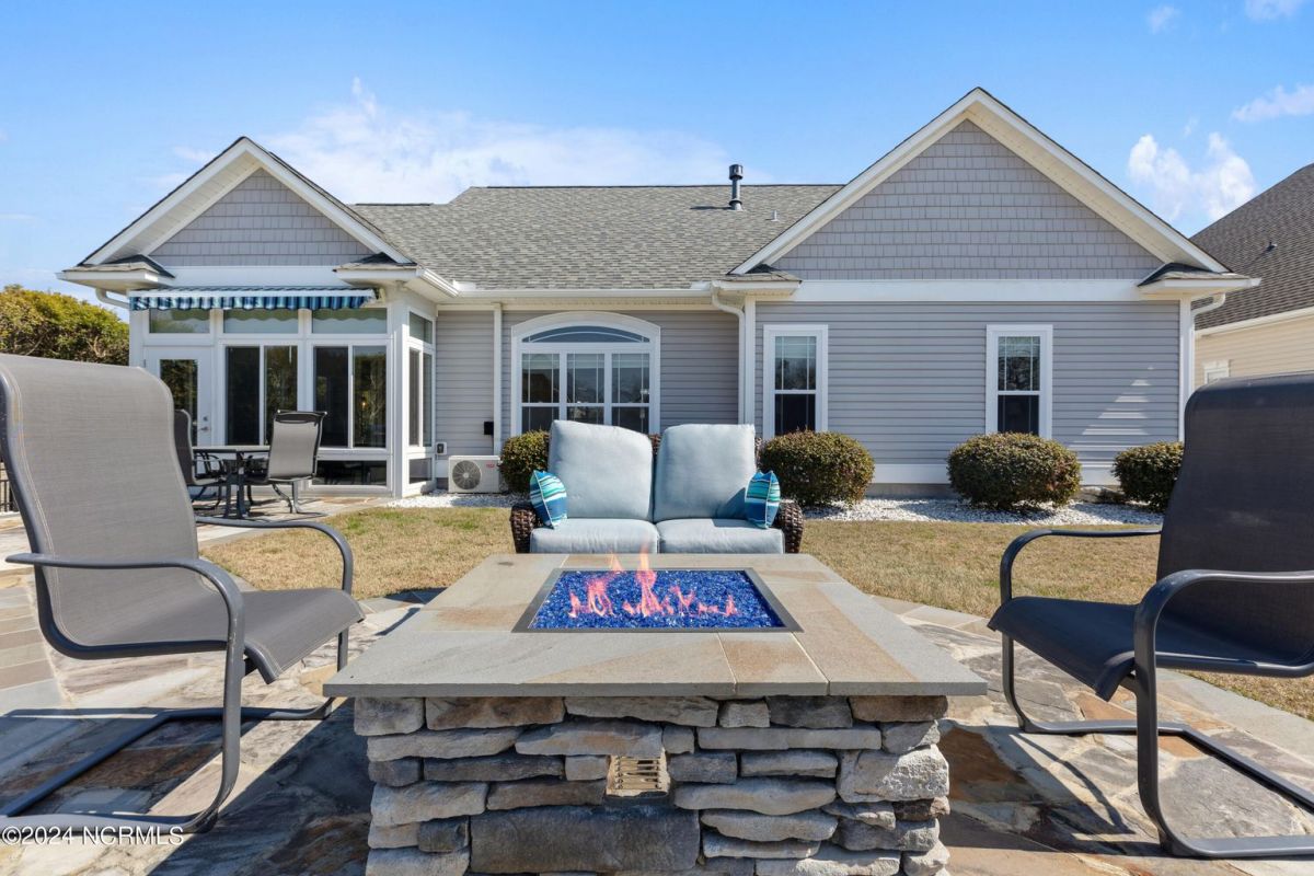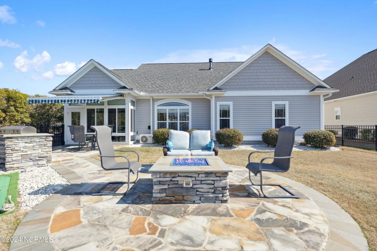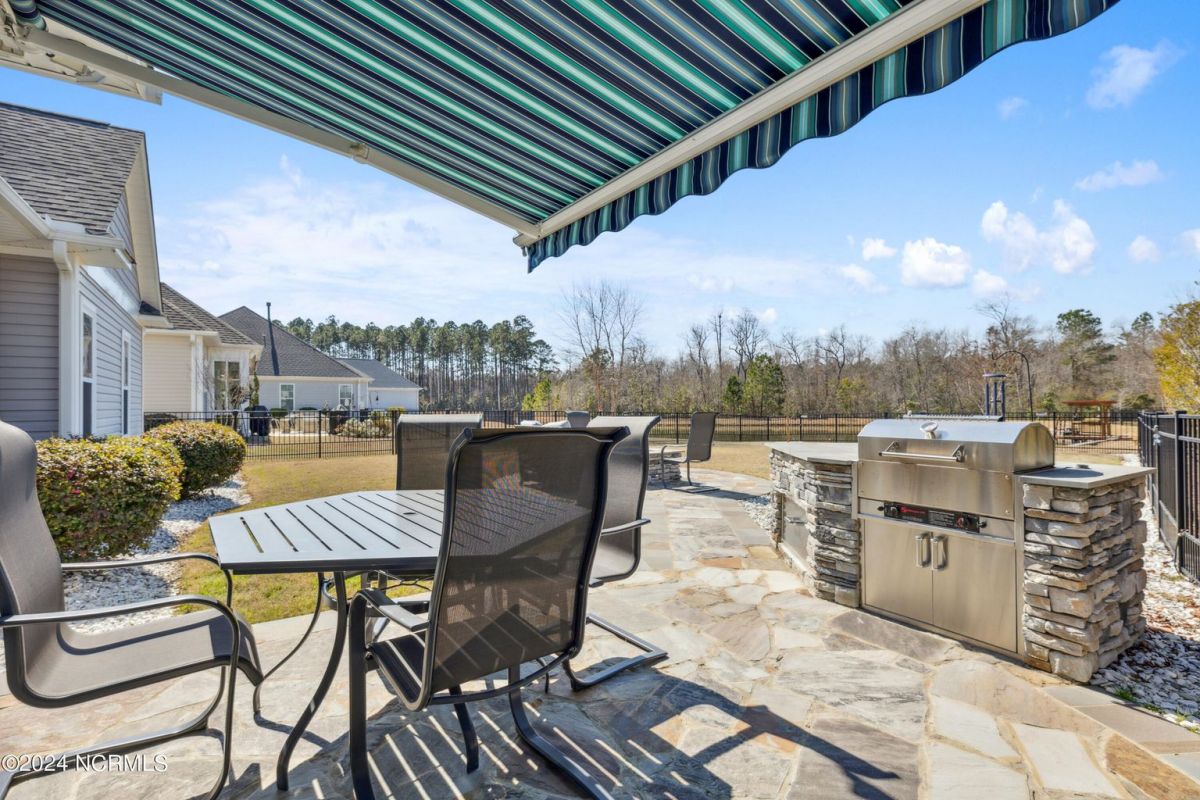 Enjoy endless gorgeous sunsets in your new home located in the prestigious Compass Pointe community. The kitchen is a cook's dream with quartz countertops and designer backsplash with a large kitchen island and seating for three. The fenced in backyard boasts an outdoor stone kitchen with an on-demand propane grill, and a stone patio to a propane fire pit. The patio also features a custom motorized awning with panoramic pond views. A four-season heated and air-conditioned lanai is located between the kitchen and fenced-in backyard and features a telescoping sliding door. panoramic pond view. Once inside you a wide open living space with living room with a propane fireplace, den and dining area with hardwood floors throughout. The primary suite features a genrously sized walk-in closet with wooden shelving and a tile shower. Built in 2015 this home boasts plenty of important updates including a whole house Generac generator, a new water heater in 2023, whole house surge protection, reverse osmosis water filtration system, and a recently installed Trane HVAC system with a whole home clean air filtration system.