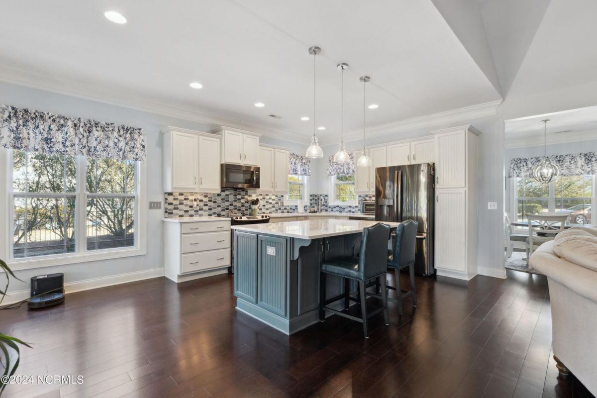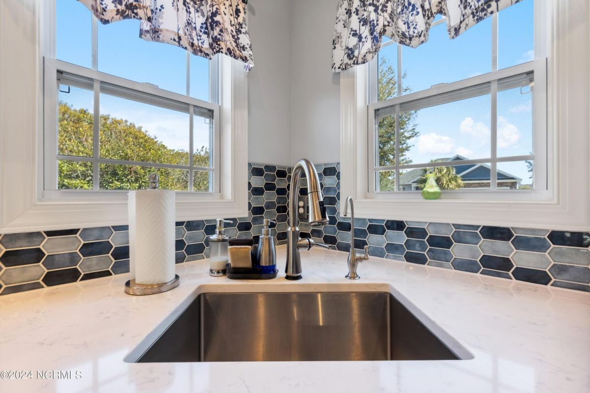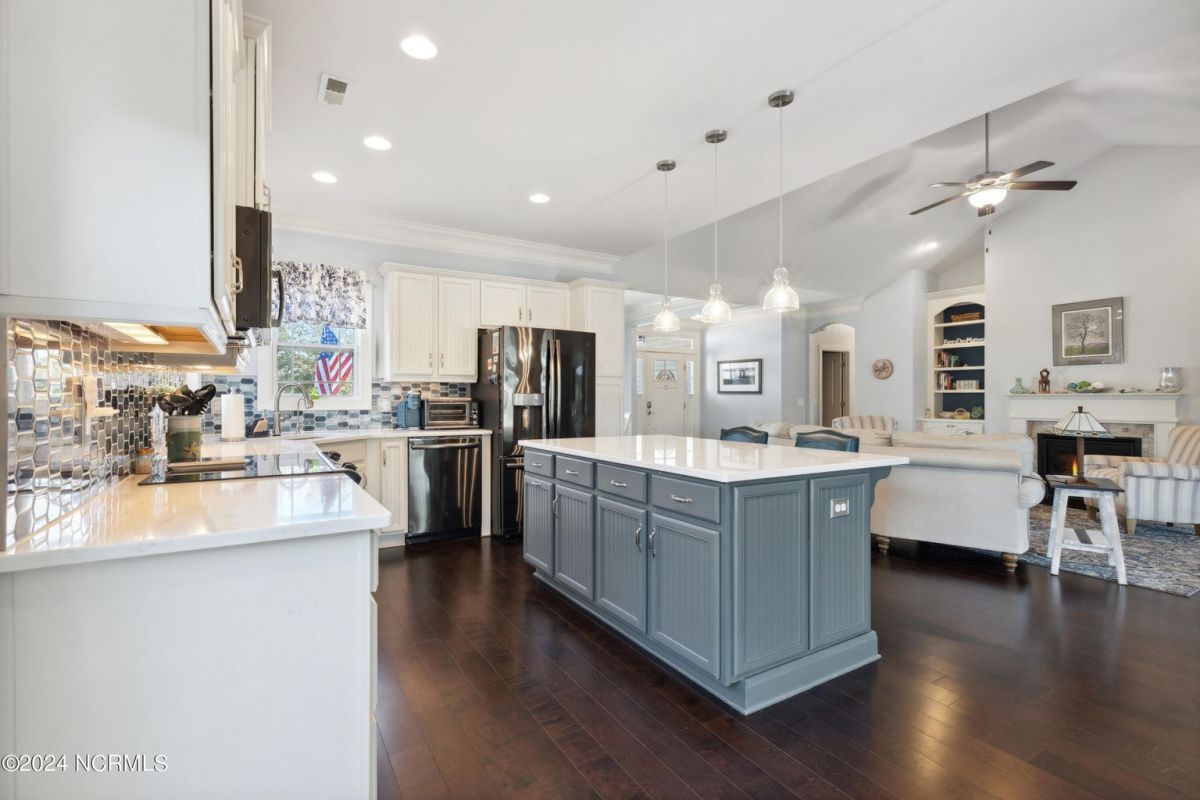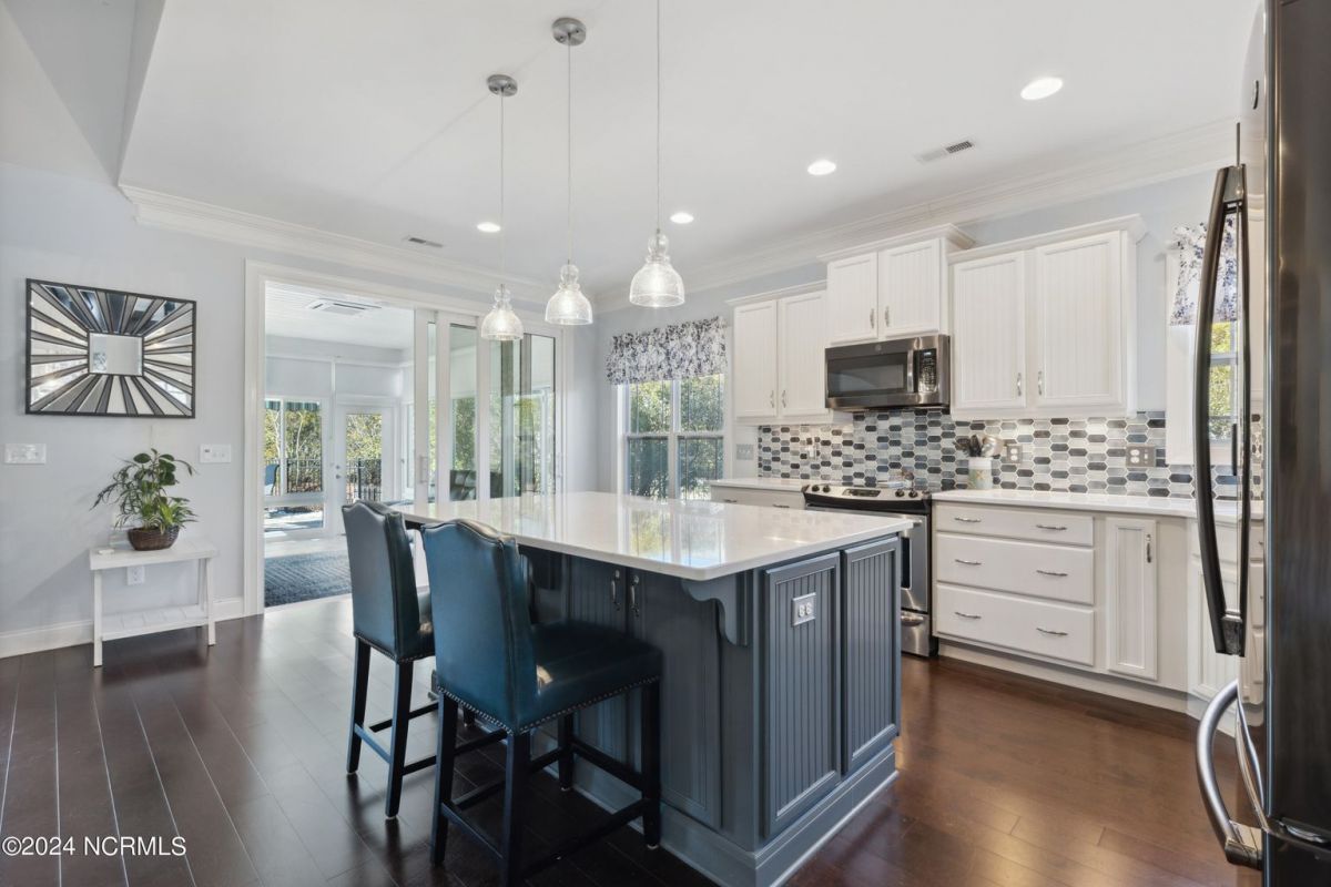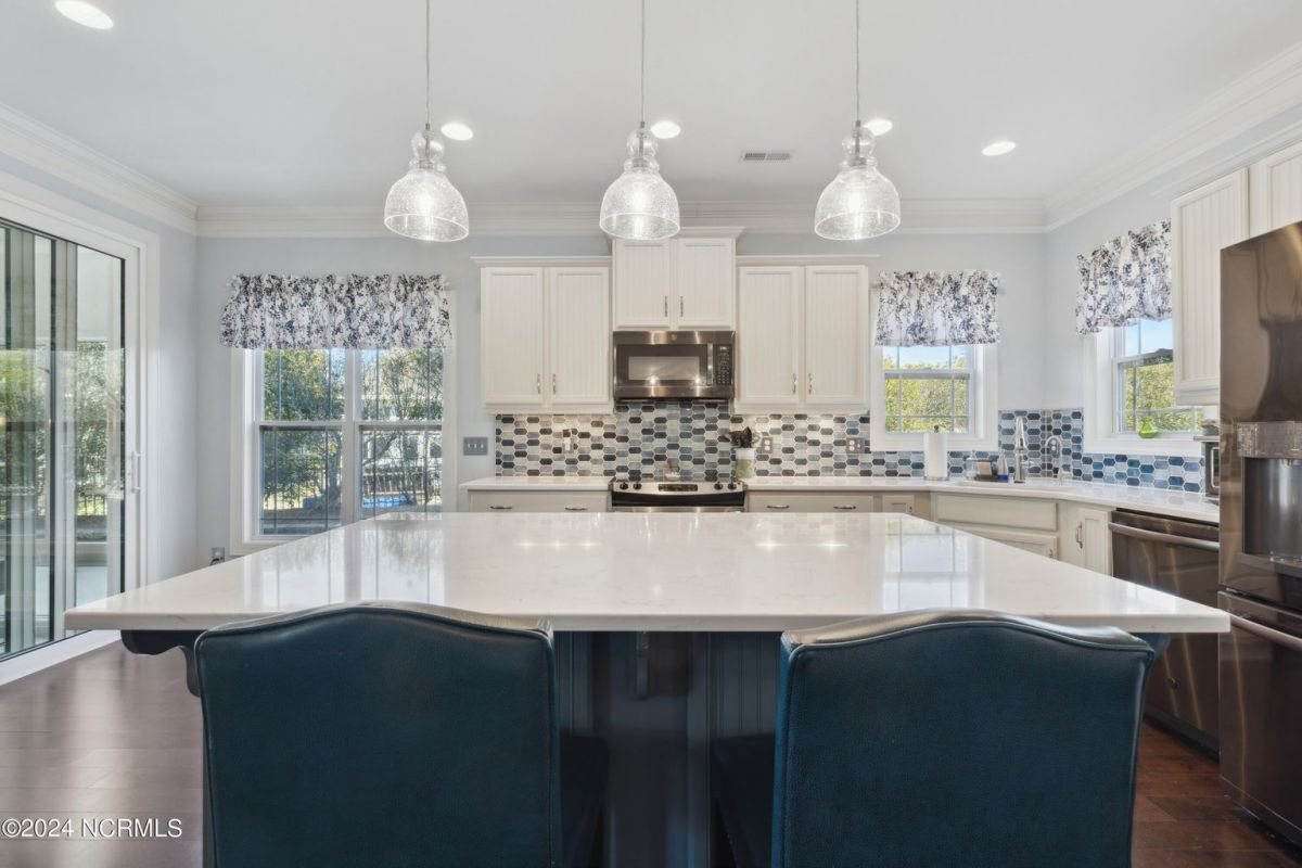 Enjoy endless gorgeous sunsets in your new home located in the prestigious Compass Pointe community. The kitchen is a cook's dream with quartz countertops and designer backsplash with a large kitchen island and seating for three. The fenced in backyard boasts an outdoor stone kitchen with an on-demand propane grill, and a stone patio to a propane fire pit. The patio also features a custom motorized awning with panoramic pond views. A four-season heated and air-conditioned lanai is located between the kitchen and fenced-in backyard and features a telescoping sliding door. panoramic pond view. Once inside you a wide open living space with living room with a propane fireplace, den and dining area with hardwood floors throughout. The primary suite features a genrously sized walk-in closet with wooden shelving and a tile shower. Built in 2015 this home boasts plenty of important updates including a whole house Generac generator, a new water heater in 2023, whole house surge protection, reverse osmosis water filtration system, and a recently installed Trane HVAC system with a whole home clean air filtration system.