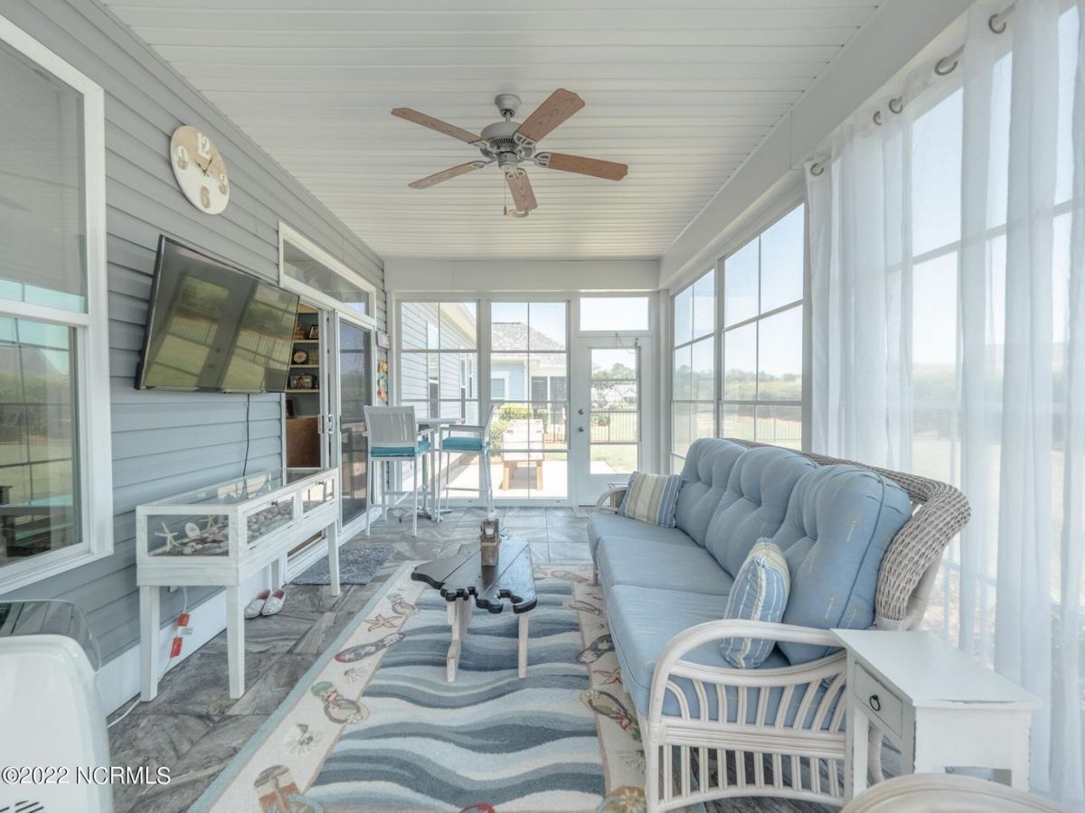 This Heritage built Springfield model has 3 bedrooms, two baths and a great EZ Breeze sunroom off of the living area. It is located in the established neighborhood of the Cottages located in Compass Pointe and is within walking distance to the amenities center. It sits on a nice, spacious corner lot and has a fenced in backyard for Fido. Inside you will find a foyer with a door to the 2-car garage. a large, open living area with a display nook, built in cabinets and shelves, and trey ceilings with lighting. The dining area is spacious with the trey ceiling and lighting as well. The kitchen is separated from the dining area by a tall bar with seating that connects to a counter height space for prepping. The cabinets are a beautiful light wood color and many of them. The master suite entrance door has transom windows above it, a large bedroom, bath with tile shower and glass doors, double vanities, a garden tub with big window and a water closet. There are 2 guest bedrooms (one could be used as an office or den), a guest bath and a laundry room down the hall from the entry foyer. Many extras include lovely kitchen back splash, a central vacuum system, dimmers on some of the lights, large patio off the Lanai, window shades, crown molding recessed lighting and a beautifully manicured yard. Come see this one before it is gone! Washer/Dryer and Refrigerator convey. TV in living room does not convey.