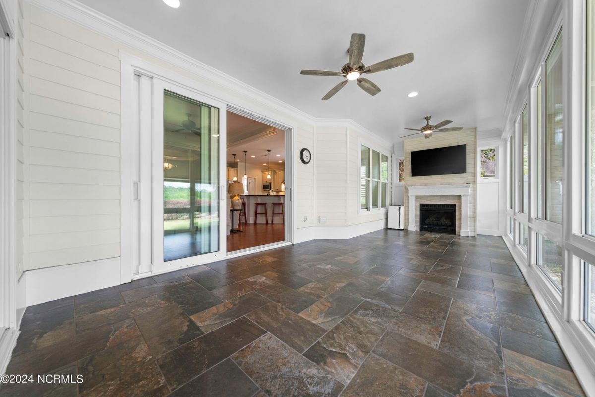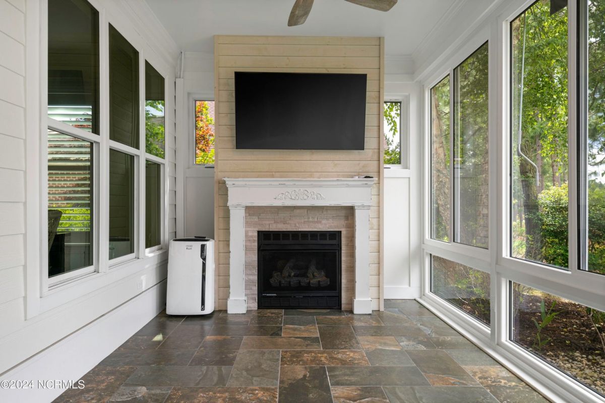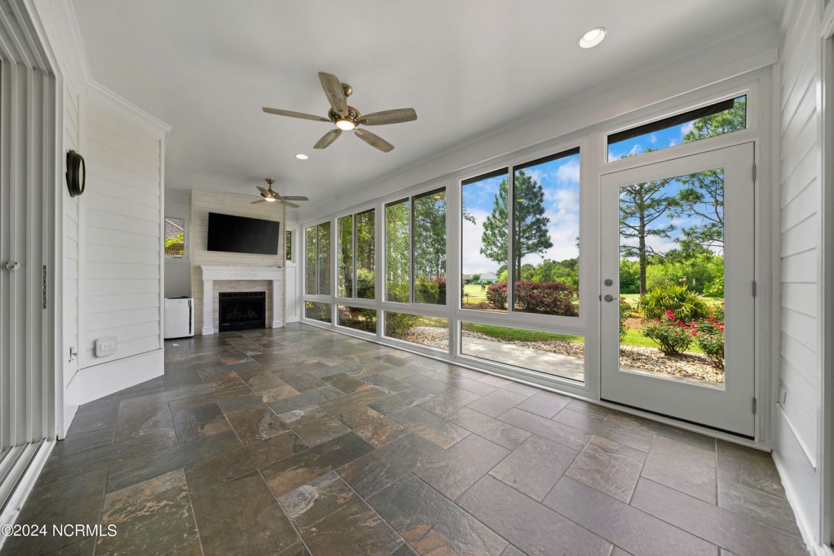 This custom-built home is a must to see. It has a spectacular setting overlooking the 8th hole of The Compass Pointe Golf Course. This gated community is extremely sought after and is rich in ammenities. The rear of the lot has panoramic views of the course along with a private wooded area beyond. The first thing you will notice is the expansive wrap-around porch. This 3/4 bedroom, 3 bathroom home has a very open concept. Upgraded kitchen cabinets, under cabinet lighting, custom, tile backsplash, SS appliances including washer & dryer & a brand new refrigertor. There is also a office with double, glass french doors . 4 Smart TVs will remain with the home. Tray ceilings in the LV, DR & Primary bedroom, Plantation Shutters are on most of the windows. The large lanai has been completly enclosed with windows and they have added a 2nd gas fireplace. A portable AC & Heat unit will remain. This adds an addtional 275 feet to the sq ft making the total square feet 2480. New 14 x 10 Shed. Relax on the spacious patio overlook the lovely yard and course. The patio has a large, remote controlled awning for shade and is set in a very peaceful setting. This home is not to be missed.