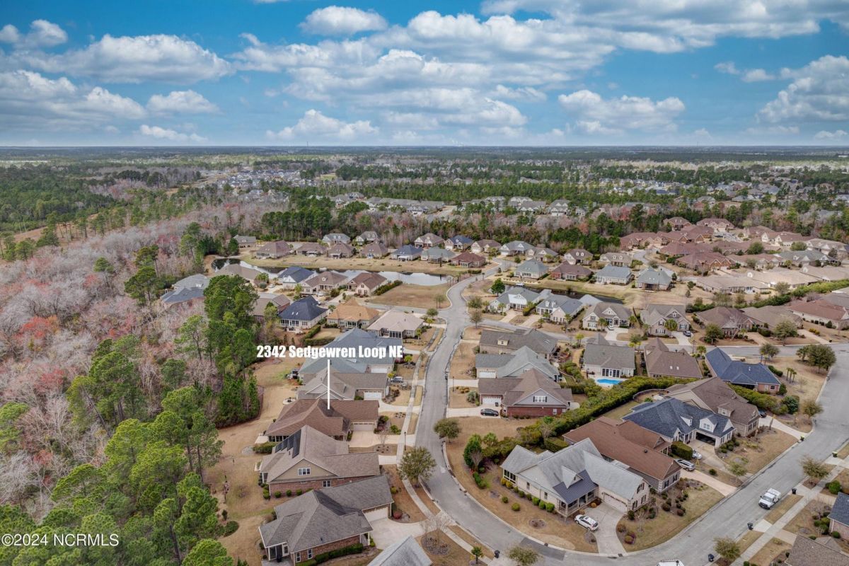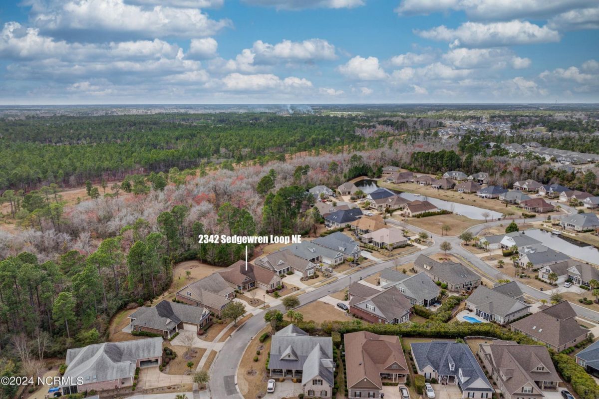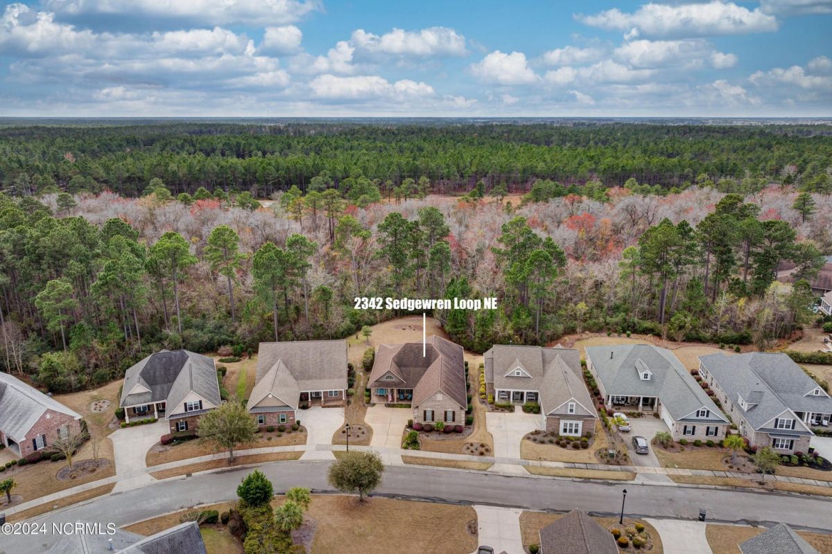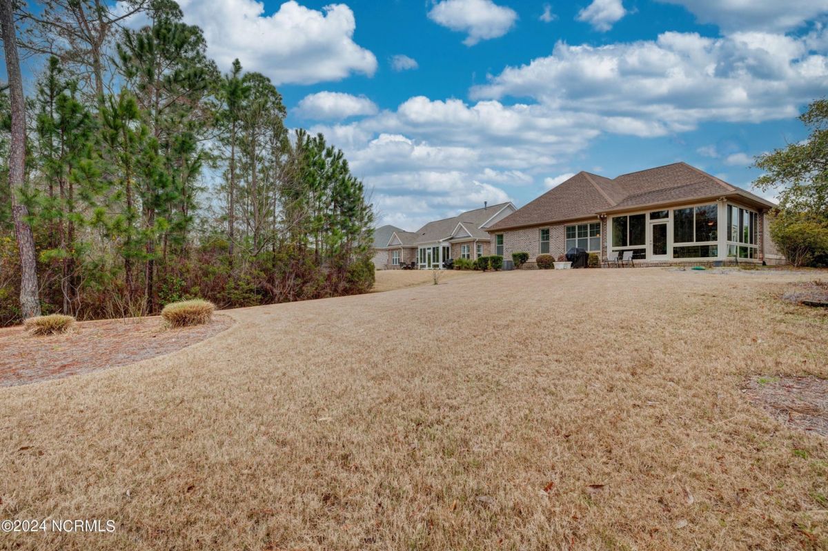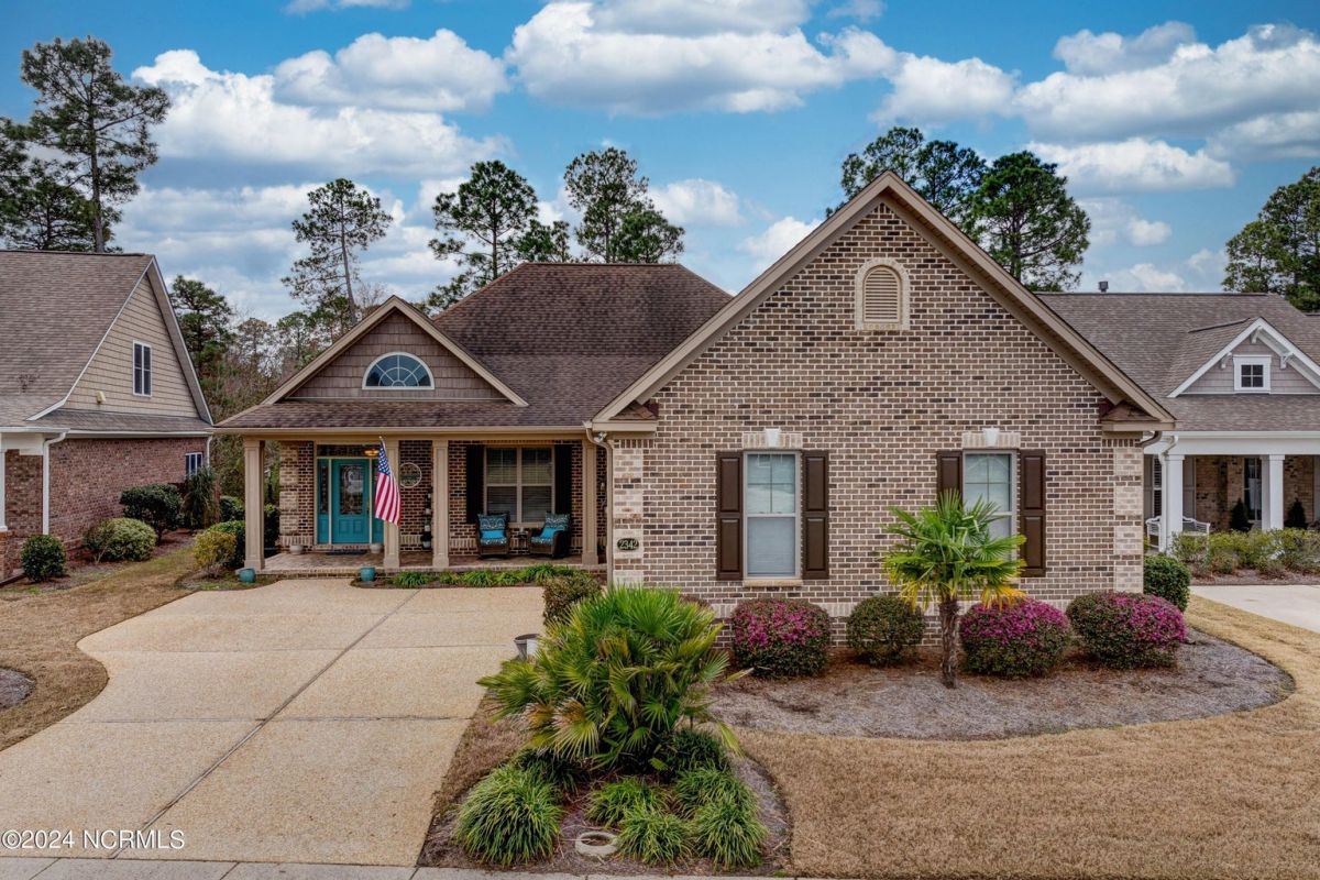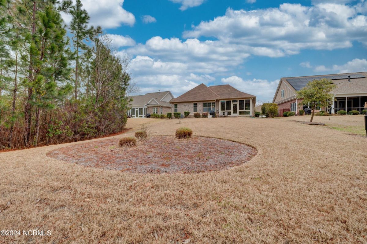 Another great opportunity awaits you in Compass Pointe! Enjoy resort living in The Reserves, close to the main amenity center. This beautiful brick home, built by Liberty Homes, is the perfect opportunity to become part of this desirable neighborhood. As you enter this spacious home, the generous great room with vaulted ceiling highlights every beautiful feature. This one-owner home has an efficient, open kitchen and dining space, offering conveniences such as pull-out lower drawers, tile back splash and chair rail molding in the dining area. Continue out to the spacious 260 sq ft. climate-controlled lanai to enjoy the peaceful sanctuary behind the home. Hardwood flooring is throughout the main living areas and guest bedroom, with carpeting in the additional bedrooms. The oversized garage offers you plenty of room for a workshop and your golf cart. Convenient surround sound is throughout the main living areas and lanai. Compass Pointes amenities feature the Grand Lanai Clubhouse, Health and Wellness Center, outdoor lazy river, a Jr. Olympic lap pool, heated indoor pool, tennis and pickleball courts and dog park. This ''golf-cart'' friendly lifestyle is very limited in Southeast North Carolina, but it can be yours! Additionally, if you are a golfer, the Compass Pointe Golf Club offers multiple membership opportunities, another outdoor pool, Tiki Bar, full-service restaurant, gym, and pro shop. Take advantage of the savings and convenience by owning this home versus building.