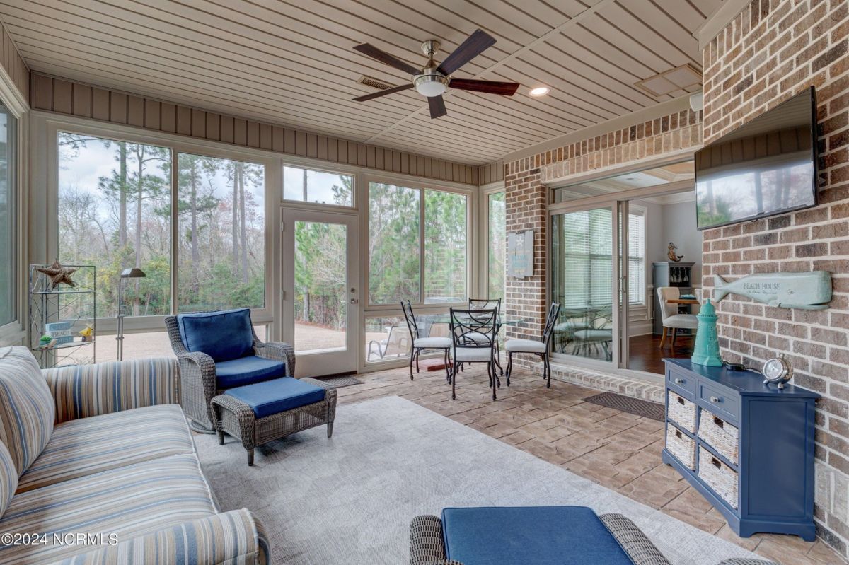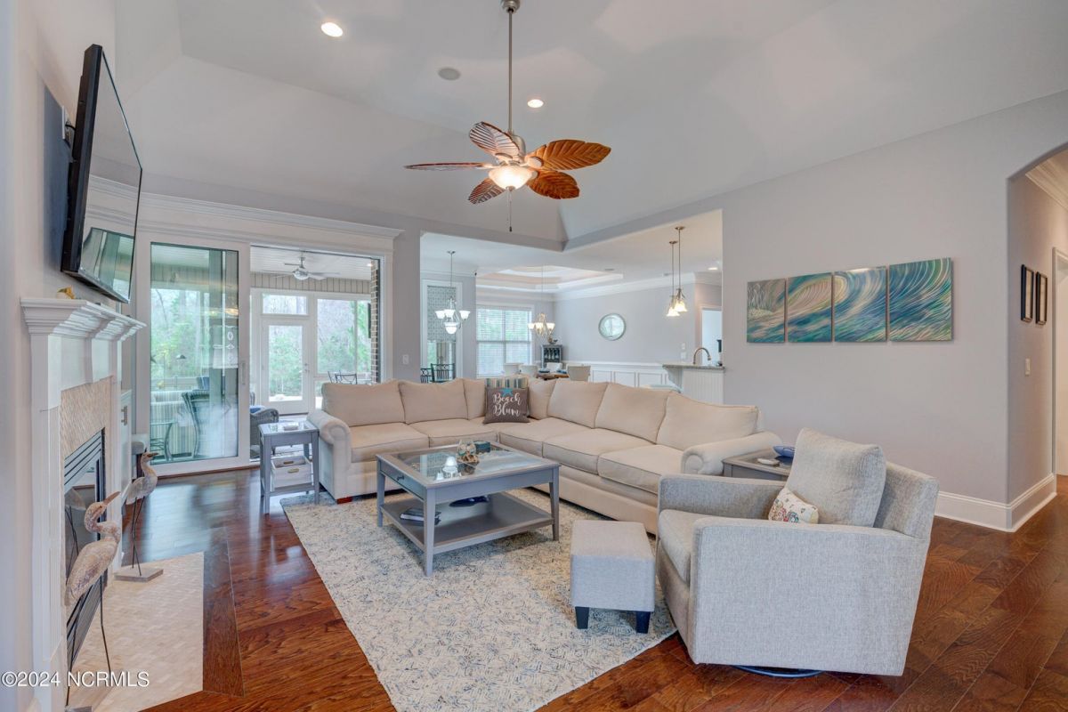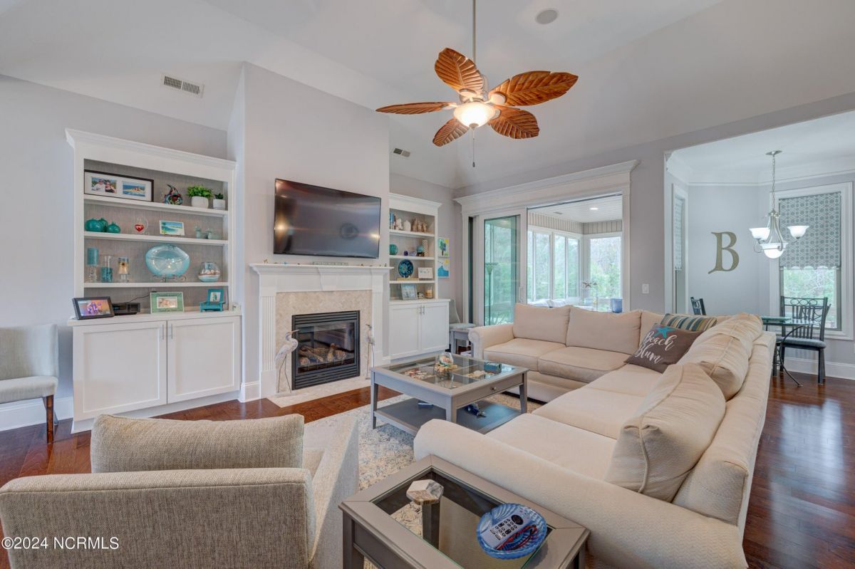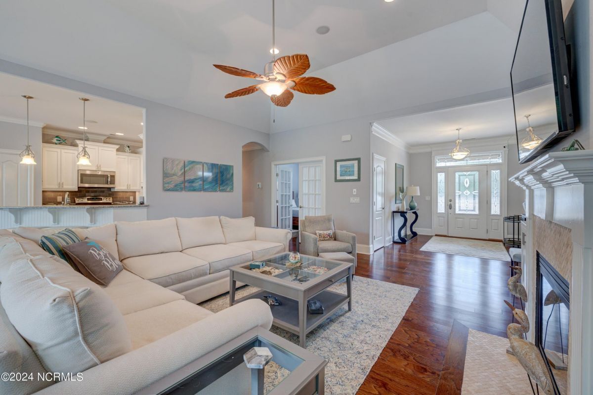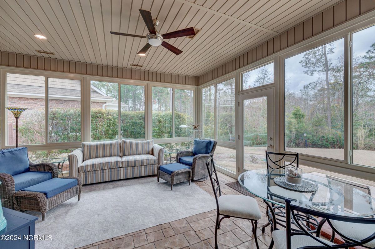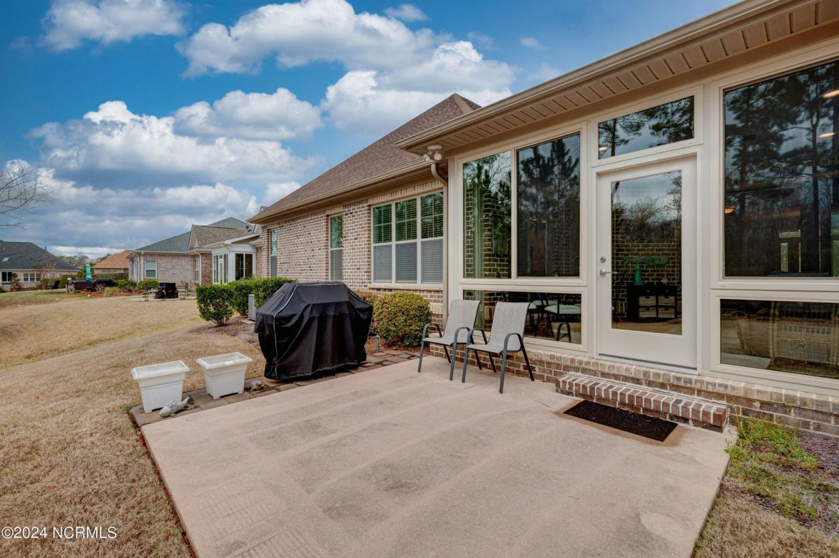 Another great opportunity awaits you in Compass Pointe! Enjoy resort living in The Reserves, close to the main amenity center. This beautiful brick home, built by Liberty Homes, is the perfect opportunity to become part of this desirable neighborhood. As you enter this spacious home, the generous great room with vaulted ceiling highlights every beautiful feature. This one-owner home has an efficient, open kitchen and dining space, offering conveniences such as pull-out lower drawers, tile back splash and chair rail molding in the dining area. Continue out to the spacious 260 sq ft. climate-controlled lanai to enjoy the peaceful sanctuary behind the home. Hardwood flooring is throughout the main living areas and guest bedroom, with carpeting in the additional bedrooms. The oversized garage offers you plenty of room for a workshop and your golf cart. Convenient surround sound is throughout the main living areas and lanai. Compass Pointes amenities feature the Grand Lanai Clubhouse, Health and Wellness Center, outdoor lazy river, a Jr. Olympic lap pool, heated indoor pool, tennis and pickleball courts and dog park. This ''golf-cart'' friendly lifestyle is very limited in Southeast North Carolina, but it can be yours! Additionally, if you are a golfer, the Compass Pointe Golf Club offers multiple membership opportunities, another outdoor pool, Tiki Bar, full-service restaurant, gym, and pro shop. Take advantage of the savings and convenience by owning this home versus building.