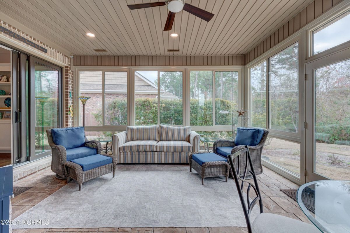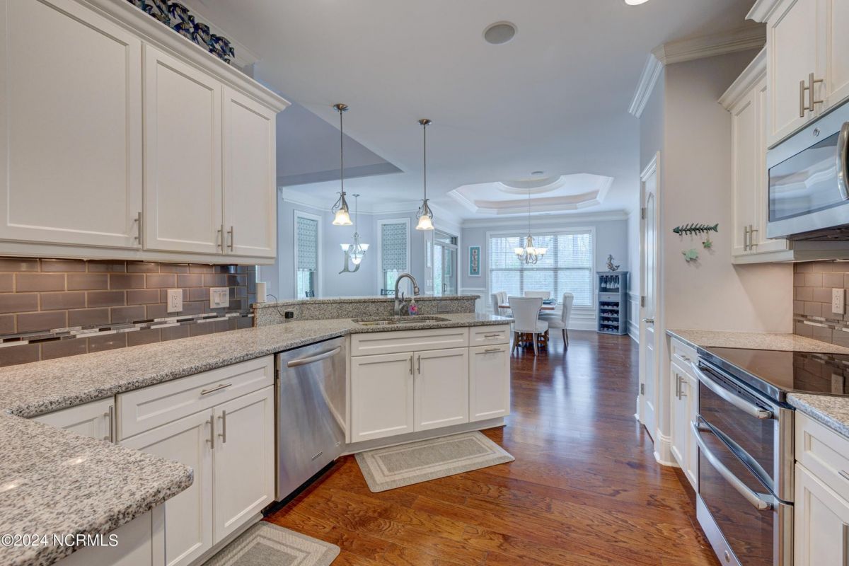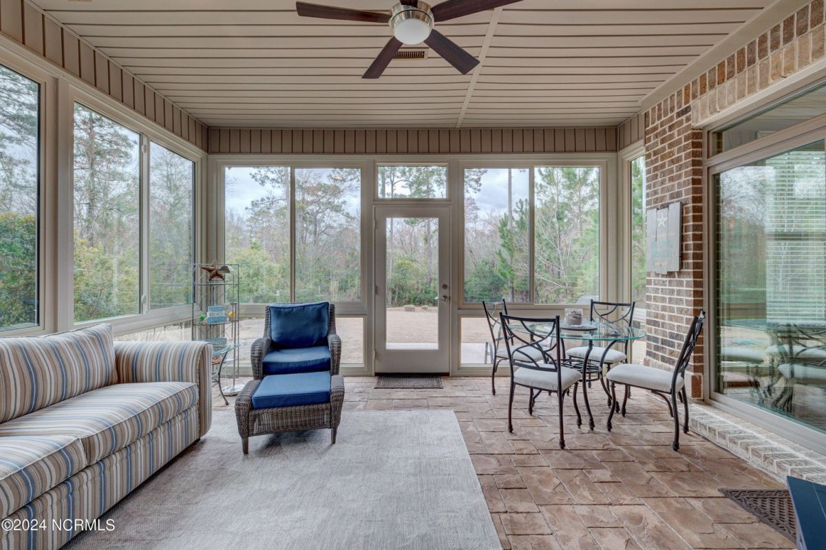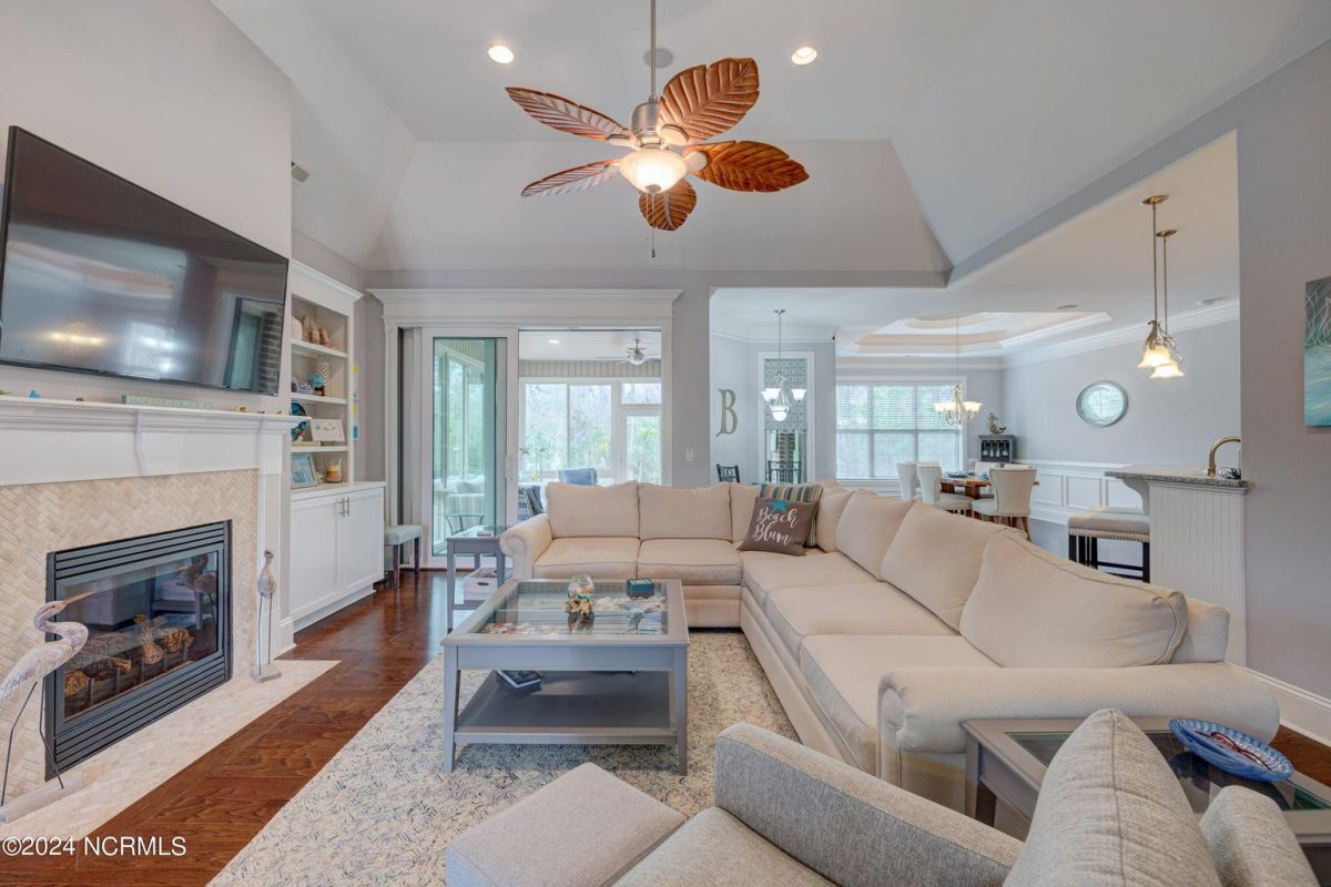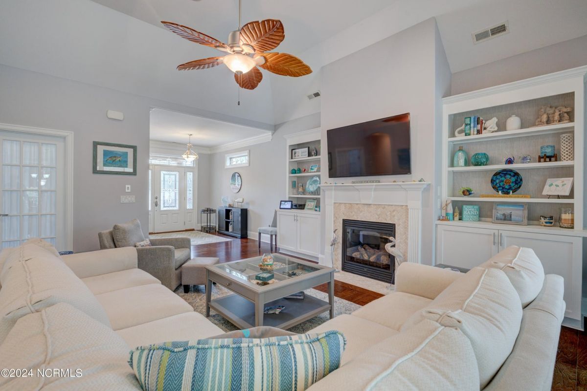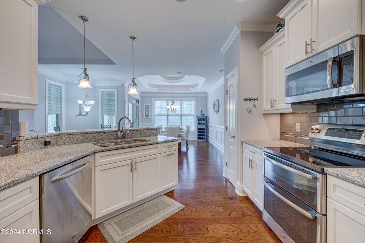 Another great opportunity awaits you in Compass Pointe! Enjoy resort living in The Reserves, close to the main amenity center. This beautiful brick home, built by Liberty Homes, is the perfect opportunity to become part of this desirable neighborhood. As you enter this spacious home, the generous great room with vaulted ceiling highlights every beautiful feature. This one-owner home has an efficient, open kitchen and dining space, offering conveniences such as pull-out lower drawers, tile back splash and chair rail molding in the dining area. Continue out to the spacious 260 sq ft. climate-controlled lanai to enjoy the peaceful sanctuary behind the home. Hardwood flooring is throughout the main living areas and guest bedroom, with carpeting in the additional bedrooms. The oversized garage offers you plenty of room for a workshop and your golf cart. Convenient surround sound is throughout the main living areas and lanai. Compass Pointes amenities feature the Grand Lanai Clubhouse, Health and Wellness Center, outdoor lazy river, a Jr. Olympic lap pool, heated indoor pool, tennis and pickleball courts and dog park. This ''golf-cart'' friendly lifestyle is very limited in Southeast North Carolina, but it can be yours! Additionally, if you are a golfer, the Compass Pointe Golf Club offers multiple membership opportunities, another outdoor pool, Tiki Bar, full-service restaurant, gym, and pro shop. Take advantage of the savings and convenience by owning this home versus building.