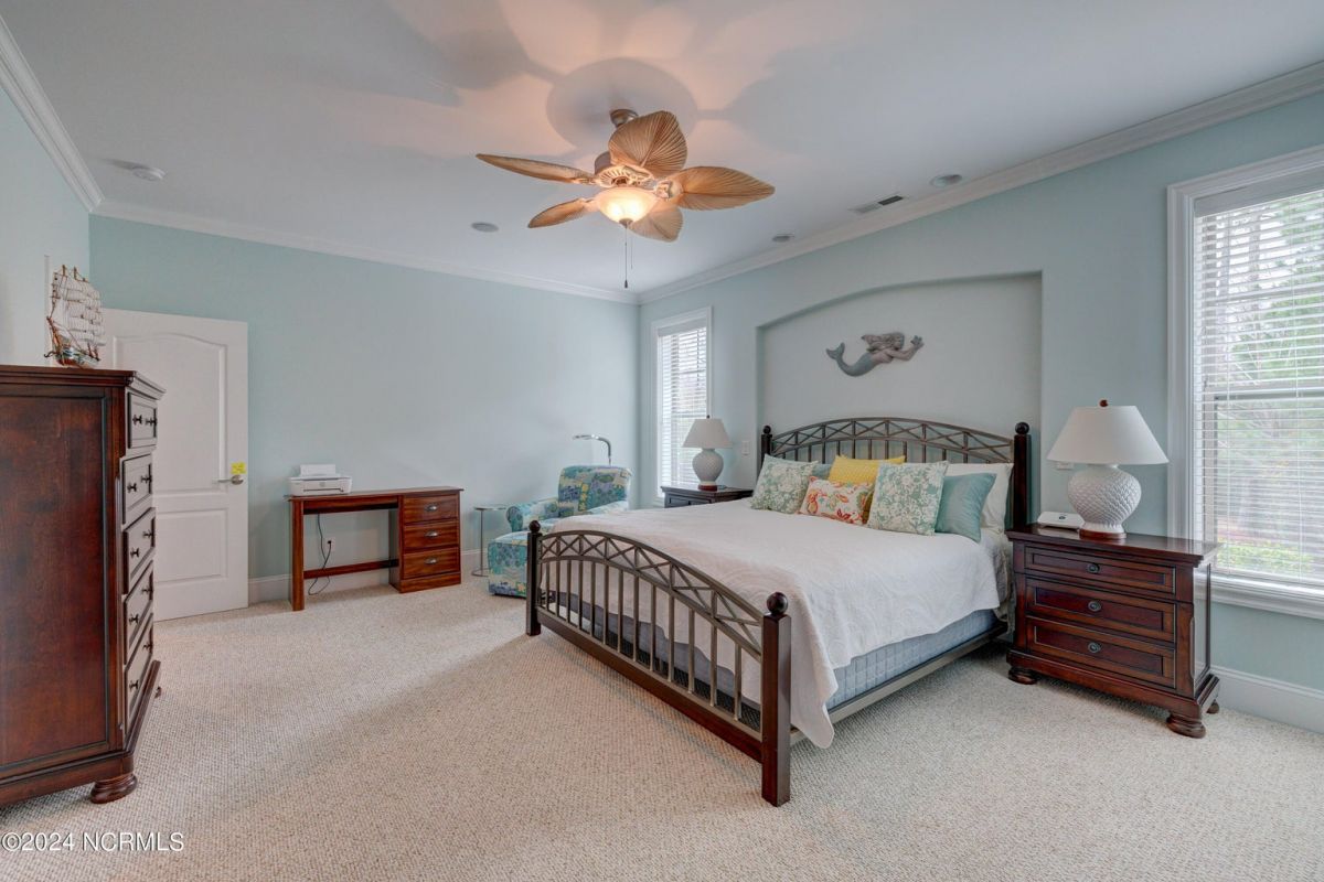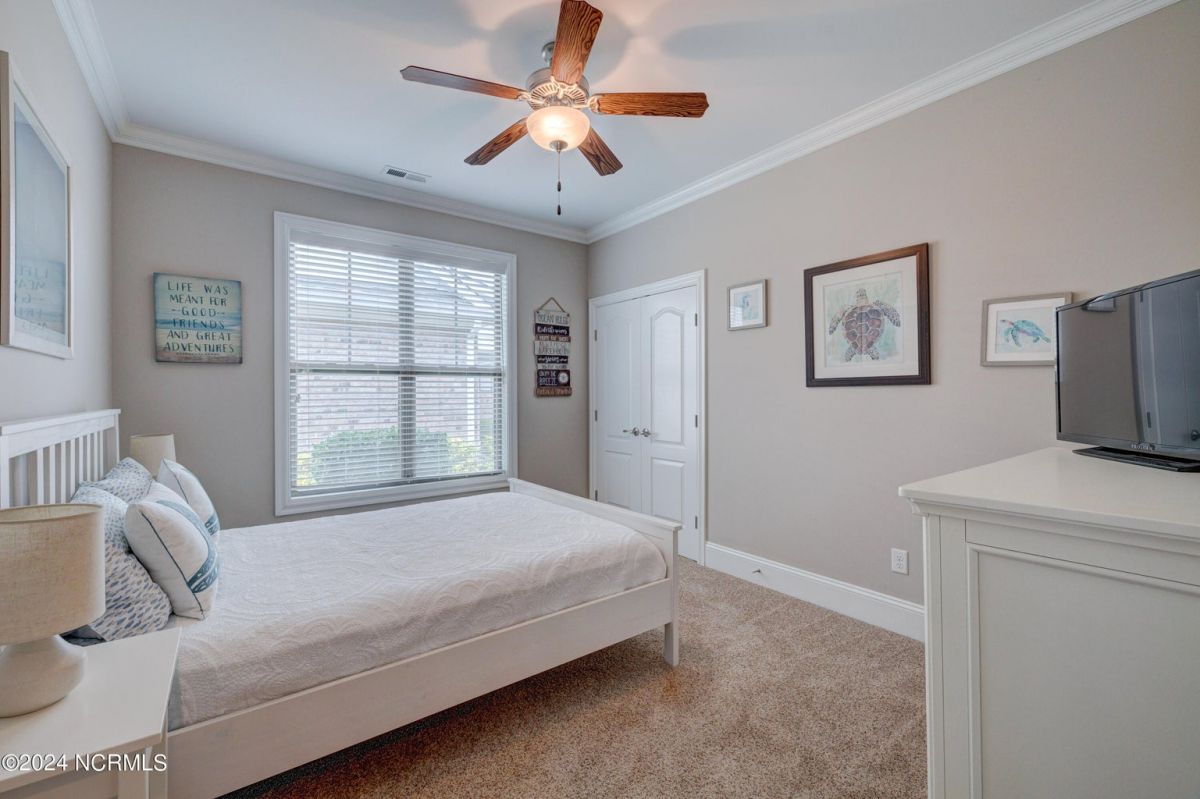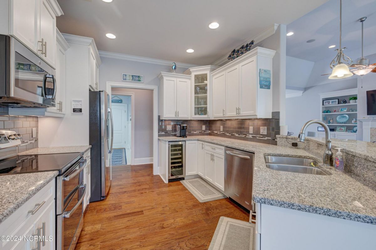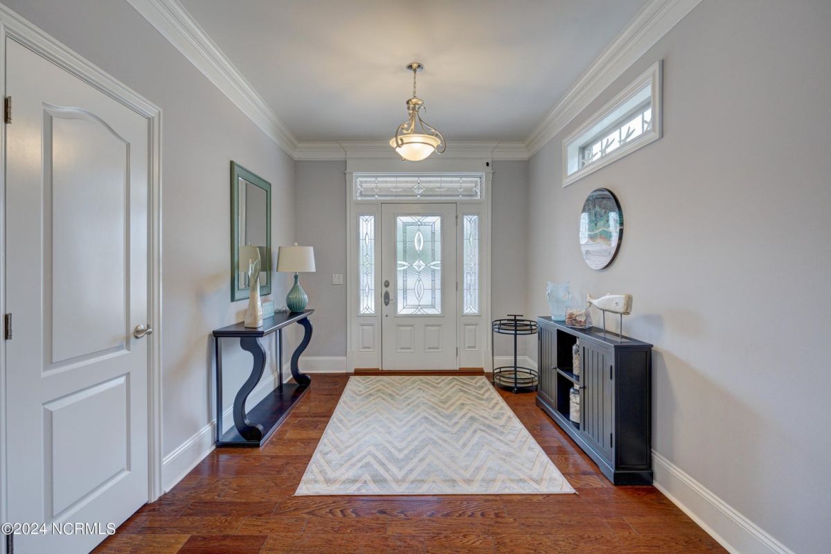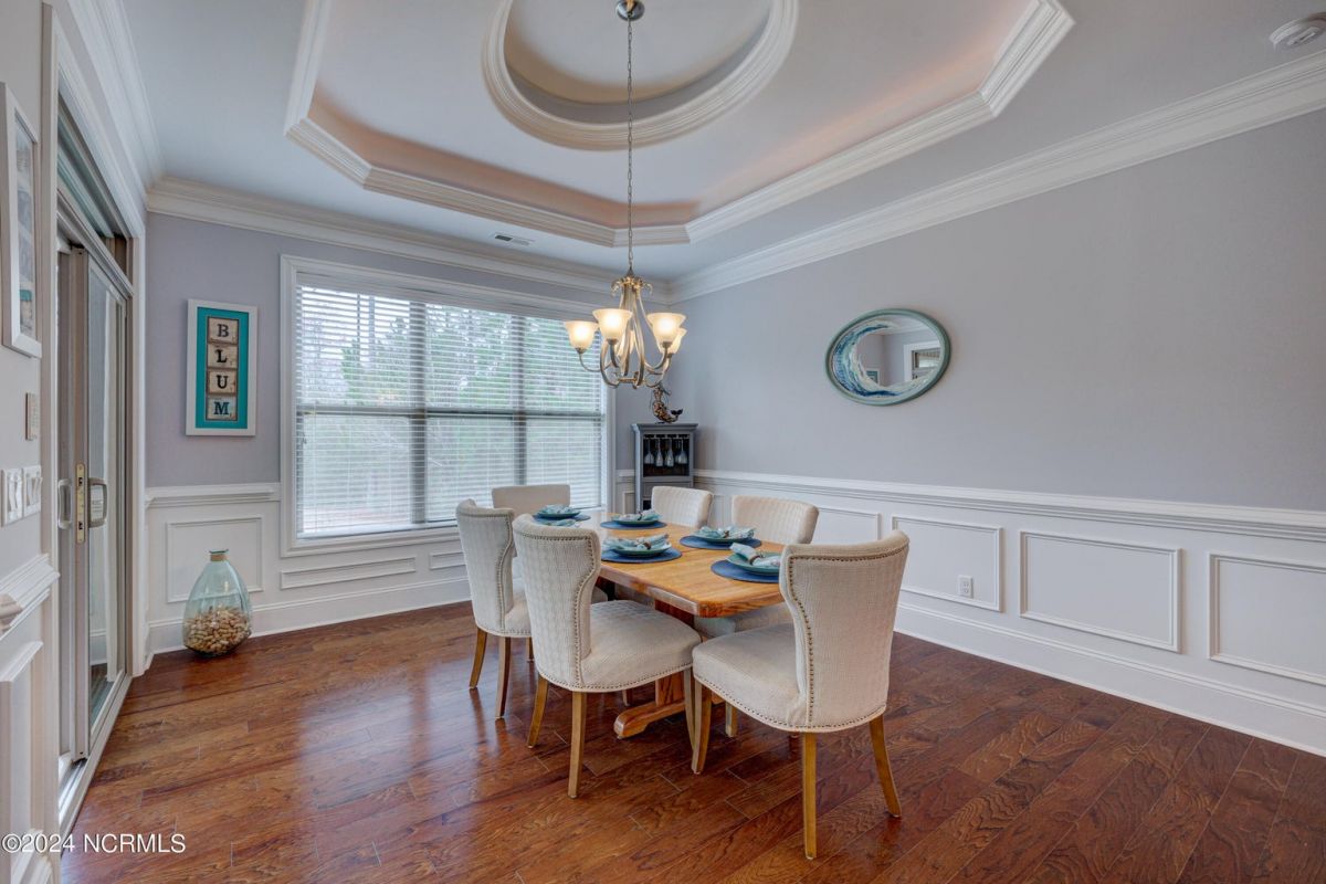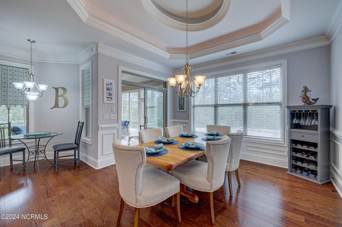 Another great opportunity awaits you in Compass Pointe! Enjoy resort living in The Reserves, close to the main amenity center. This beautiful brick home, built by Liberty Homes, is the perfect opportunity to become part of this desirable neighborhood. As you enter this spacious home, the generous great room with vaulted ceiling highlights every beautiful feature. This one-owner home has an efficient, open kitchen and dining space, offering conveniences such as pull-out lower drawers, tile back splash and chair rail molding in the dining area. Continue out to the spacious 260 sq ft. climate-controlled lanai to enjoy the peaceful sanctuary behind the home. Hardwood flooring is throughout the main living areas and guest bedroom, with carpeting in the additional bedrooms. The oversized garage offers you plenty of room for a workshop and your golf cart. Convenient surround sound is throughout the main living areas and lanai. Compass Pointes amenities feature the Grand Lanai Clubhouse, Health and Wellness Center, outdoor lazy river, a Jr. Olympic lap pool, heated indoor pool, tennis and pickleball courts and dog park. This ''golf-cart'' friendly lifestyle is very limited in Southeast North Carolina, but it can be yours! Additionally, if you are a golfer, the Compass Pointe Golf Club offers multiple membership opportunities, another outdoor pool, Tiki Bar, full-service restaurant, gym, and pro shop. Take advantage of the savings and convenience by owning this home versus building.