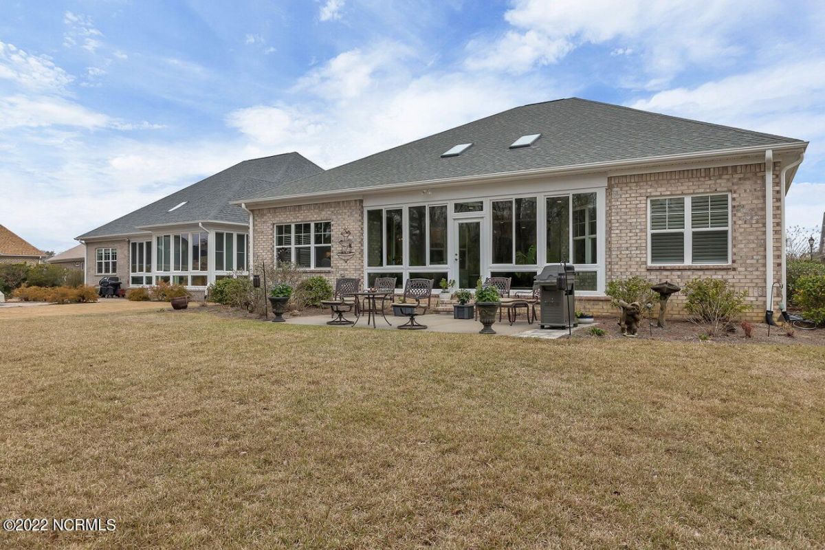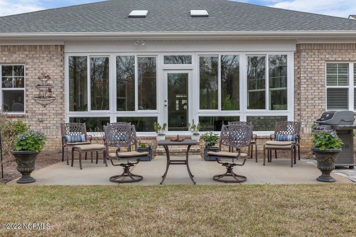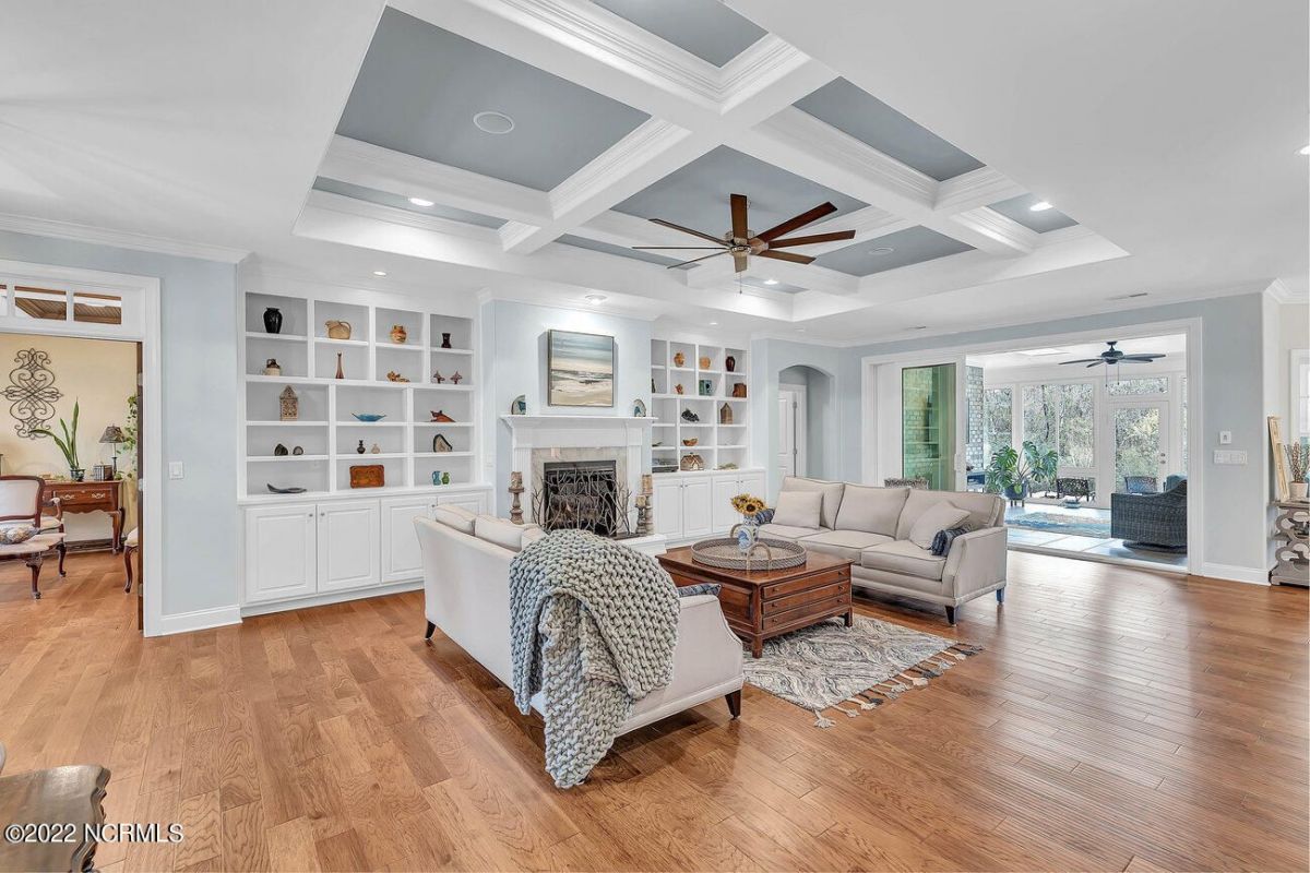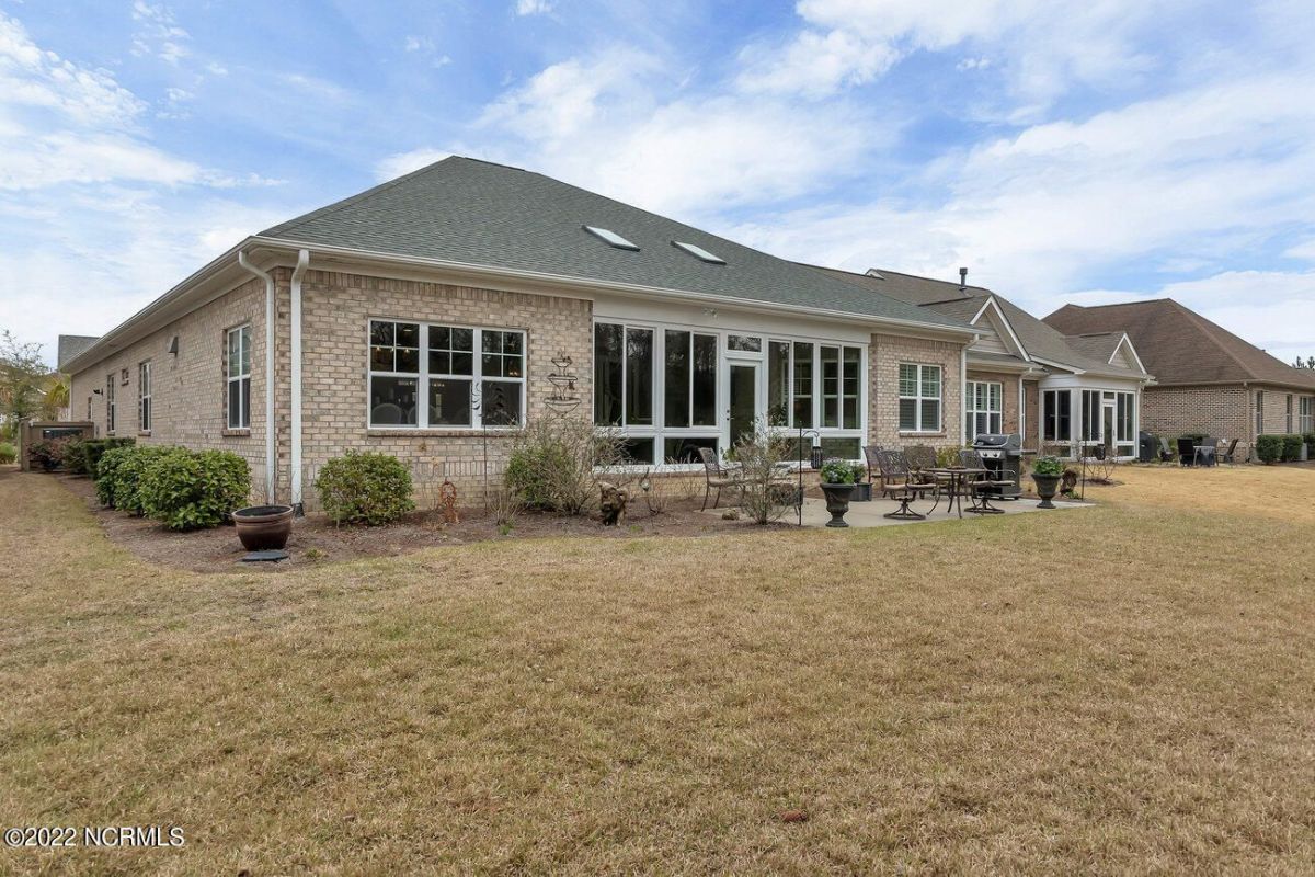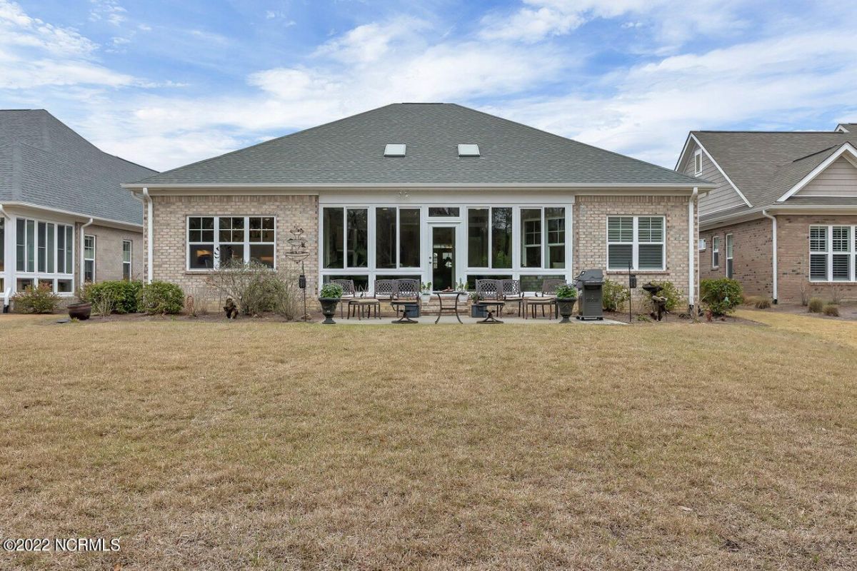 Welcome home to luxury living minutes from downtown Wilmington, NC! This Home built by Trusst Builder group is packed with character and charm! The open concept floor plan is perfect for entertaining, it features a large living area with a coffered ceiling, fireplace, custom built in display shelves. Engineered hickory hardwood floors throughout with carpet in the two guest bedrooms. Home features three bedroom's, two baths, office/flex space AND an oversized sunroom. The chef's kitchen includes Kitchen Aid appliances, with a General Electric built in gas 5 burner cooktop, cabinets with soft close drawers, microwave and wall oven with convection options. Not to mention the extended pantry with roll out lower shelves, and custom coffee bar. Upgraded quartz countertops, the oversized island (5 by 7) is outfitted with three hidden cabinets. Both the great room and the dining room open to a glass enclosed lanai with two skylights and a full view of the nature preserve at the back of the property. Step down to the beautifully landscaped backyard, complete with a dedicated gas line for a grill. The peaceful master bedroom features a tray ceiling fitted with lights, as well as a beautiful walk in master closet and secondary closet. The well appointed master bath has upgraded cabinetry, a zero entry glass enclosed shower, dual shower heads, private water closet, and separate sinks with quartz countertop. Garage features a storage room, utility sink, an additional 3 foot extension, custom speckled floor, garage door with windows and keypad and a custom workbench. Other upgrades include tankless water heater, comfort level toilets, whole house water filtration, security system, and custom sound system. LAWN maintenance is all included in your HOA's! Compass Pointe is a gated neighborhood offering: the grand lanai clubhouse, fitness center, lazy river, resort style pool, dog park, indoor pool, sauna, exercise classes, trails, tennis, and pickleball.