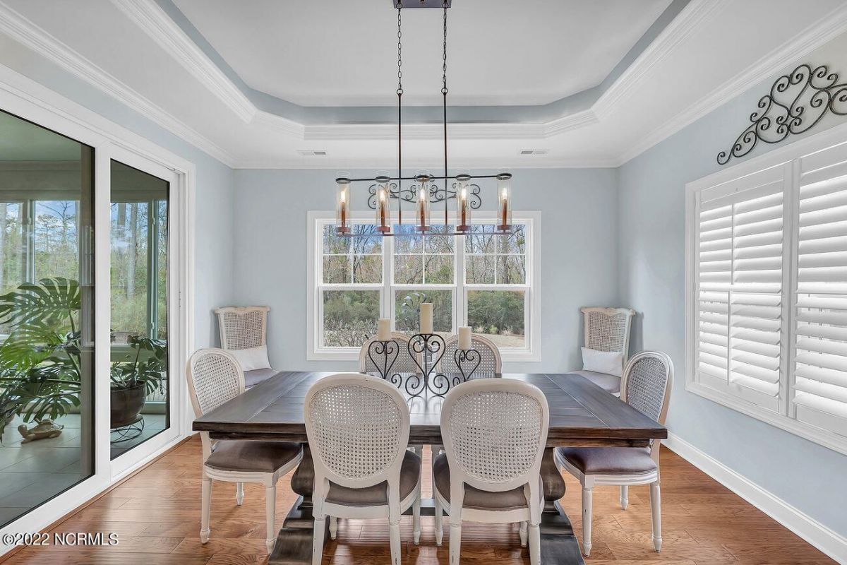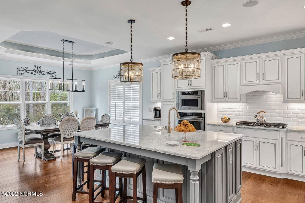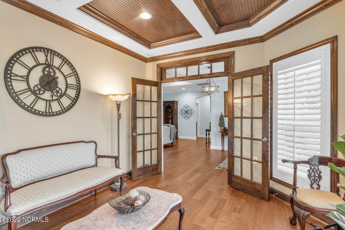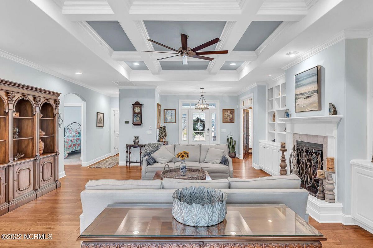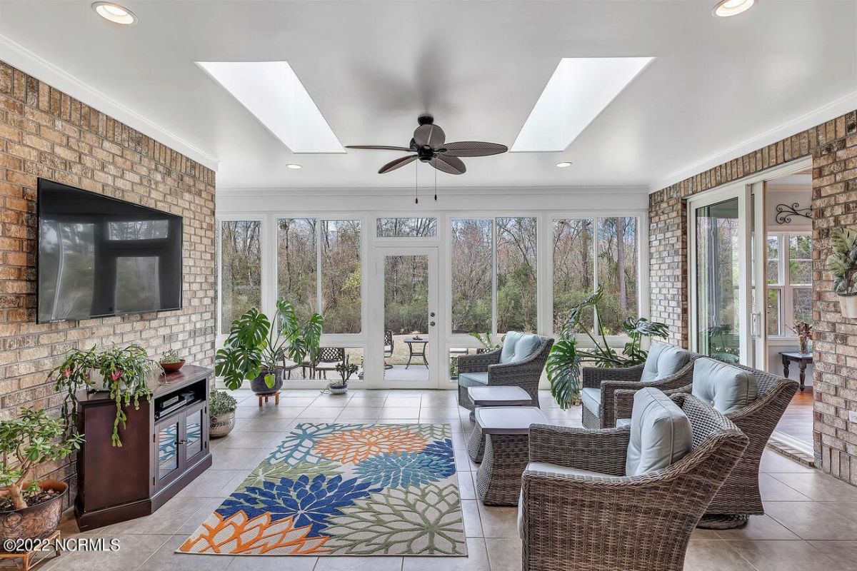 Welcome home to luxury living minutes from downtown Wilmington, NC! This Home built by Trusst Builder group is packed with character and charm! The open concept floor plan is perfect for entertaining, it features a large living area with a coffered ceiling, fireplace, custom built in display shelves. Engineered hickory hardwood floors throughout with carpet in the two guest bedrooms. Home features three bedroom's, two baths, office/flex space AND an oversized sunroom. The chef's kitchen includes Kitchen Aid appliances, with a General Electric built in gas 5 burner cooktop, cabinets with soft close drawers, microwave and wall oven with convection options. Not to mention the extended pantry with roll out lower shelves, and custom coffee bar. Upgraded quartz countertops, the oversized island (5 by 7) is outfitted with three hidden cabinets. Both the great room and the dining room open to a glass enclosed lanai with two skylights and a full view of the nature preserve at the back of the property. Step down to the beautifully landscaped backyard, complete with a dedicated gas line for a grill. The peaceful master bedroom features a tray ceiling fitted with lights, as well as a beautiful walk in master closet and secondary closet. The well appointed master bath has upgraded cabinetry, a zero entry glass enclosed shower, dual shower heads, private water closet, and separate sinks with quartz countertop. Garage features a storage room, utility sink, an additional 3 foot extension, custom speckled floor, garage door with windows and keypad and a custom workbench. Other upgrades include tankless water heater, comfort level toilets, whole house water filtration, security system, and custom sound system. LAWN maintenance is all included in your HOA's! Compass Pointe is a gated neighborhood offering: the grand lanai clubhouse, fitness center, lazy river, resort style pool, dog park, indoor pool, sauna, exercise classes, trails, tennis, and pickleball.