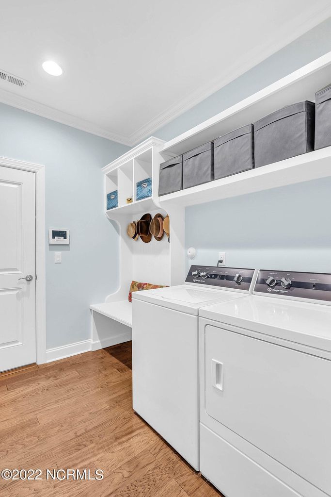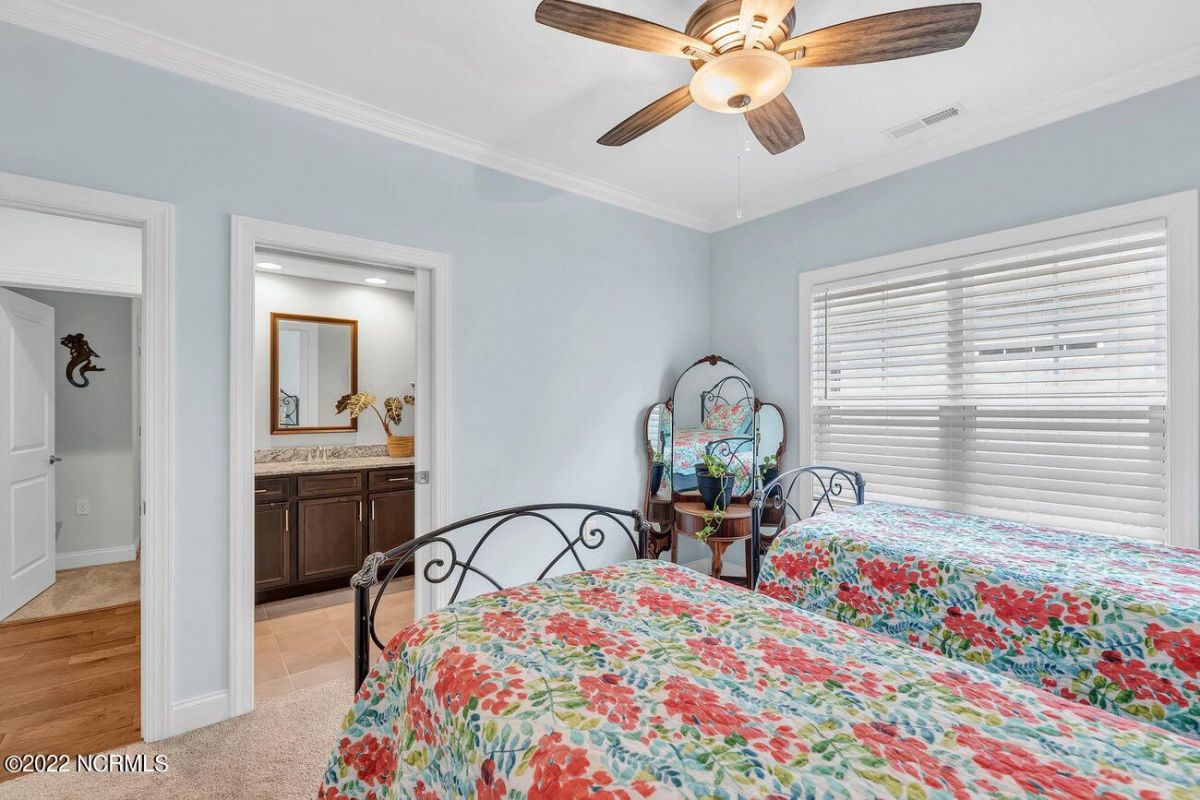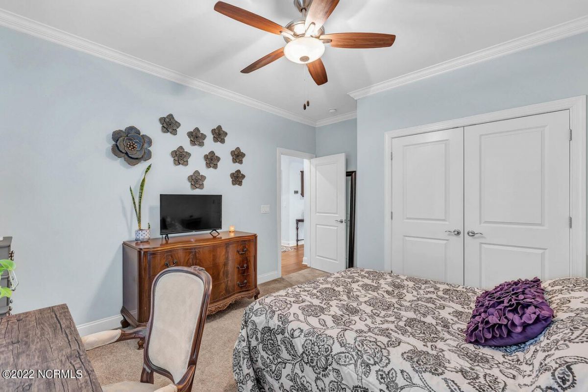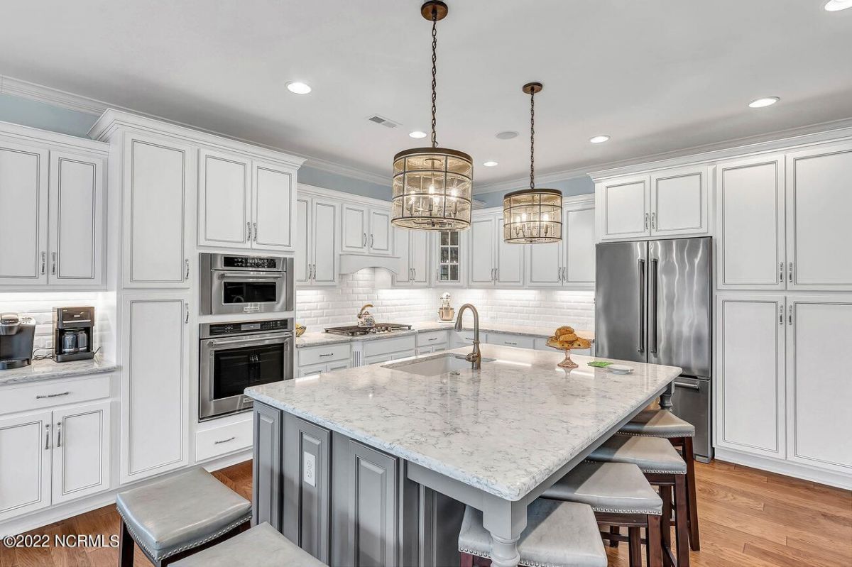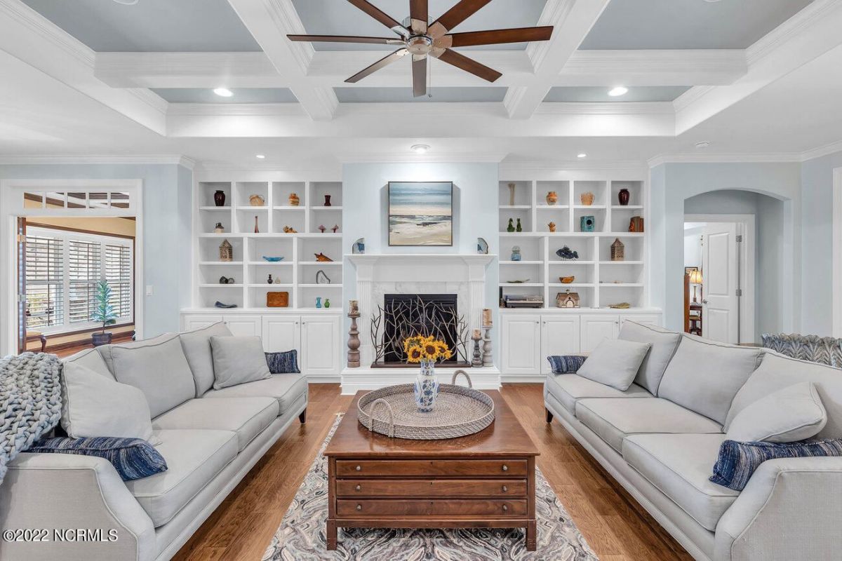Welcome home to luxury living minutes from downtown Wilmington, NC! This Home built by Trusst Builder group is packed with character and charm! The open concept floor plan is perfect for entertaining, it features a large living area with a coffered ceiling, fireplace, custom built in display shelves. Engineered hickory hardwood floors throughout with carpet in the two guest bedrooms. Home features three bedroom's, two baths, office/flex space AND an oversized sunroom. The chef's kitchen includes Kitchen Aid appliances, with a General Electric built in gas 5 burner cooktop, cabinets with soft close drawers, microwave and wall oven with convection options. Not to mention the extended pantry with roll out lower shelves, and custom coffee bar. Upgraded quartz countertops, the oversized island (5 by 7) is outfitted with three hidden cabinets. Both the great room and the dining room open to a glass enclosed lanai with two skylights and a full view of the nature preserve at the back of the property. Step down to the beautifully landscaped backyard, complete with a dedicated gas line for a grill. The peaceful master bedroom features a tray ceiling fitted with lights, as well as a beautiful walk in master closet and secondary closet. The well appointed master bath has upgraded cabinetry, a zero entry glass enclosed shower, dual shower heads, private water closet, and separate sinks with quartz countertop. Garage features a storage room, utility sink, an additional 3 foot extension, custom speckled floor, garage door with windows and keypad and a custom workbench. Other upgrades include tankless water heater, comfort level toilets, whole house water filtration, security system, and custom sound system. LAWN maintenance is all included in your HOA's! Compass Pointe is a gated neighborhood offering: the grand lanai clubhouse, fitness center, lazy river, resort style pool, dog park, indoor pool, sauna, exercise classes, trails, tennis, and pickleball.