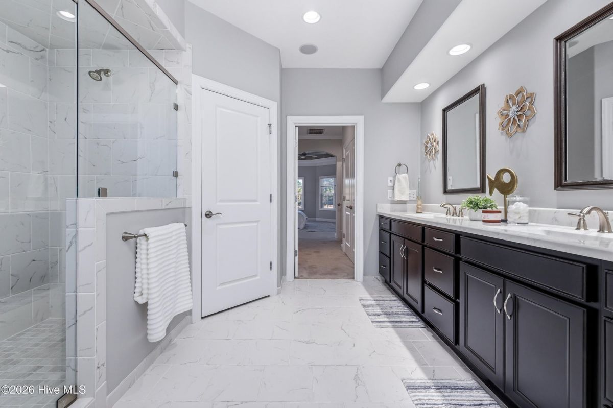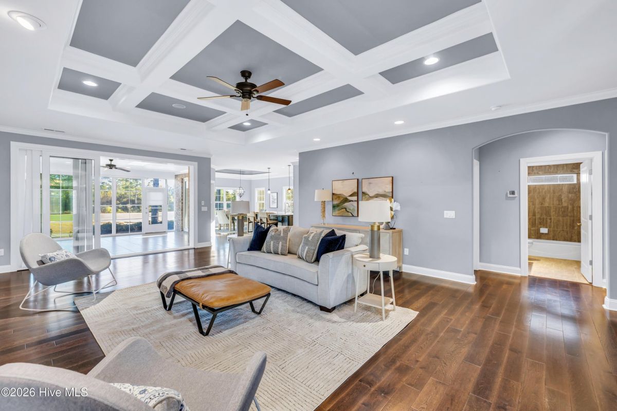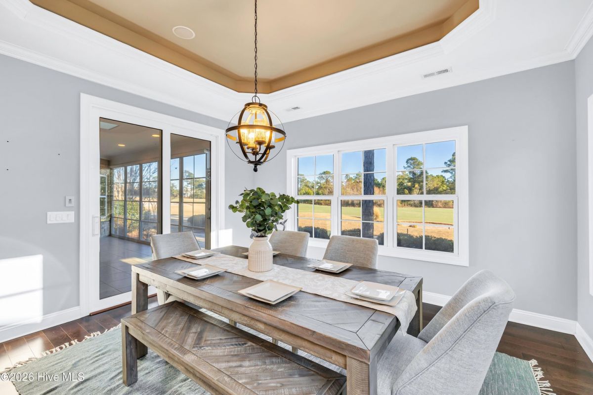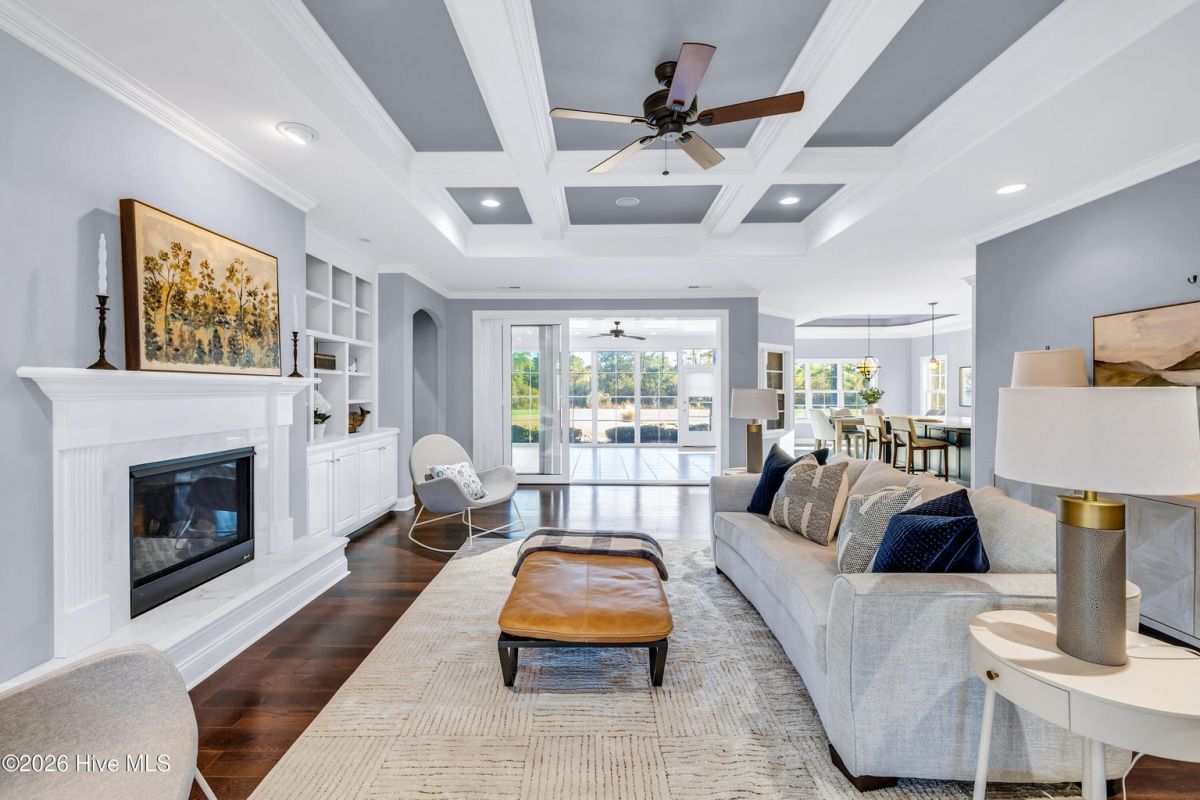 Use as you choose available 1% lender credit or lender-paid 1-0 temporary rate buy-down program available through preferred lender for qualified buyers! Buyer is not required to use a specific lender in order to buy this home. Gorgeous patio home sitting right on the golf course inside of amenity-rich Compass Pointe - priced to sell! As turn key as they come, built in 2017 by Trusst Builder Group with no upgrades spared. Dual zoned HVAC, detailed chef's kitchen with gas 6 burner stove top, and beautiful white quartz counter tops. The Grace floor plan comes with a dedicated office study, an expansive back porch, all accompanied with unbeatable views of the 3rd fairway. Trusst builder group takes things seriously. Included in this home is a very long list of extra detail. Like the coffered and tray 9 foot ceilings, spa-like bathrooms, double door pantry, epoxy garage floor, living room built-ins, high end cabinets and so much more. This is North Carolina golf course living at its finest. Water Heater, HVAC, Roof, Windows, everything is from 2017. You will find plenty of easily accessible storage for all your seasonal things as well. Compass pointe is the Eastern North Carolina capital of resort living. 2,200 acre community that includes an extensive list of community events and amenities like pickle ball, social and activity clubs, scenic paths, biking trails, indoors and outdoor swimming pools, surrounded by an outstanding golf course. Safety and security are one of Compass Pointe's highest priority. You won't make it through the manned gates of the community without permission!