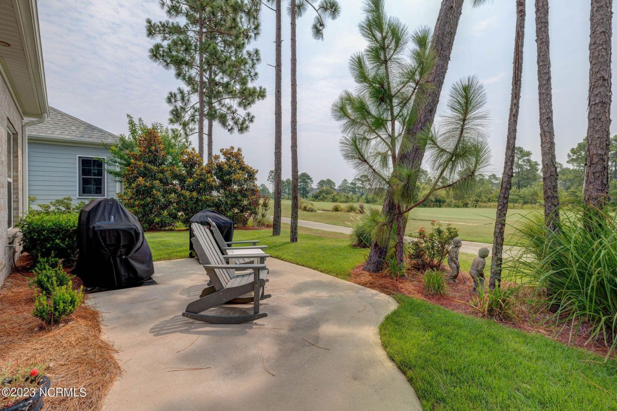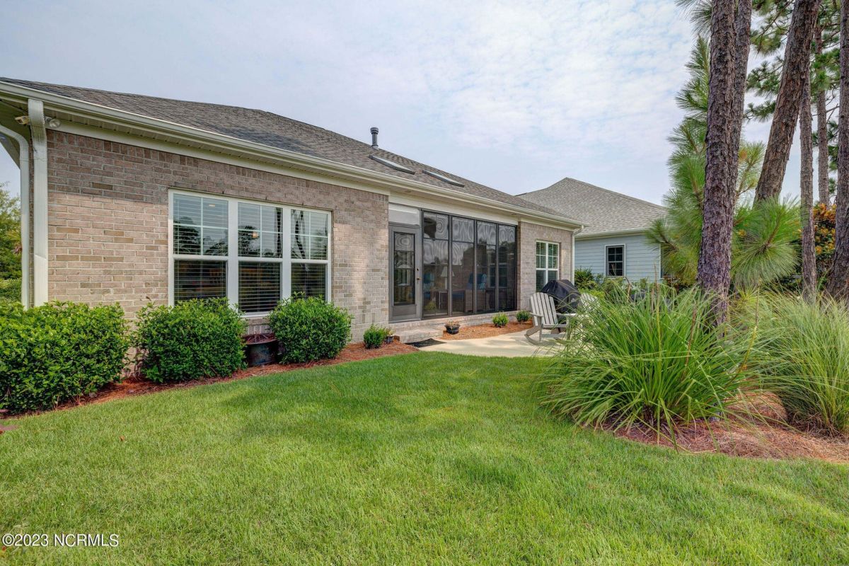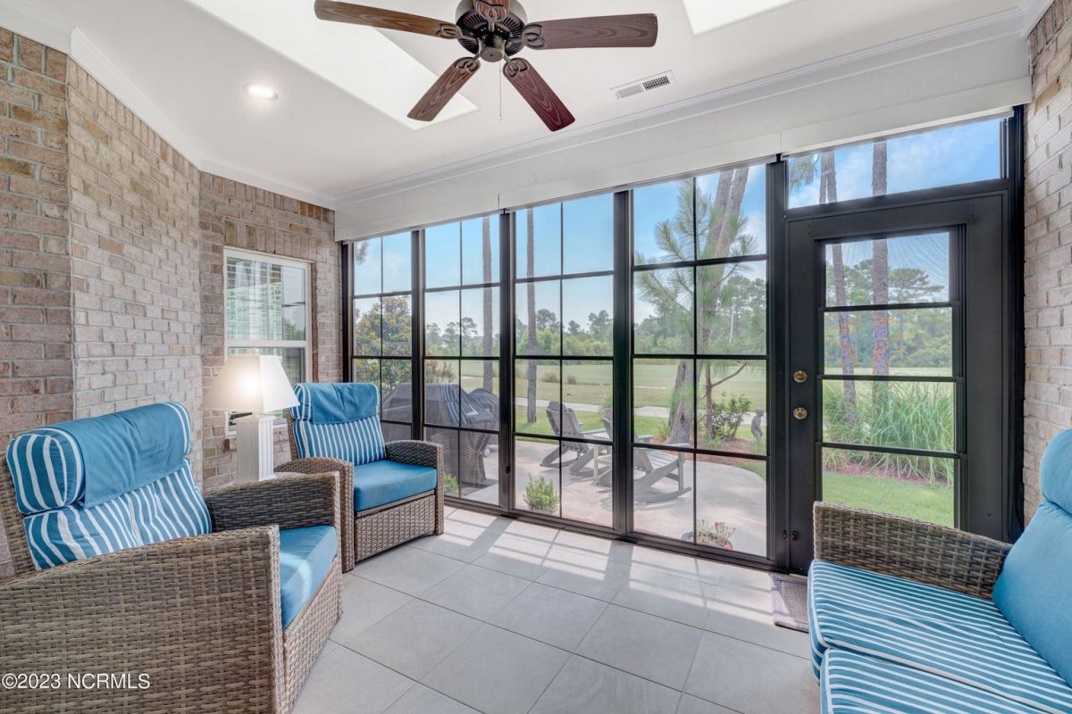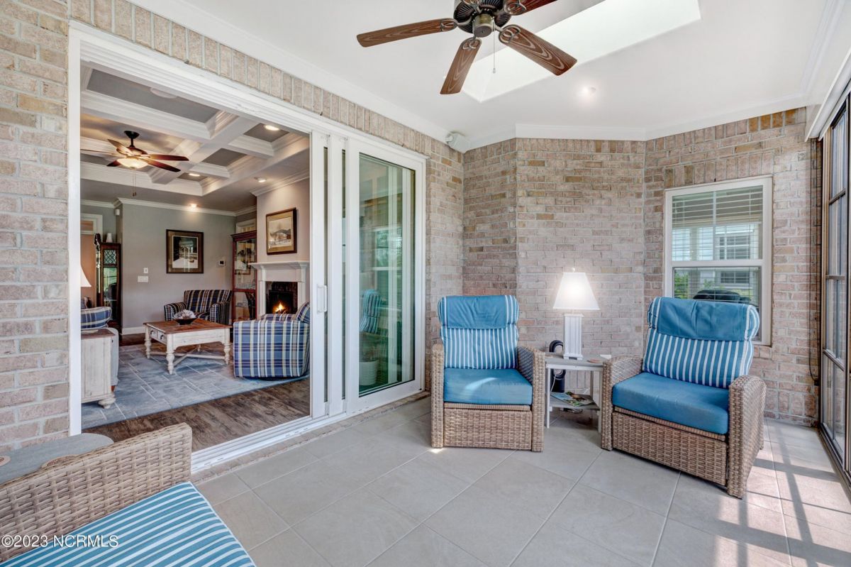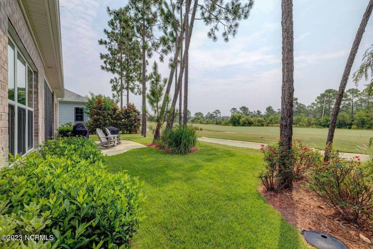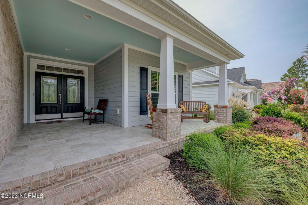 Welcome to the captivating world of Compass Pointe, ideally located near historic downtown Wilmington, area beaches, shopping, medical, dining, and much more. Step inside this stunning, like-new golf course home crafted by Trusst Builders and prepare to be amazed. Boasting a well-designed split plan on the first floor, with 3 bedrooms and 2 full baths, plus a spacious 4th bedroom with a full bathroom above the garage, this home offers ample space and versatility. Upon entry, you'll be greeted by an inviting open floor plan, coffered ceilings, and a chef's kitchen equipped with upscale stainless appliances, showcasing exquisite attention to detail in its construction and maintenance. Start your mornings on a delightful note, enjoying the scenic views of lush gardens and the third fairway from the serene, heated, cooled sunroom. With slide-away doors, this sunroom seamlessly integrates into the home, providing an enjoyable and private relaxing space. Discover an array of extras that enhance this home's appeal, including a tankless propane water heater, upgraded Bosch dishwasher, Thermador gas cooktop, and a Zephyr Exhaust System. The cedar-lined closets and chair-height toilets in all bathrooms add a touch of luxury, while the zero-entry master shower ensures easy accessibility. Entertainment is made easy with the sound system downstairs, while the walk-in floored attic with shelves and Norman blinds in the sunroom adds practicality and comfort. The spacious 2-car garage is equipped with storage cabinets for all your organizational needs. Outside, mature landscaping and a lush Zoysia lawn complement the attractive brick exterior. Outdoor lights with sensors, gutters with screen guards, and a patio propane hook-up provide convenience and functionality. Embrace the low-maintenance lifestyle and savor the delightful golf course view. Take advantage of this exceptional opportunity to own a luxurious home in the highly sought-after Compass Pointe community.
