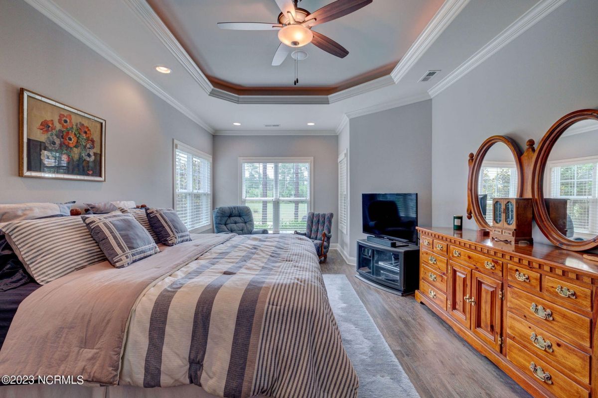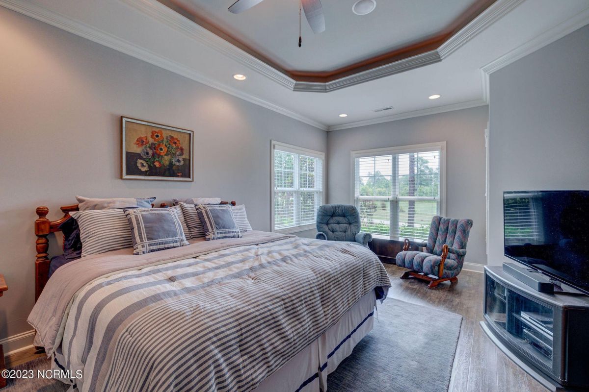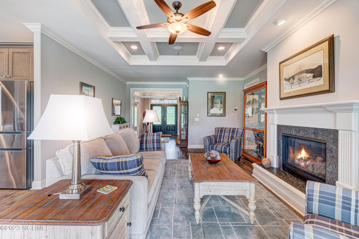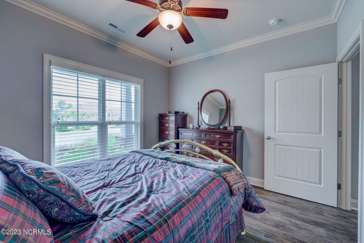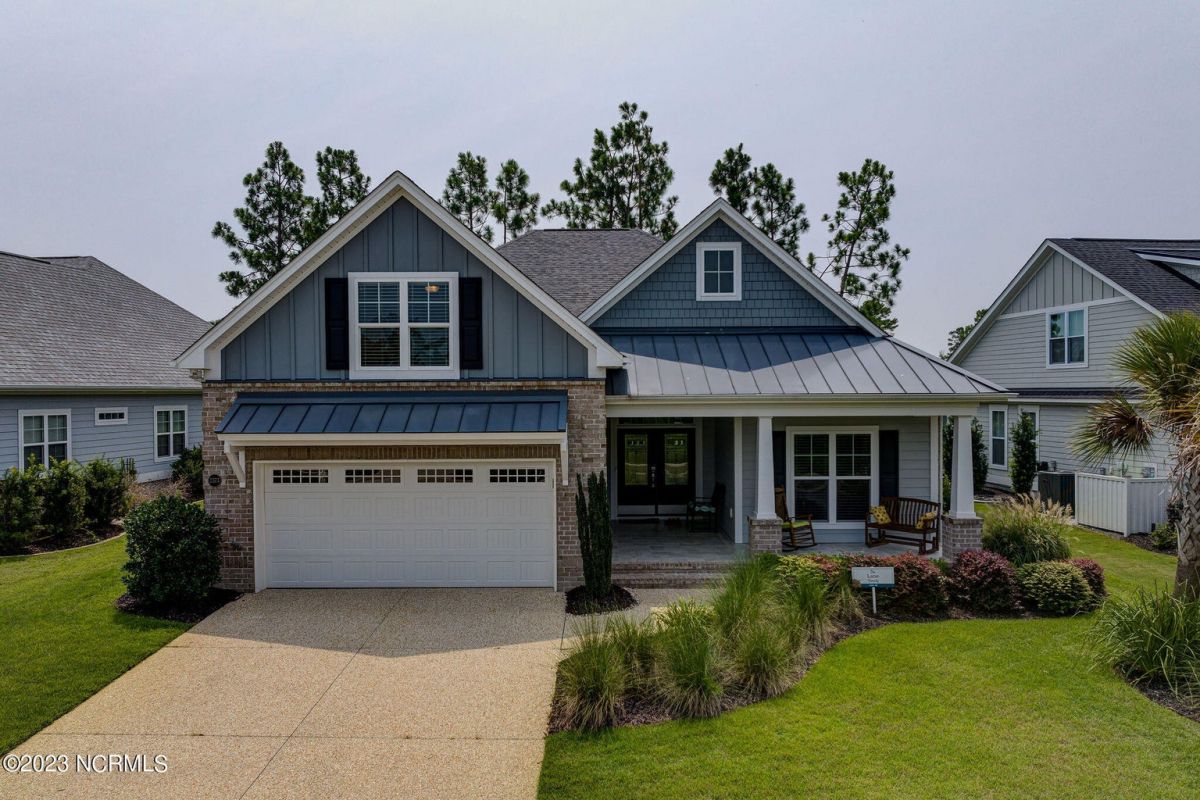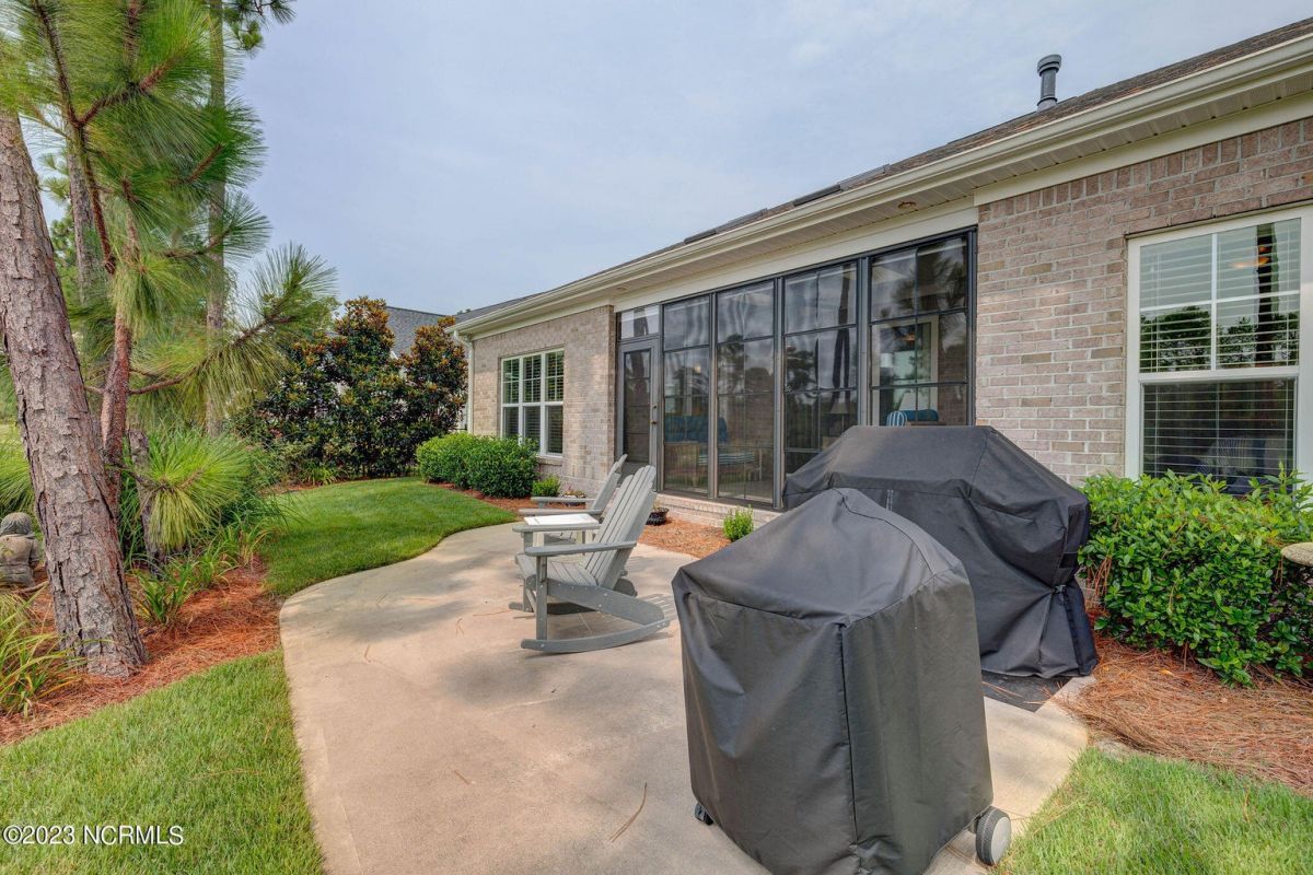 Welcome to the captivating world of Compass Pointe, ideally located near historic downtown Wilmington, area beaches, shopping, medical, dining, and much more. Step inside this stunning, like-new golf course home crafted by Trusst Builders and prepare to be amazed. Boasting a well-designed split plan on the first floor, with 3 bedrooms and 2 full baths, plus a spacious 4th bedroom with a full bathroom above the garage, this home offers ample space and versatility. Upon entry, you'll be greeted by an inviting open floor plan, coffered ceilings, and a chef's kitchen equipped with upscale stainless appliances, showcasing exquisite attention to detail in its construction and maintenance. Start your mornings on a delightful note, enjoying the scenic views of lush gardens and the third fairway from the serene, heated, cooled sunroom. With slide-away doors, this sunroom seamlessly integrates into the home, providing an enjoyable and private relaxing space. Discover an array of extras that enhance this home's appeal, including a tankless propane water heater, upgraded Bosch dishwasher, Thermador gas cooktop, and a Zephyr Exhaust System. The cedar-lined closets and chair-height toilets in all bathrooms add a touch of luxury, while the zero-entry master shower ensures easy accessibility. Entertainment is made easy with the sound system downstairs, while the walk-in floored attic with shelves and Norman blinds in the sunroom adds practicality and comfort. The spacious 2-car garage is equipped with storage cabinets for all your organizational needs. Outside, mature landscaping and a lush Zoysia lawn complement the attractive brick exterior. Outdoor lights with sensors, gutters with screen guards, and a patio propane hook-up provide convenience and functionality. Embrace the low-maintenance lifestyle and savor the delightful golf course view. Take advantage of this exceptional opportunity to own a luxurious home in the highly sought-after Compass Pointe community.