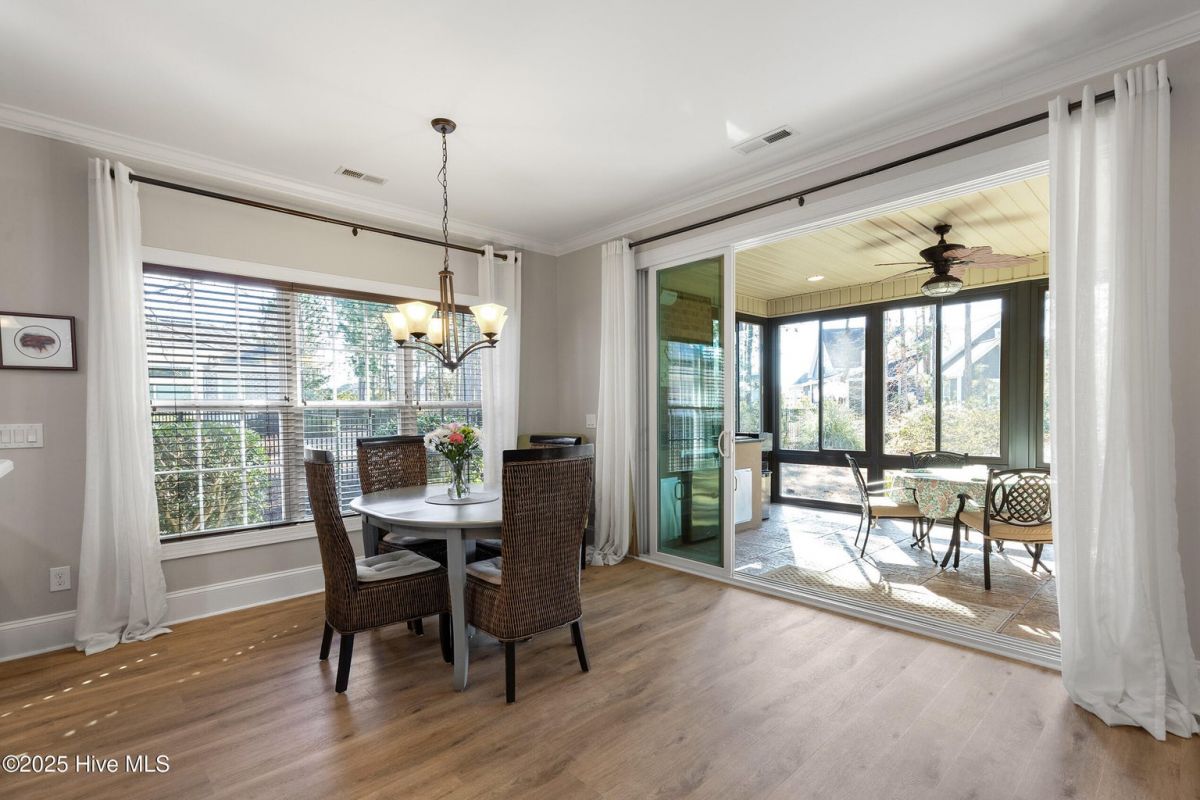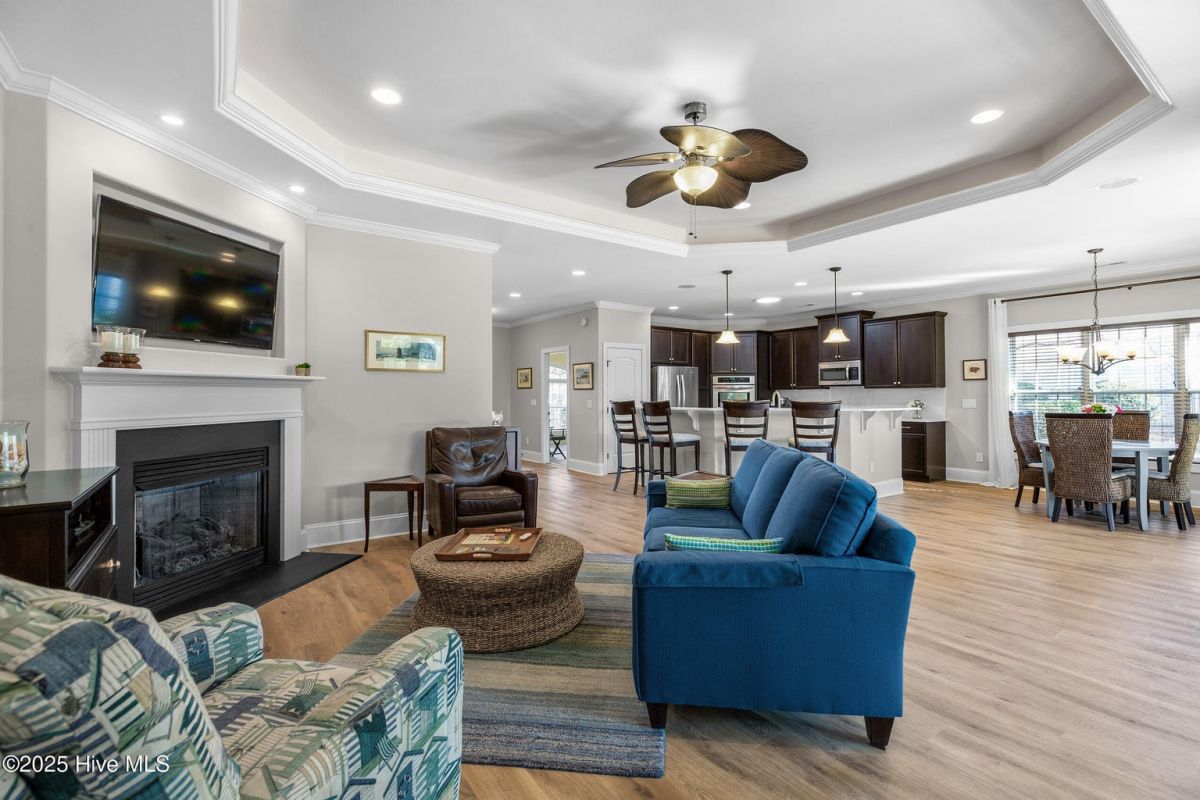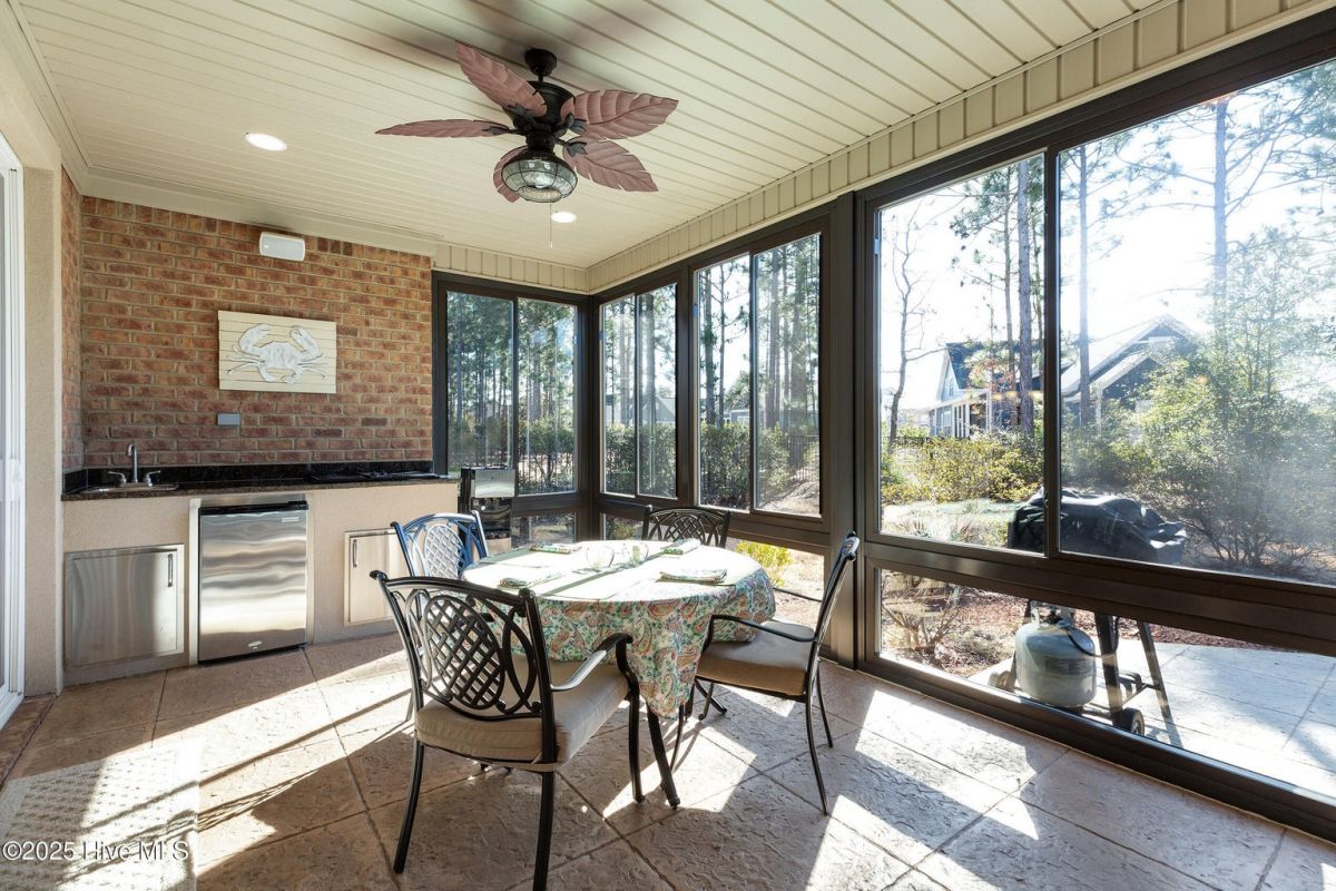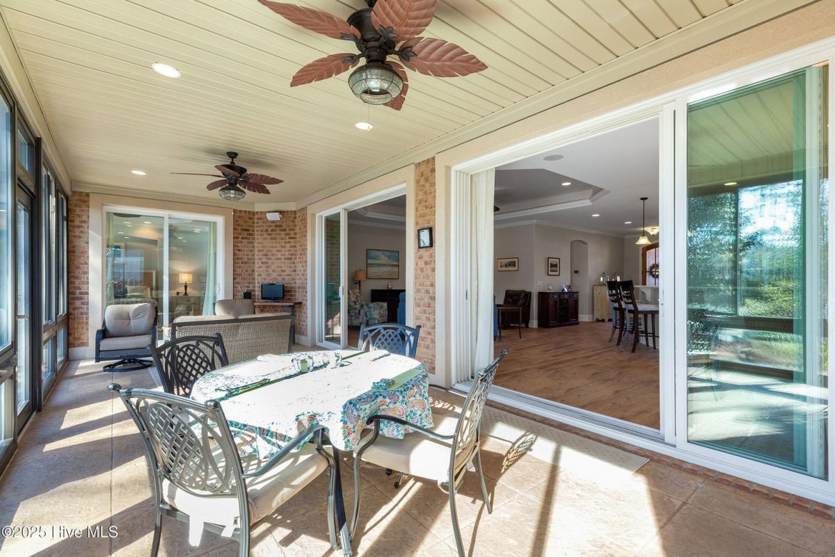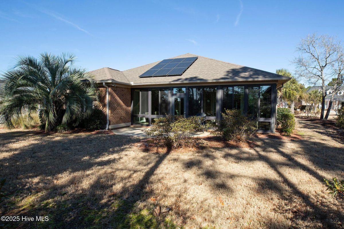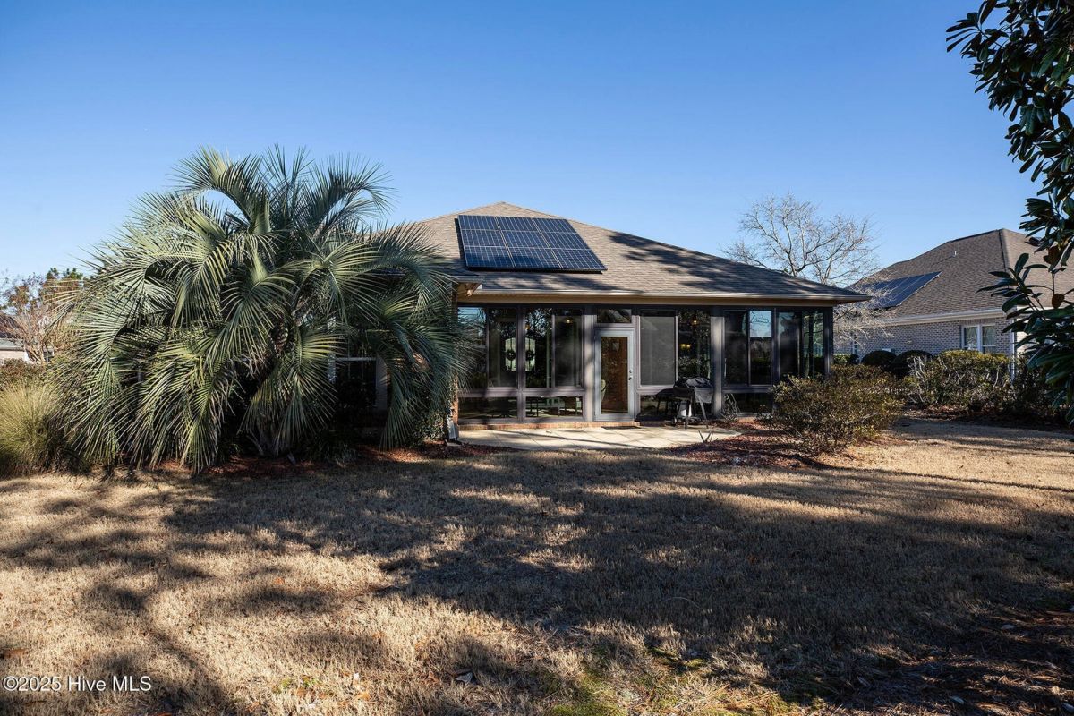 Resort living at its best! You will love everything about this Logan Homes Hatteras model located in the gated community of Compass Pointe. This 3 bedroom and 2 bath home has many outstanding features, including an enclosed lanai with a built-in grill and kitchen and newer (2023) LVP flooring throughout the living space. The updated kitchen includes newer quartz countertops, a newer refrigerator, newer cabinetry hardware, and a solar tube for extra natural light. Beyond the updated kitchen, the living room boasts a gas fireplace. The split floor plan features a primary bedroom with two large closets with sliders to the enclosed lanai, as well as a large primary bath which has been freshly painted. The two additional bedrooms are very spacious with large closets. Additional features include newer HVAC (2019), a conditioned storage space, oversized garage, and Leafguard gutter guards with a lifetime warranty. Also notable are the home's solar panels, which are paid in full - the electric bill is approximately $20 per month. The Compass Pointe community features many amenities, including a resort-style outdoor pool, indoor pool, lazy river, pickleball courts, tennis court, basketball court, community wellness center (complete with a sauna and steam room), dog park, walking and biking trails, and a kayak launch. The monthly HOA fees include maintenance of common areas and property irrigation. Compass Pointe is conveniently located within 15 minutes of Historic Downtown Wilmington. This home is truly in move-in condition and not to be missed!