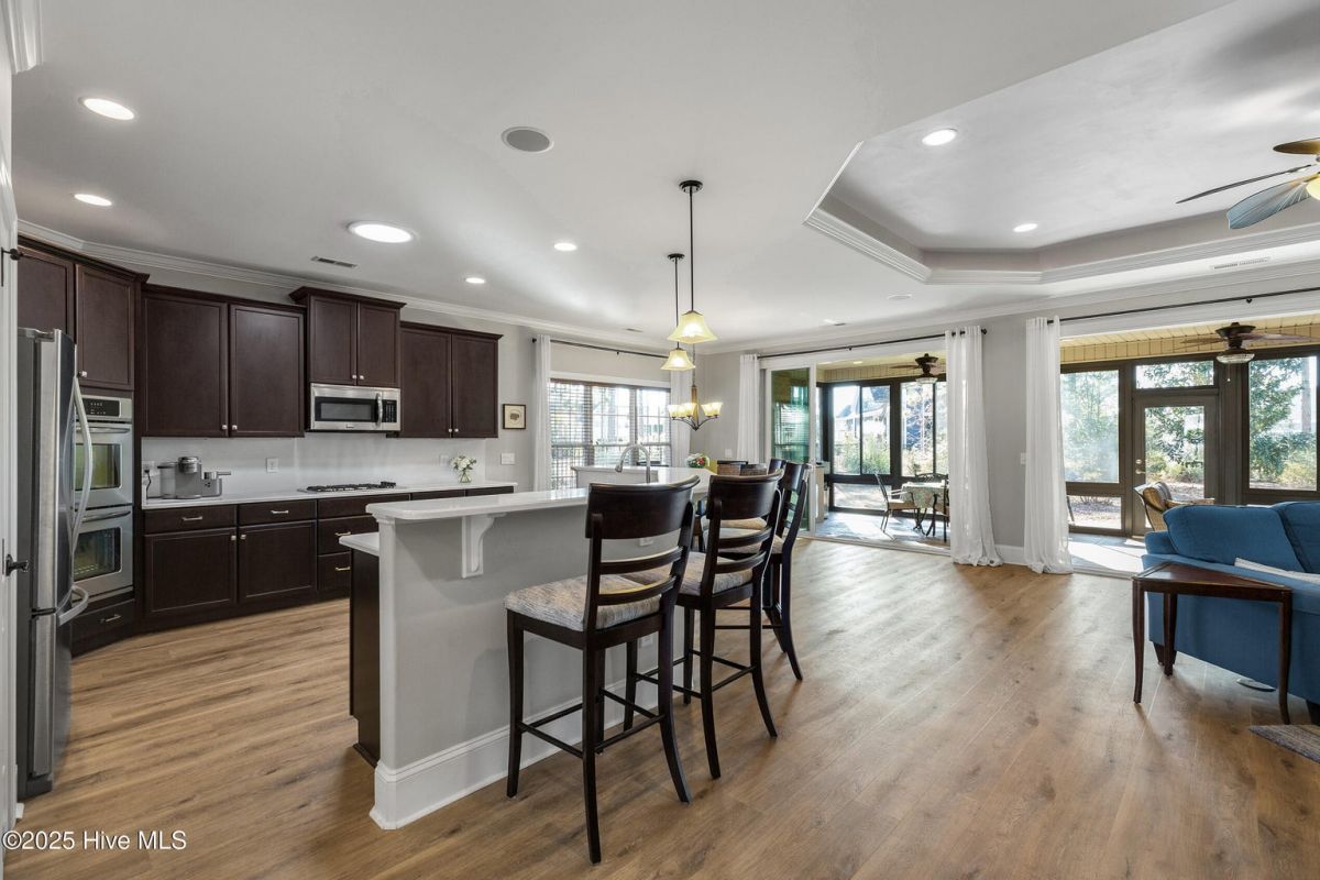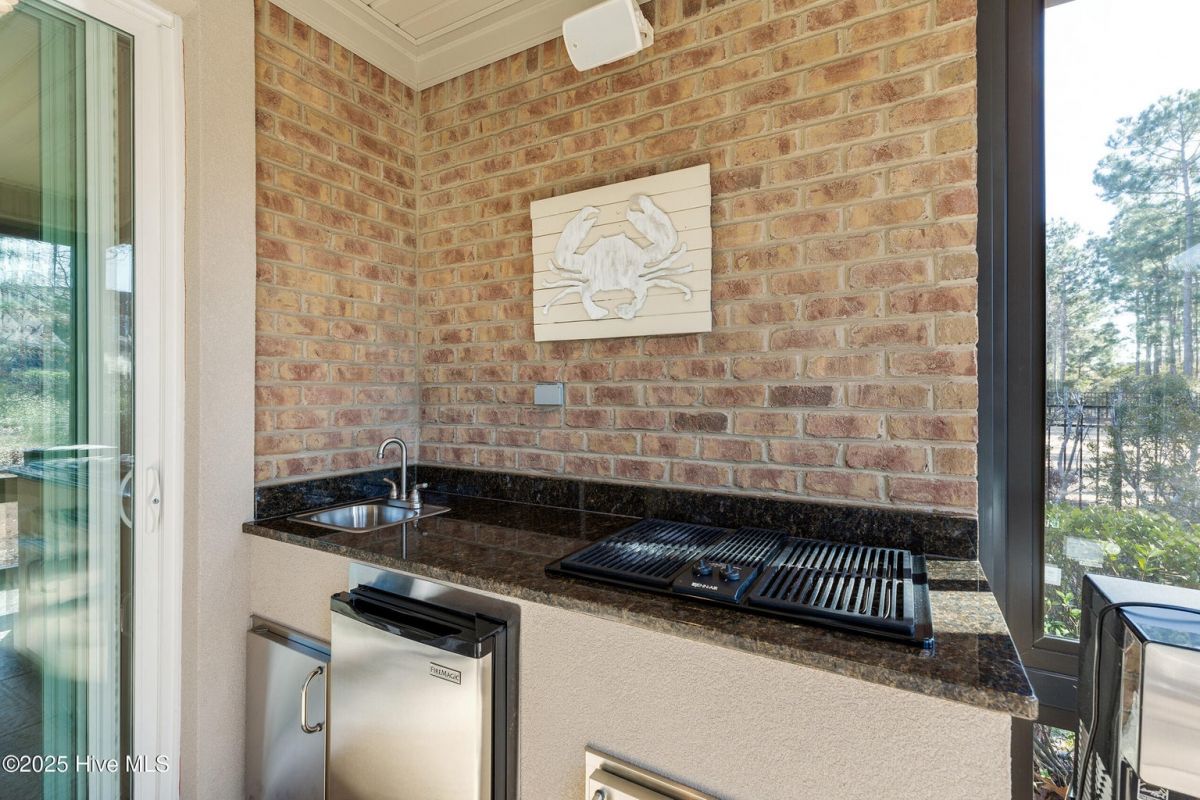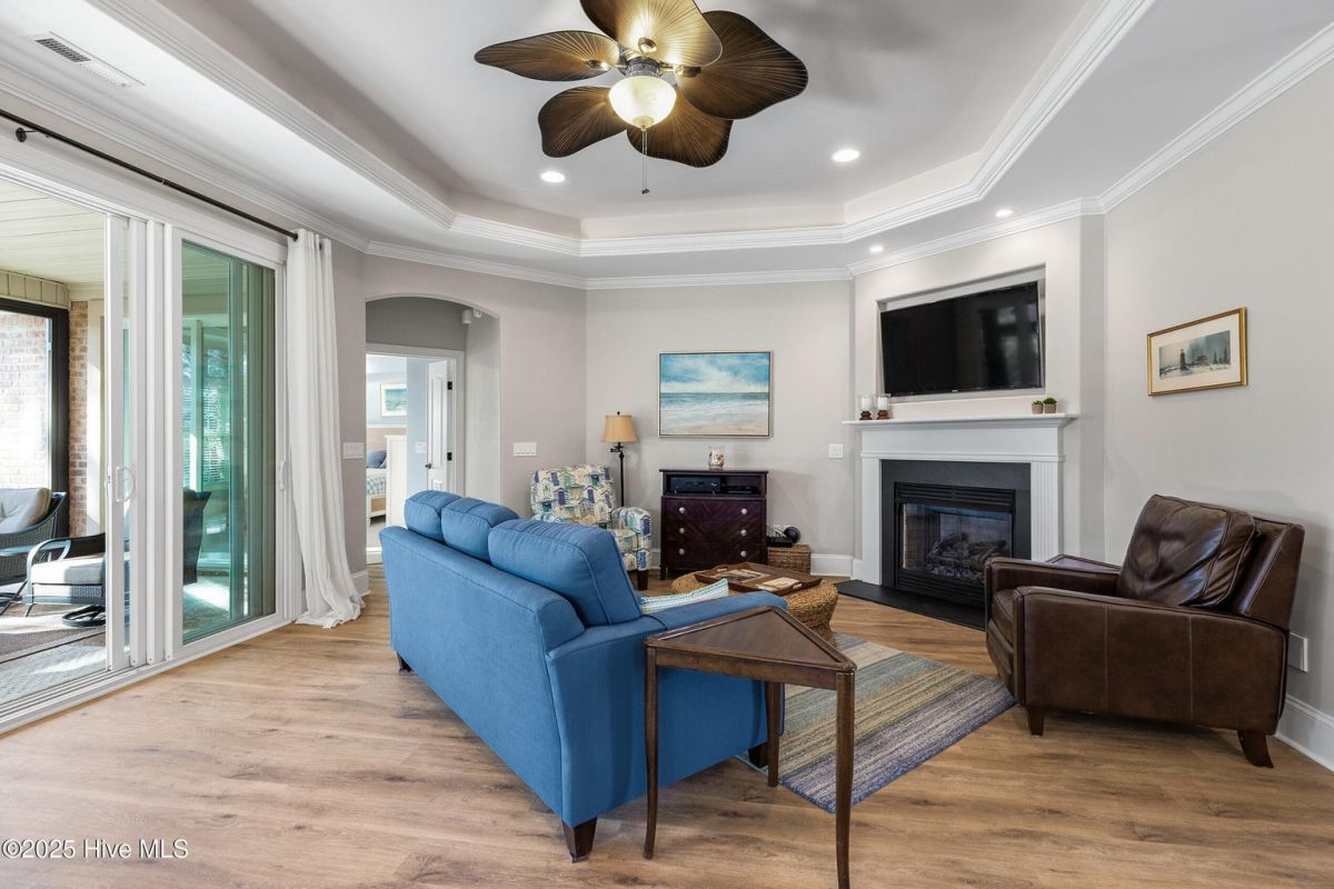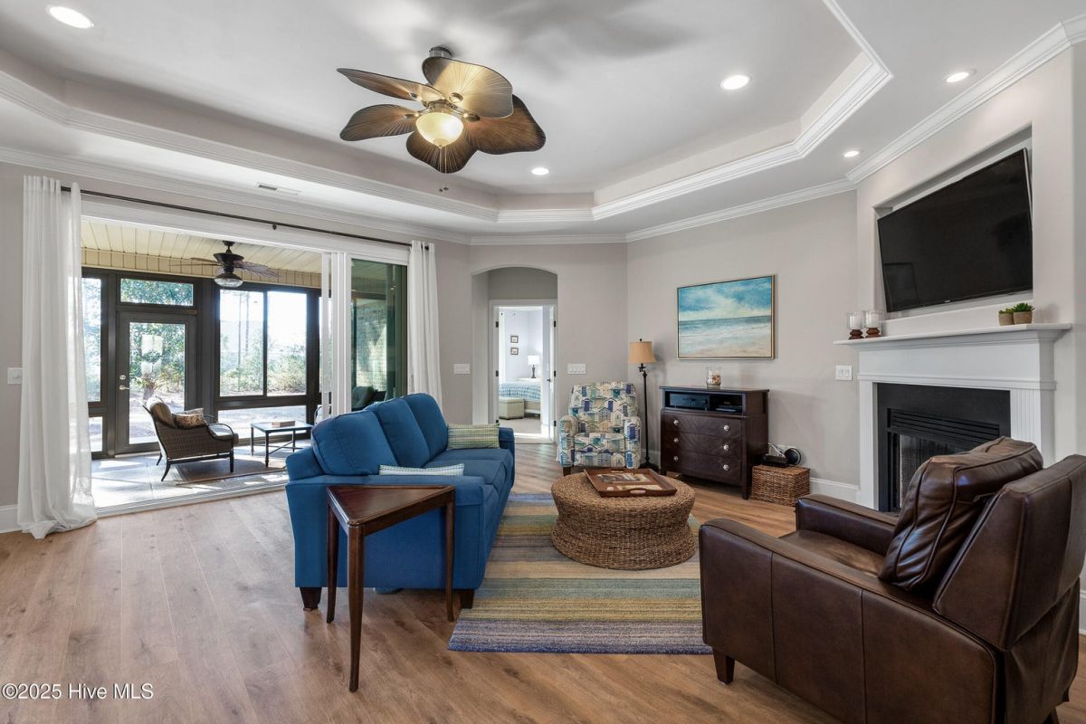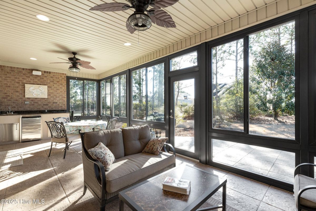 Resort living at its best! You will love everything about this Logan Homes Hatteras model located in the gated community of Compass Pointe. This 3 bedroom and 2 bath home has many outstanding features, including an enclosed lanai with a built-in grill and kitchen and newer (2023) LVP flooring throughout the living space. The updated kitchen includes newer quartz countertops, a newer refrigerator, newer cabinetry hardware, and a solar tube for extra natural light. Beyond the updated kitchen, the living room boasts a gas fireplace. The split floor plan features a primary bedroom with two large closets with sliders to the enclosed lanai, as well as a large primary bath which has been freshly painted. The two additional bedrooms are very spacious with large closets. Additional features include newer HVAC (2019), a conditioned storage space, oversized garage, and Leafguard gutter guards with a lifetime warranty. Also notable are the home's solar panels, which are paid in full - the electric bill is approximately $20 per month. The Compass Pointe community features many amenities, including a resort-style outdoor pool, indoor pool, lazy river, pickleball courts, tennis court, basketball court, community wellness center (complete with a sauna and steam room), dog park, walking and biking trails, and a kayak launch. The monthly HOA fees include maintenance of common areas and property irrigation. Compass Pointe is conveniently located within 15 minutes of Historic Downtown Wilmington. This home is truly in move-in condition and not to be missed!