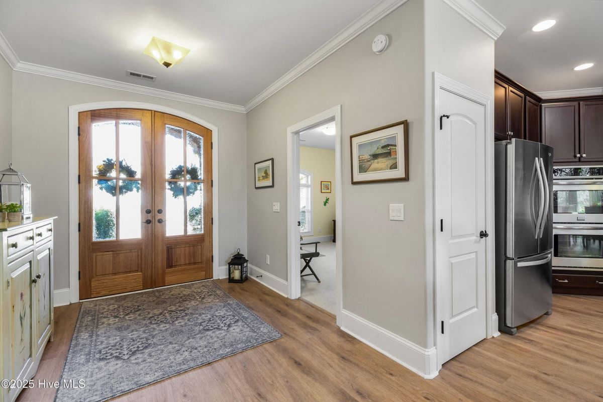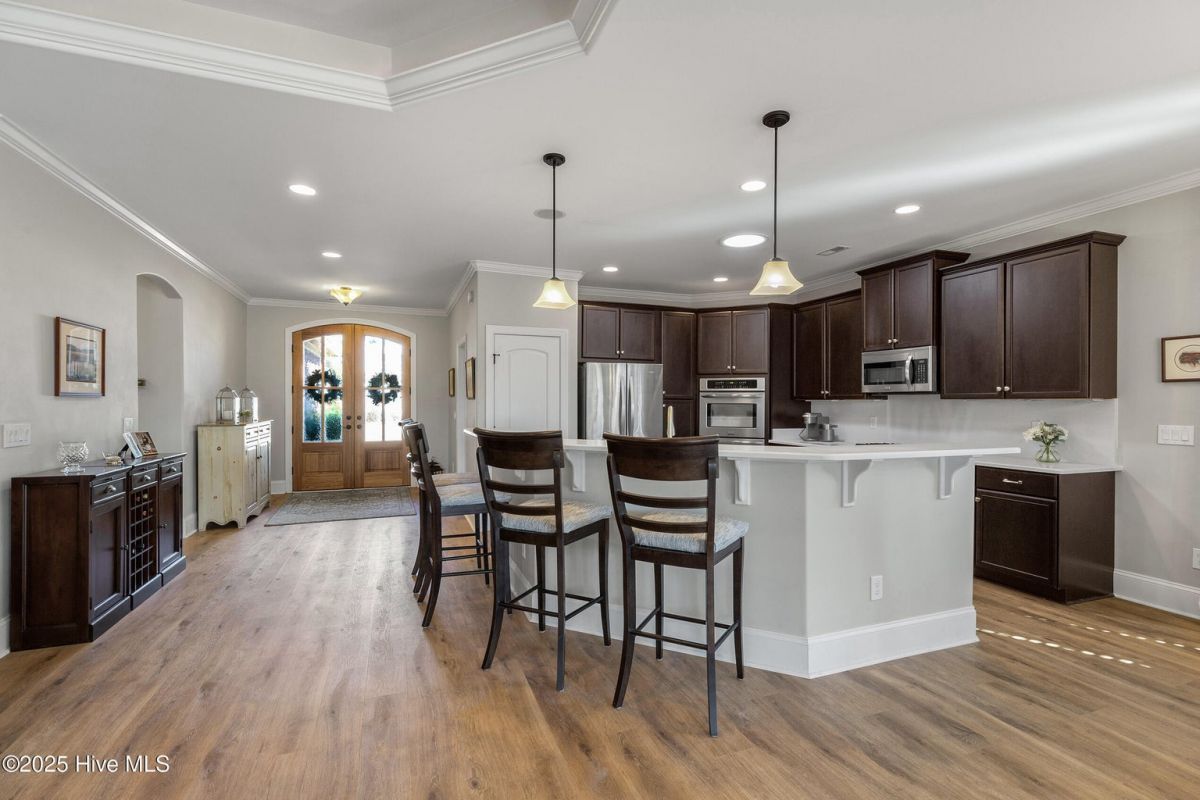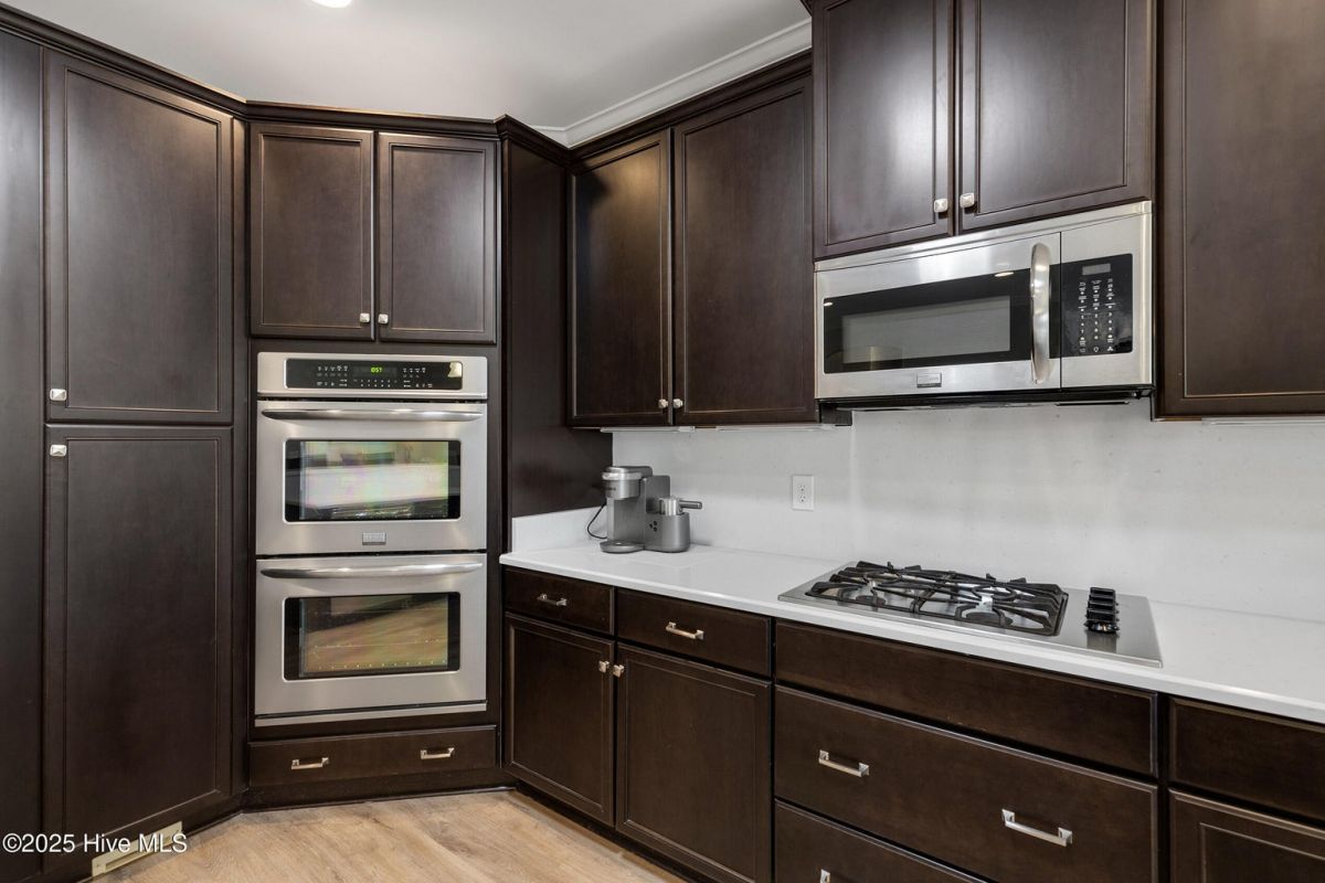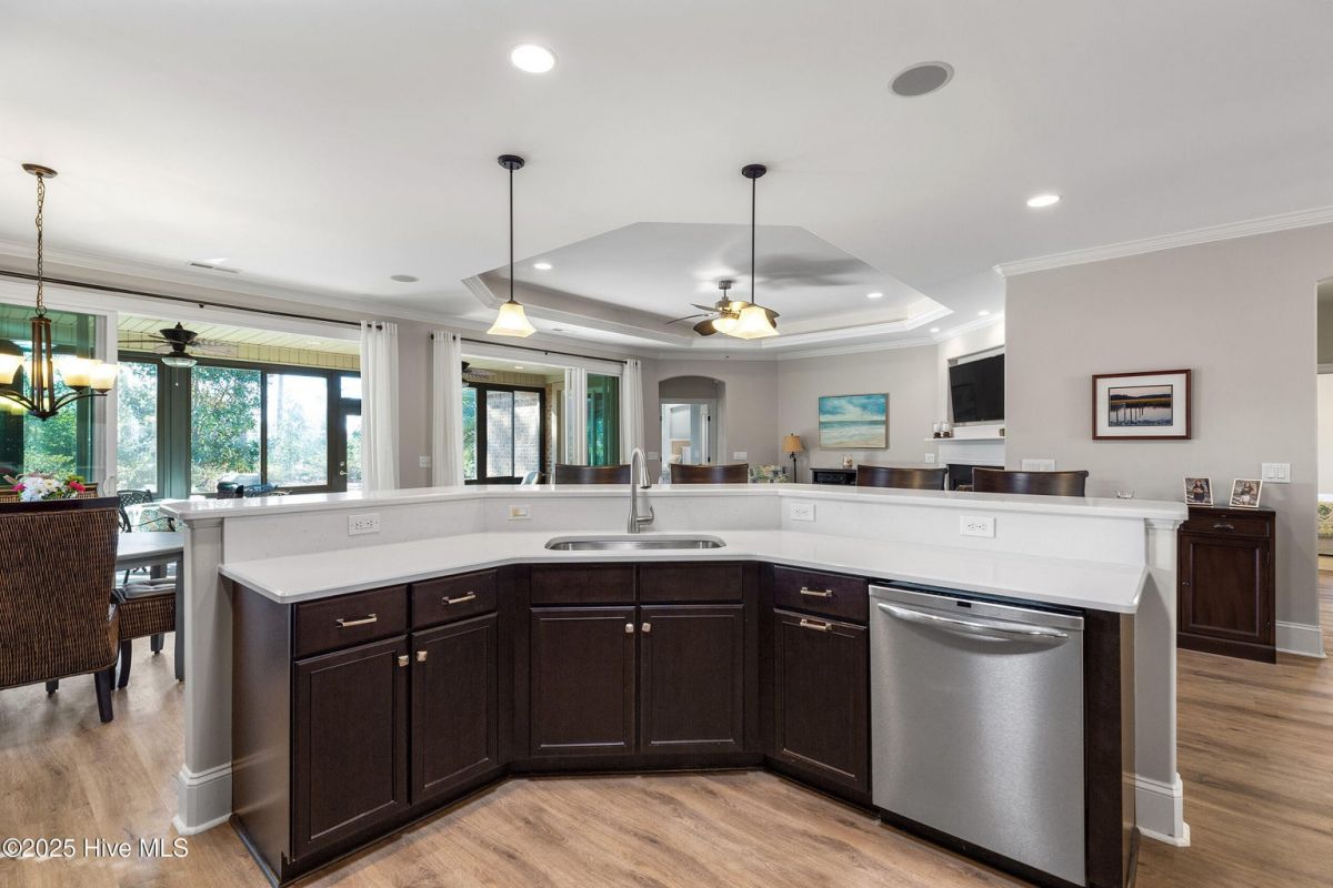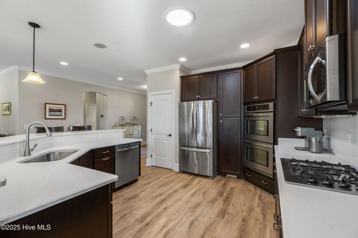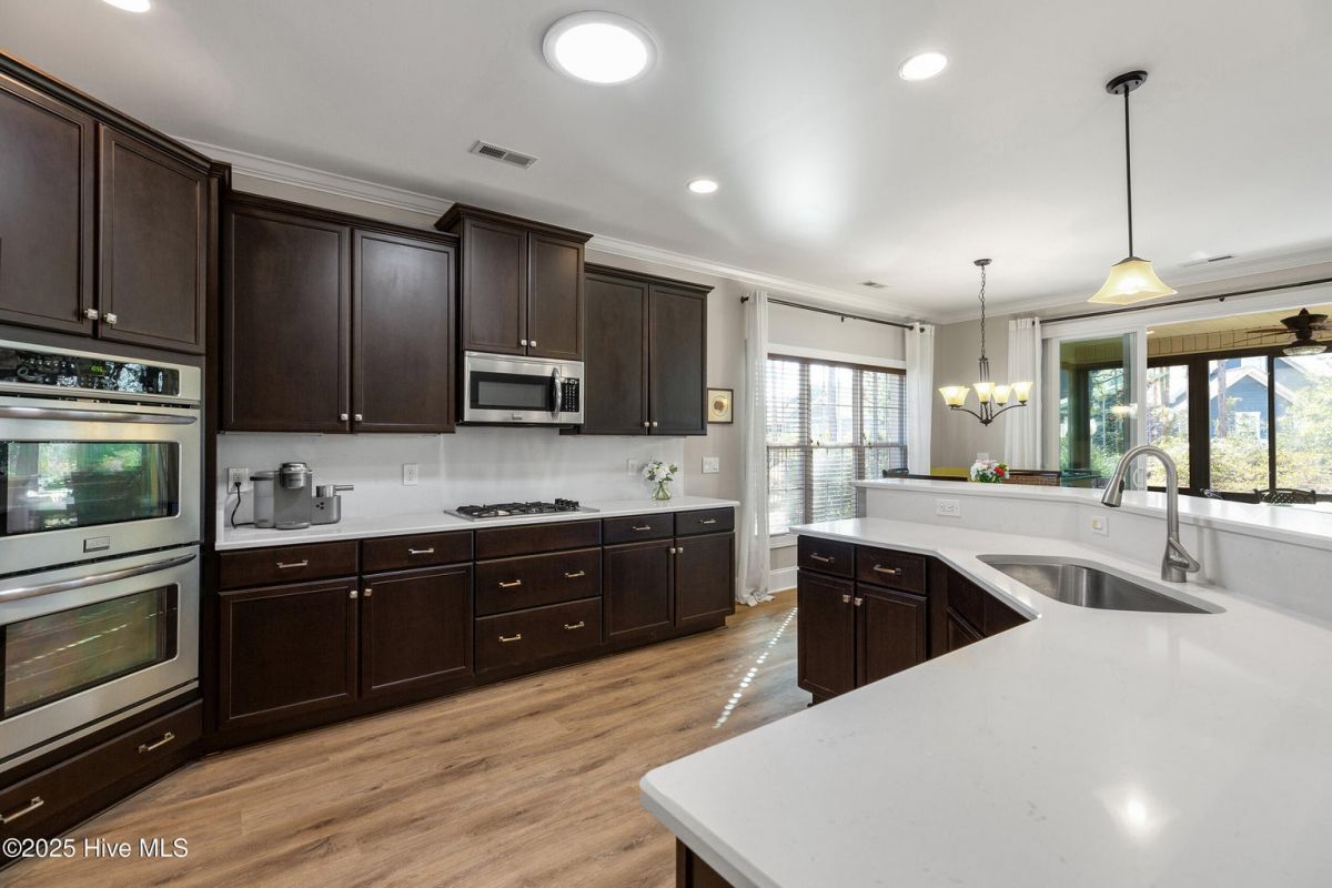 Resort living at its best! You will love everything about this Logan Homes Hatteras model located in the gated community of Compass Pointe. This 3 bedroom and 2 bath home has many outstanding features, including an enclosed lanai with a built-in grill and kitchen and newer (2023) LVP flooring throughout the living space. The updated kitchen includes newer quartz countertops, a newer refrigerator, newer cabinetry hardware, and a solar tube for extra natural light. Beyond the updated kitchen, the living room boasts a gas fireplace. The split floor plan features a primary bedroom with two large closets with sliders to the enclosed lanai, as well as a large primary bath which has been freshly painted. The two additional bedrooms are very spacious with large closets. Additional features include newer HVAC (2019), a conditioned storage space, oversized garage, and Leafguard gutter guards with a lifetime warranty. Also notable are the home's solar panels, which are paid in full - the electric bill is approximately $20 per month. The Compass Pointe community features many amenities, including a resort-style outdoor pool, indoor pool, lazy river, pickleball courts, tennis court, basketball court, community wellness center (complete with a sauna and steam room), dog park, walking and biking trails, and a kayak launch. The monthly HOA fees include maintenance of common areas and property irrigation. Compass Pointe is conveniently located within 15 minutes of Historic Downtown Wilmington. This home is truly in move-in condition and not to be missed!