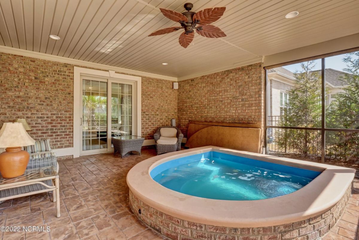 WOW What an Amazing Deal !!! This beautiful home is designed with great living space and entertainment space whether you have extended family or visiting relatives and friends. With the kitchen as the heart of the home, the sprawling island has tons of storage, upgraded cabinets, double ovens and a generous pantry . The living room boasts a fieldstone fireplace with a full dining room off to the side. The spacious owner's suite is on the first floor with double closets and a huge bathroom with a jet tub and large seated shower. The sprawling lanai can be accessed through the owner's bedroom to the spa pool area for relaxation. The lanai can also be accessed through the triple sliding doors in the sunroom bringing the outdoors inside !!! Adjacent to the kitchen area are two additional bedrooms, full bathroom and an office. Upstairs above the garage is a flex room with full bath. There also is a walk in attic for additional storage. There is a 2 car garage with a hobby/work room attached to the garage. This house has a 3 zone HVAC system, stone driveway and walkways and low maintenance brick surrounds the house. A must see !!! Compass Pointe is a gated community with HOA fees including an indoor and outdoor pool, a lazy river, tennis and pickleball courts , gym and amazing workout classes, along with a grand lanai that hosts dances, parties, etc. Various clubs also make up the active community. Compass Pointe also has a Golf Clubhouse for those who are interested in joining. The Golf Club has a pool, gym, restaurant and bar. Downtown Wilmington offers, theaters, restaurants, music and art !! And you're so close to area beaches !!