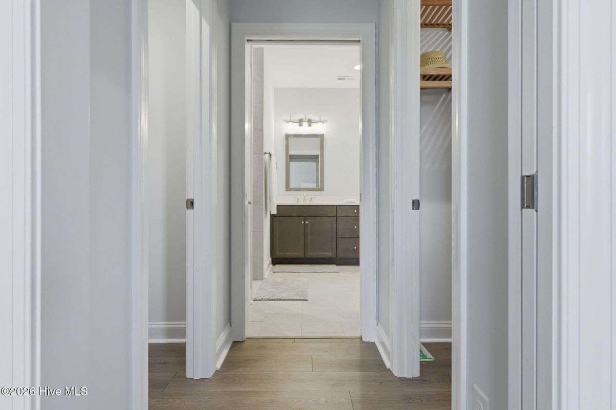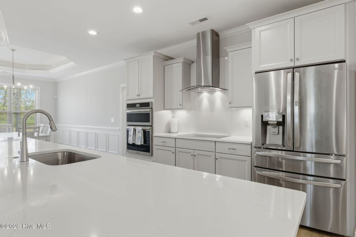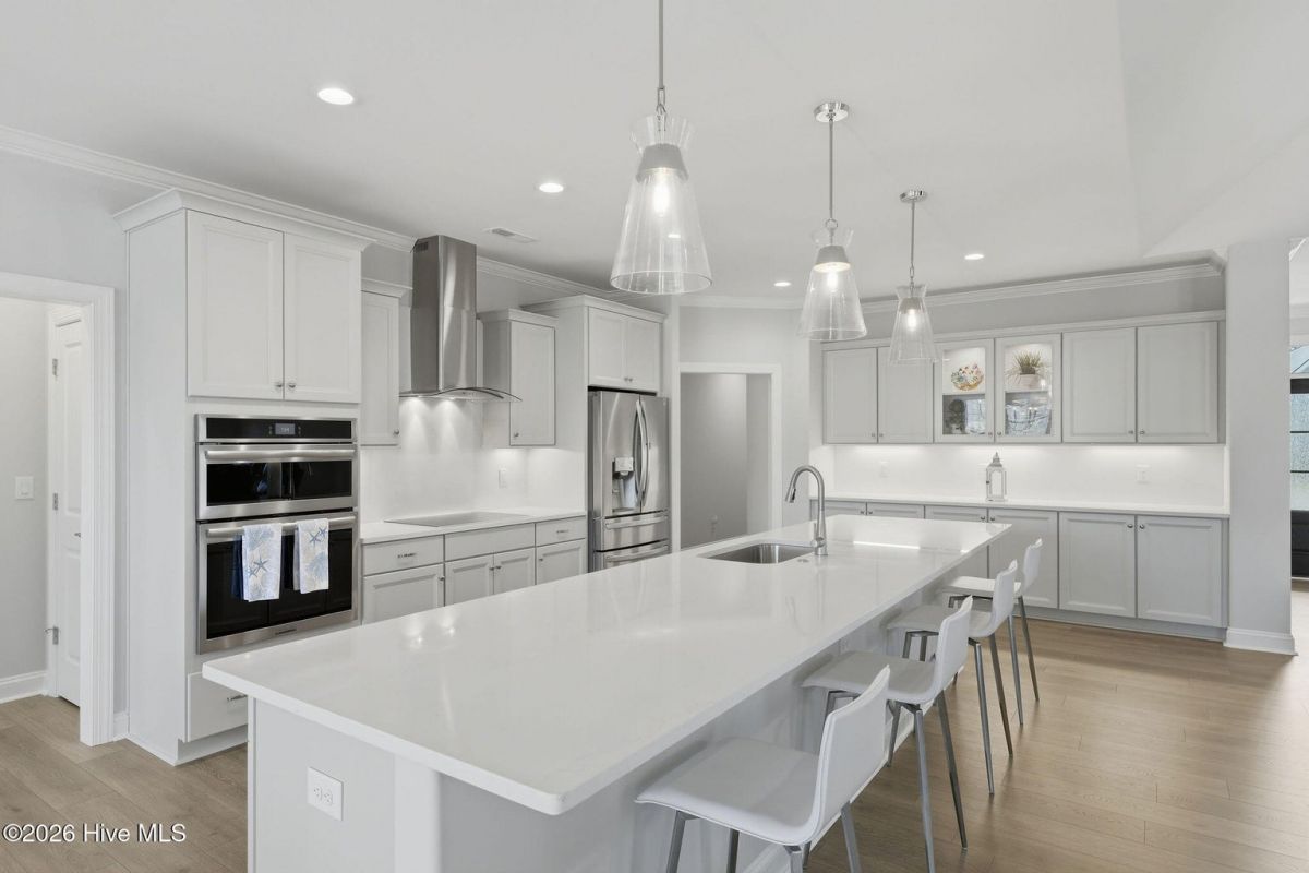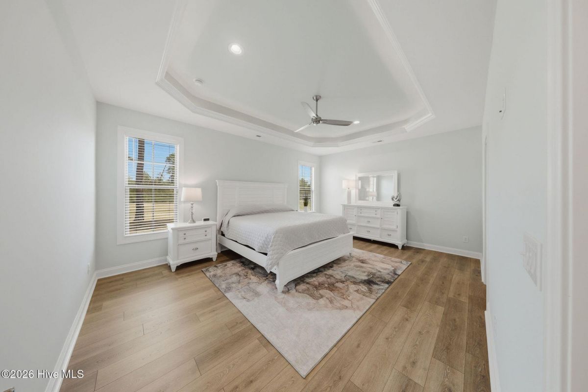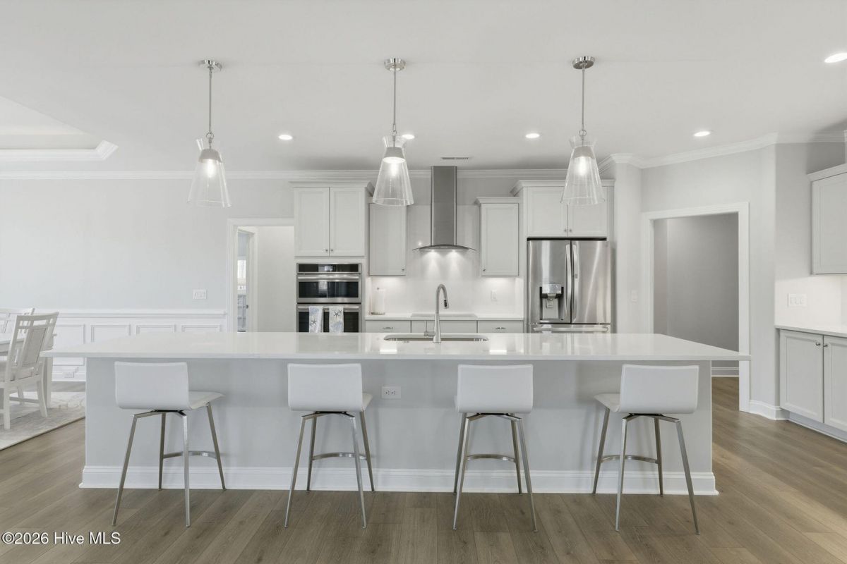 This stunning 2024 home is situated on a rare .54-acre homesite overlooking the golf course in Compass Pointe, this thoughtfully designed home offers the perfect blend of space, flexibility, and quality craftsmanship. The open-concept layout features a bright, well-appointed kitchen with upgraded appliances to include a Induction Stove that heats as fast as gas, full overlay cabinetry, glass accent doors, and a large island that flows seamlessly into the living room with coffered ceilings and a sleek horizontal fireplace. A 4-seasons room and expansive patio provide the ideal setting to enjoy peaceful golf course views, while the formal dining room with detailed wainscoting and a private study with glass pocket doors offer both function and character. The spacious primary suite includes a tray ceiling, dual closets, and a spa-like bath with double vanity and zero-entry tiled shower. Upstairs, a large bonus room with full bath offers flexibility as a guest suite, hobby space, or additional living area. Additional features include a side-load garage with epoxy floors, built-in storage, and EV charger, tankless water heater, upgraded electrical service, and a fully stick-built attic allowing for exceptional walkable storage. A rare combination of quality, space, and setting within one of the area's most sought-after golf communities. Compass Pointe offers resort-style living with optional memberships that include access to a championship golf course, indoor and outdoor pools, a fitness center, tennis and pickleball courts, walking and biking trails, and a vibrant social calendar. Conveniently located just minutes from shopping, dining, medical facilities, and a short drive to Wilmington and area beaches.