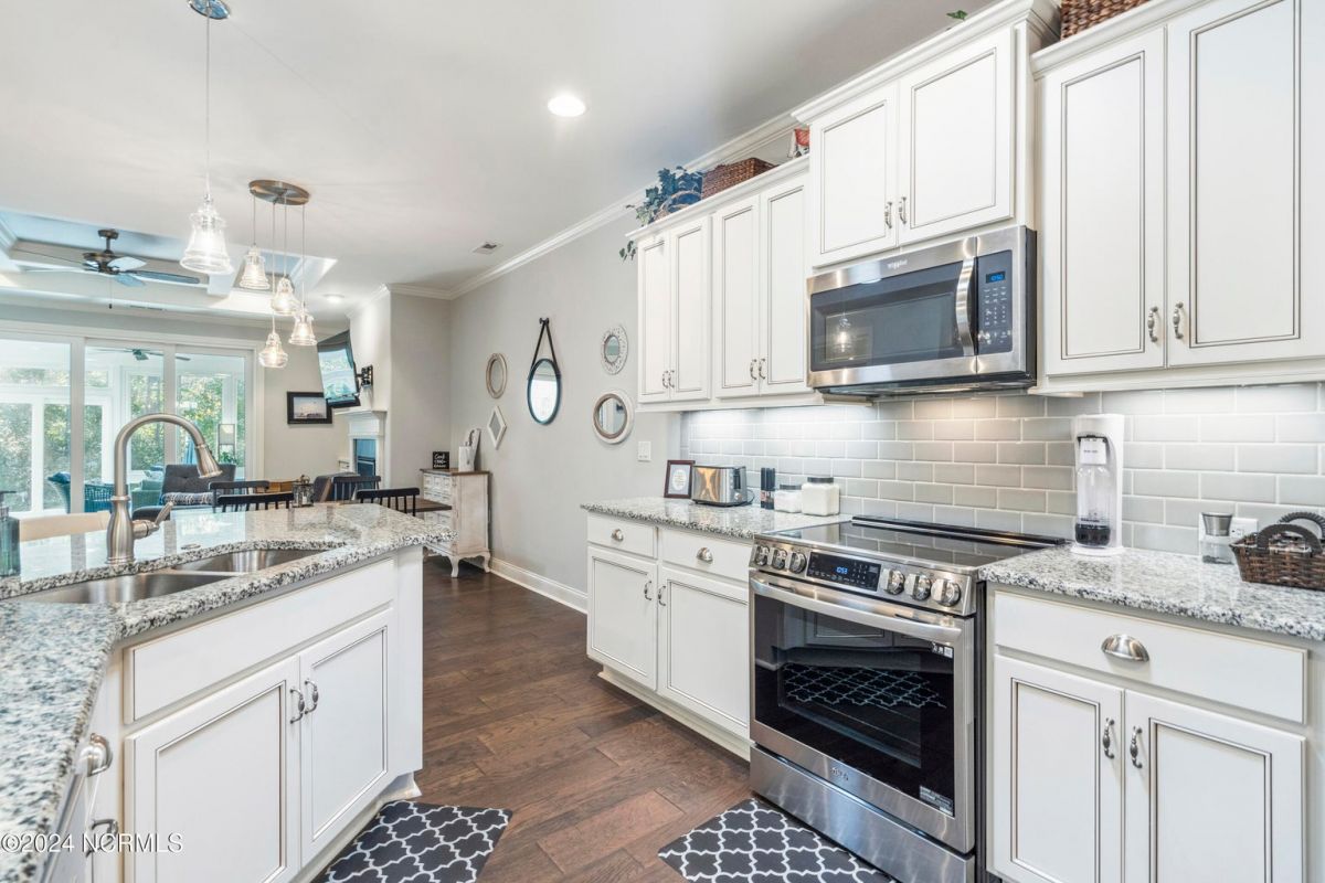 You'll love the carefree, resort-style living of Compass Pointe in this luxurious Trusst built St. Croix model townhome. Surrounded by nature, this meticulously designed 3-bed, 3-bath home features a gourmet kitchen with granite countertops, a large island, and 9-foot ceilings. The main level has hardwood and tile floors throughout, while the living room offers a custom built-in next to a cozy gas fireplace. Oversized sliders lead to a bright, four-season lanai, where you'll enjoy tranquil views of lush greenery and beautifully landscaped grounds. Step outside to your private patio, perfect for barbecuing or gathering around a fire pit—no need for propane tanks, thanks to a dedicated gas line. The master suite offers dual vanities and a walk-in shower. Additional features include a two-car garage, a spacious second-floor guest suite, and plenty of storage space. Compass Pointe is more than a neighborhood—it's a lifestyle. Residents enjoy resort-style amenities such as indoor and outdoor pools, a grand lanai for community events, state-of-the-art fitness centers, a lazy river, championship golf course, tennis and pickleball courts, and more. Come explore this low-maintenance townhome today!