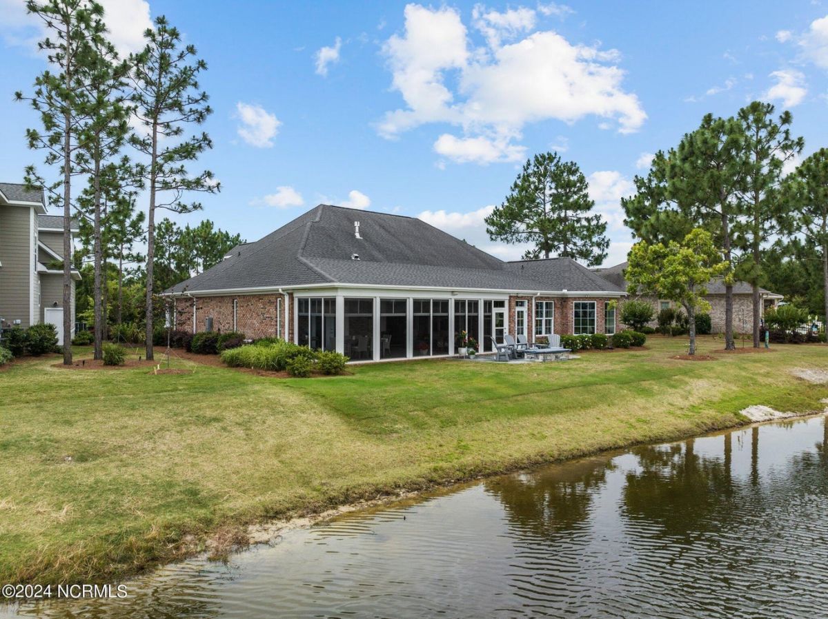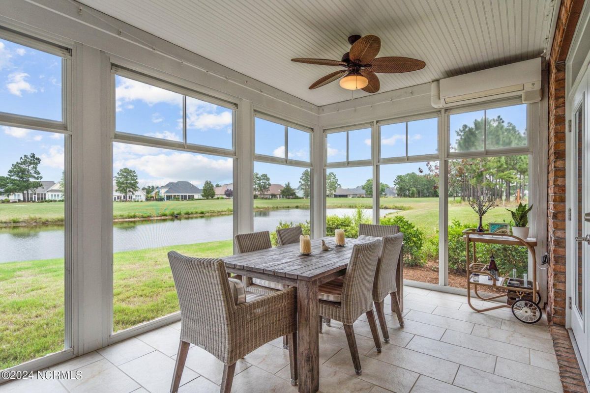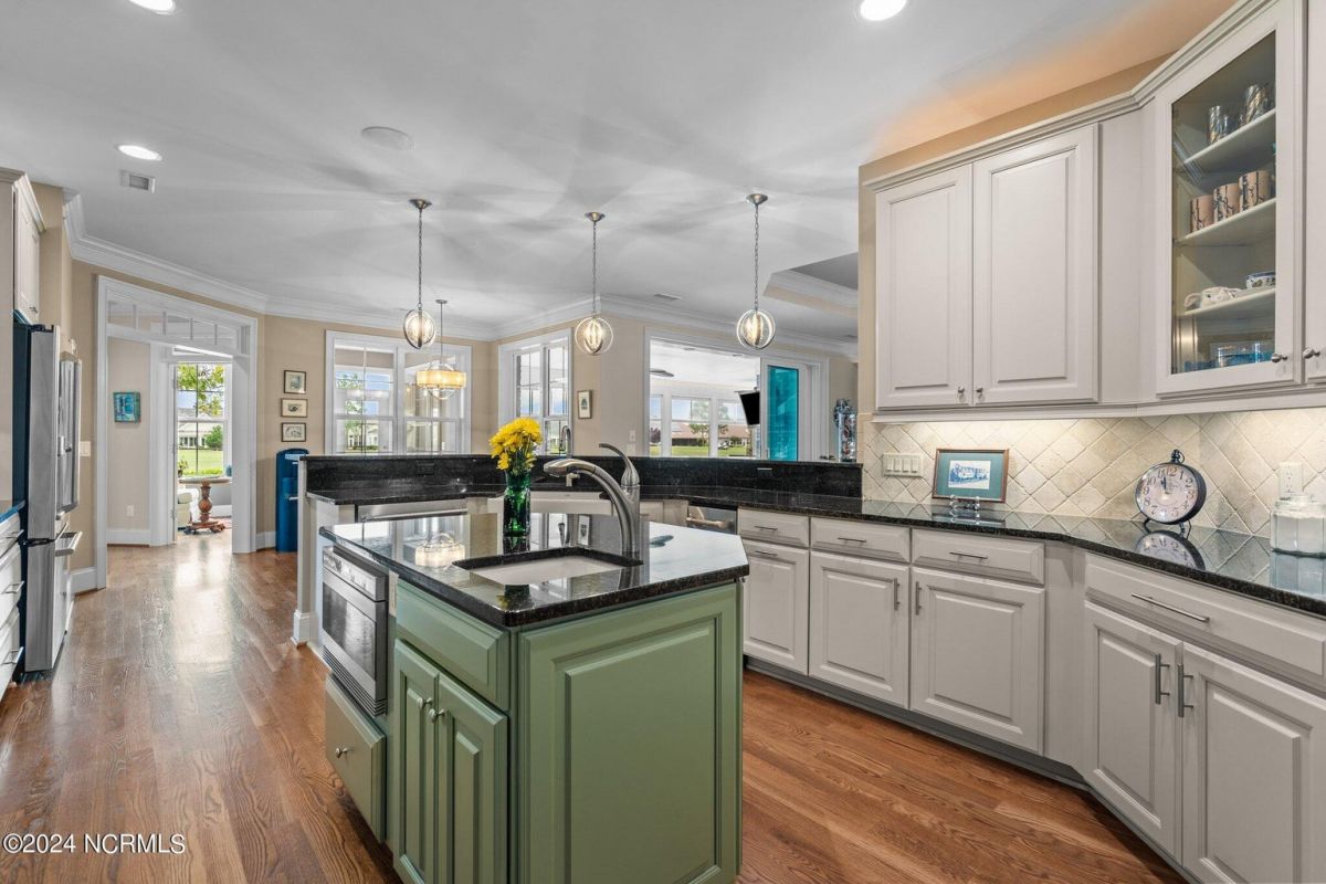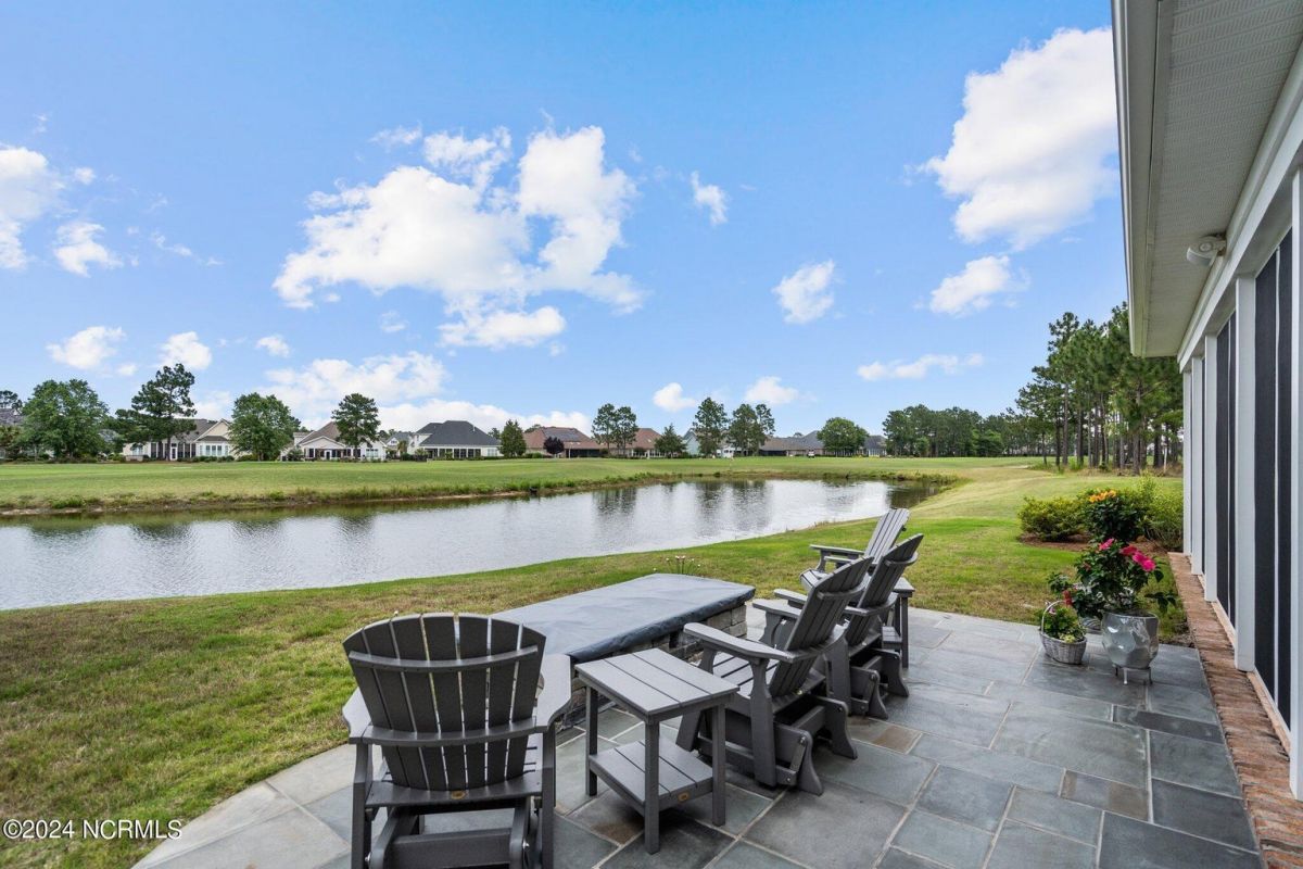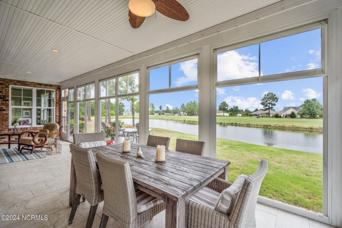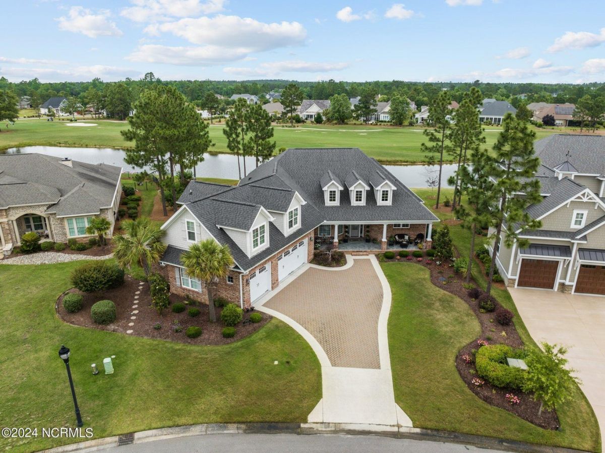 This stunning custom home built by Firetti Builders has the quality and attention to detail that is evident from the minute you drive up. The custom driveway, angled three car garage, five dormers and inviting front porch is just the beginning of AHH-mazing. Once you step inside, you will realize you have just entered one of the most exquisite homes in Compass Pointe, a gated, resort-style amenity rich community. With three guest bedrooms and baths, you have plenty of room and privacy for friends and family. Speaking of guests, entertaining will be a breeze with the gourmet cooks kitchen, formal dining room, breakfast nook, spacious heated and cooled Lanai with second kitchen, third dining area and sitting area with TV. The views from the Lanai of the 9th hole fairway and green of the Compass Pointe golf course, glistening pond and unforgettable sunsets by the firepit will make you never want to leave. This meticulously cared for home has so many incredible features and upgrades such as decorative impervious pavers in the driveway, elegant white columns in the formal dining room, great room with fireplace and built-ins, Carolina room with doors leading to the patio and Lanai, an office with custom built-in wall unit and huge windows, spacious kitchen with gas stove and vent hood, island with plenty of storage and a second prep sink, two en-suite guest bedrooms downstairs, two WIC's in the primary bedroom with custom built shelves and drawers and large en-suite bath with dual vanities, tile shower and whirlpool soaking tub. Upstairs has it's own den/sitting room, 3rd guest bedroom with full bath and over 1,800 SF of walk-in, floored storage space. The laundry room has lots of storage cabinets and it's own large sink and comes with the washer and dryer. There is a drop Zone for items that you wish to be stored out of sight and a counter desk area that's perfect for storing cook books and planning meals. The three car garage has a conditioned storage room, epoxy floor and plenty of windows to let in natural light. This masterpiece has so many more features and upgrades that you must see it in person! You can't build a home of this magnitude today in Compass Pointe at this price.